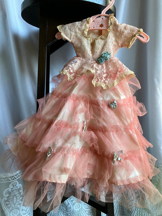 ・バスト 15㎝ 着丈 48㎝ チュールレースとロココリボンがついたゴージャスなロココドレスです。ハンガーにかけて飾っておくだけ、ひいては壁に置いてあるだけでも絵になるドレスです。1930年から40年。フランスビンテージ。ネオブライズちゃんに着せて頂けます。