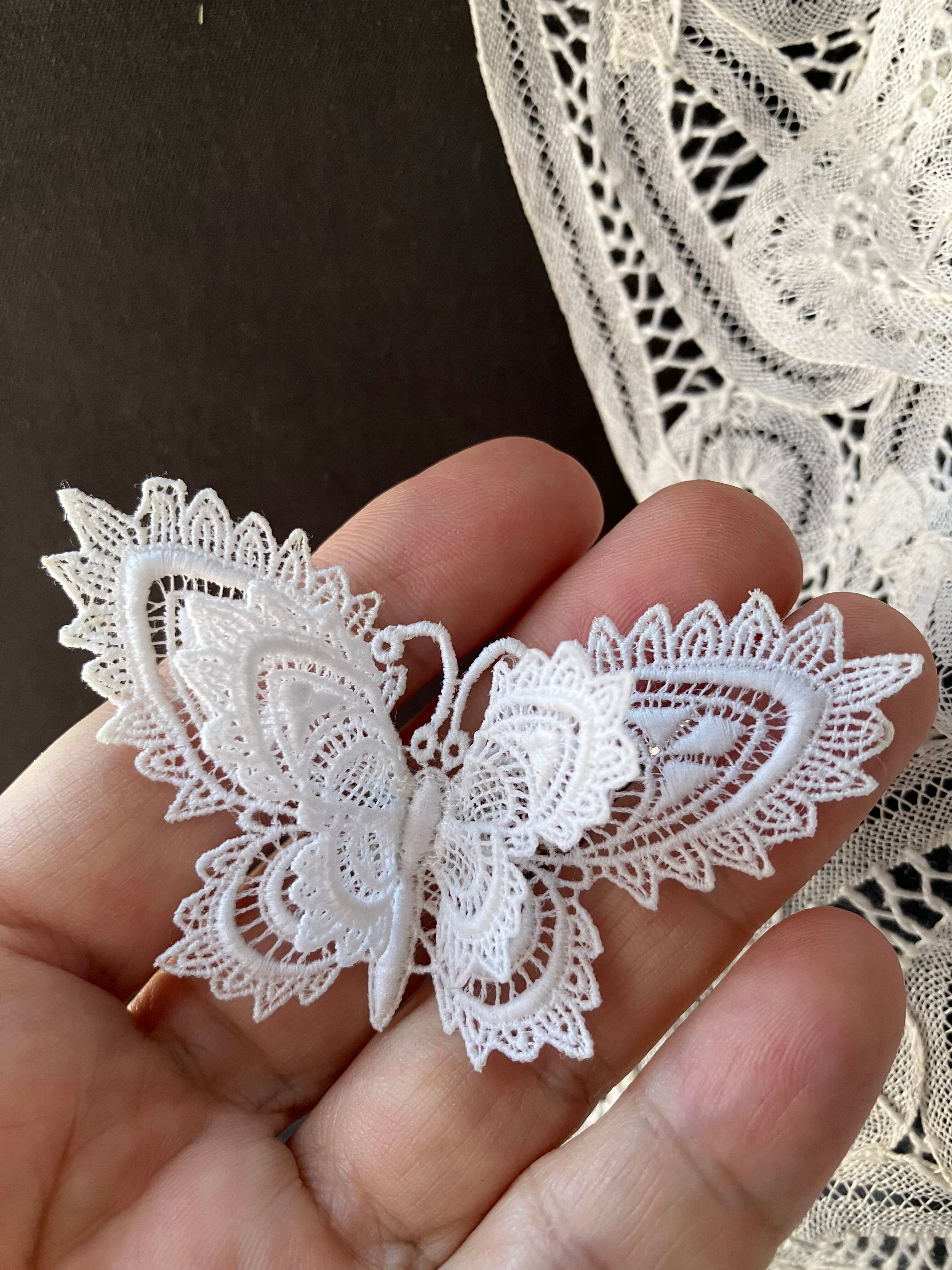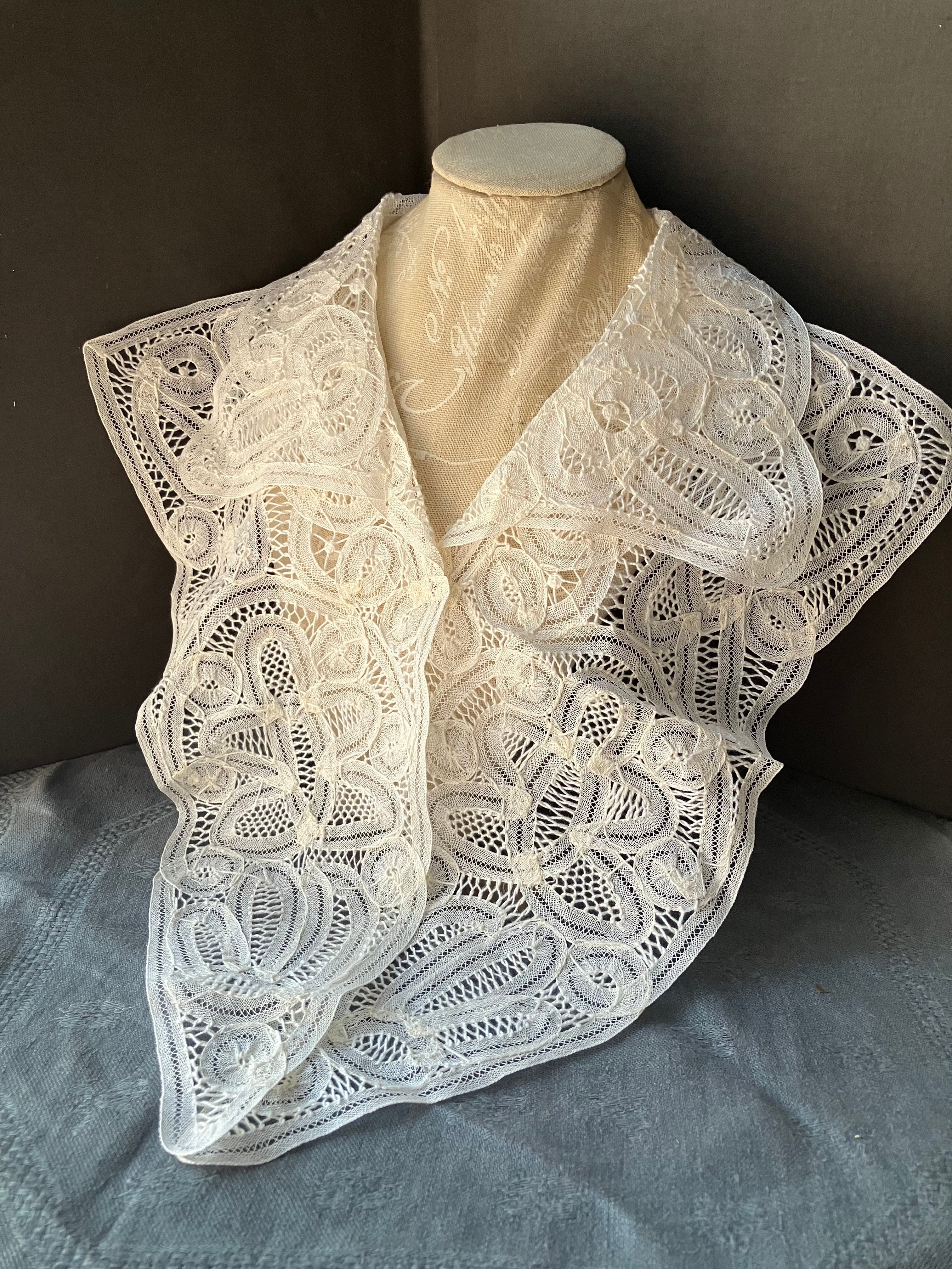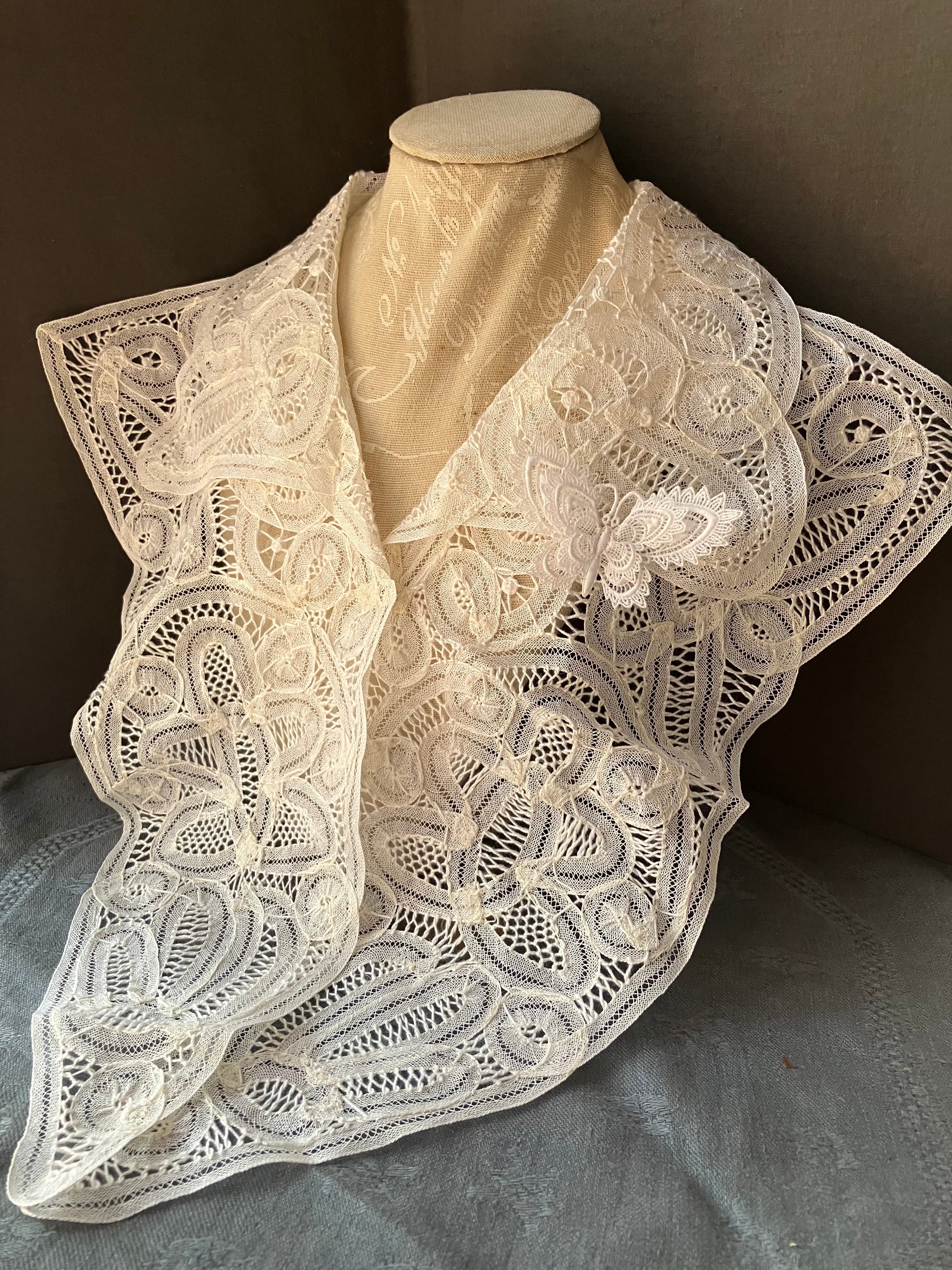 素晴らしいバテンレース襟と蝶々のブローチセット