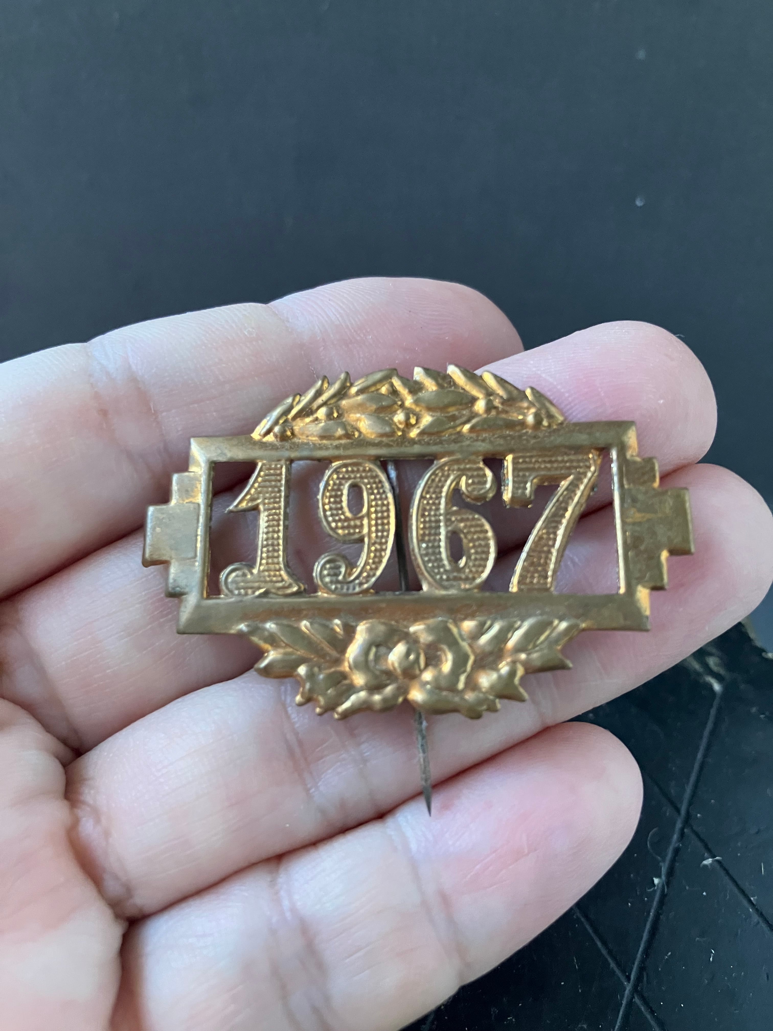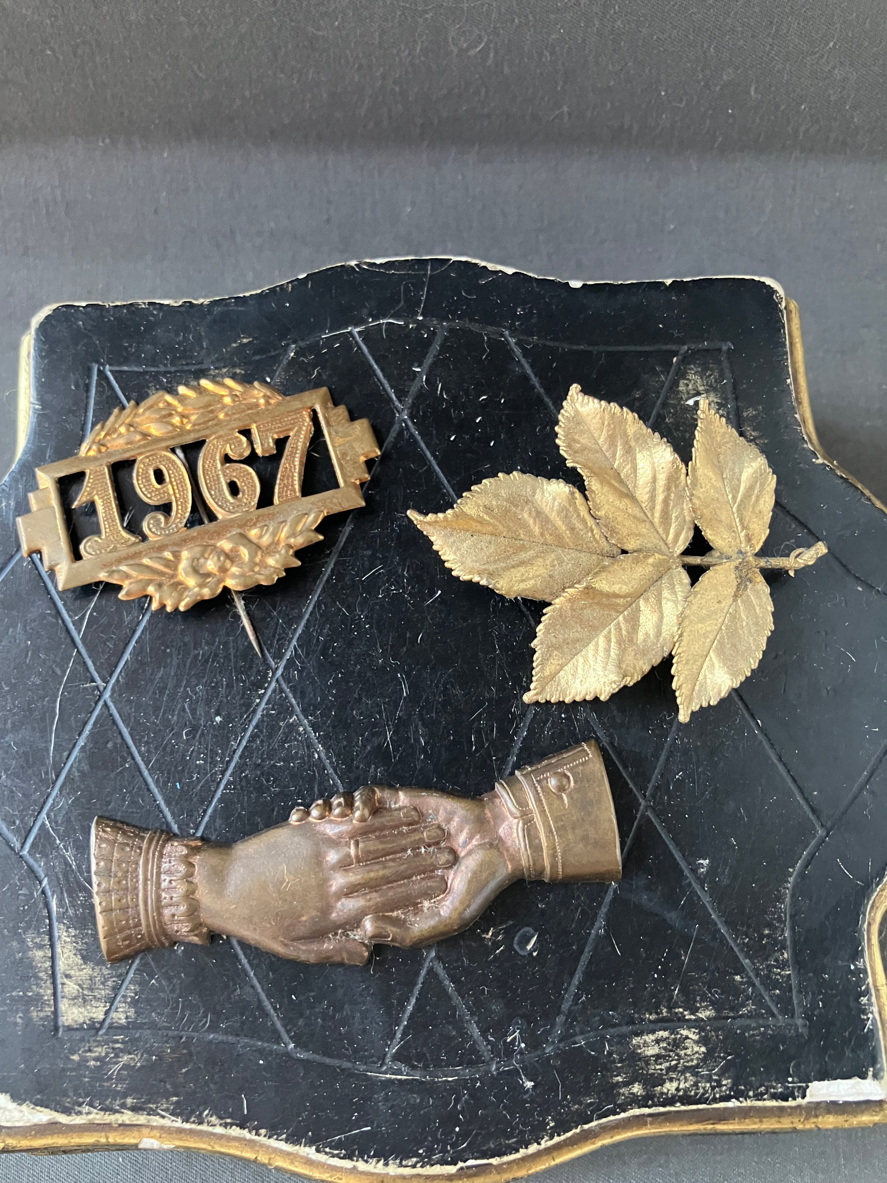 プラス製モチーフ3点セットです。ハンドのモチーフと1967のモチーフ、リーフのモチーフです。リーフのモチーフは元々ブローチでしたが、ピンが欠損しています。フランスビンテージ。