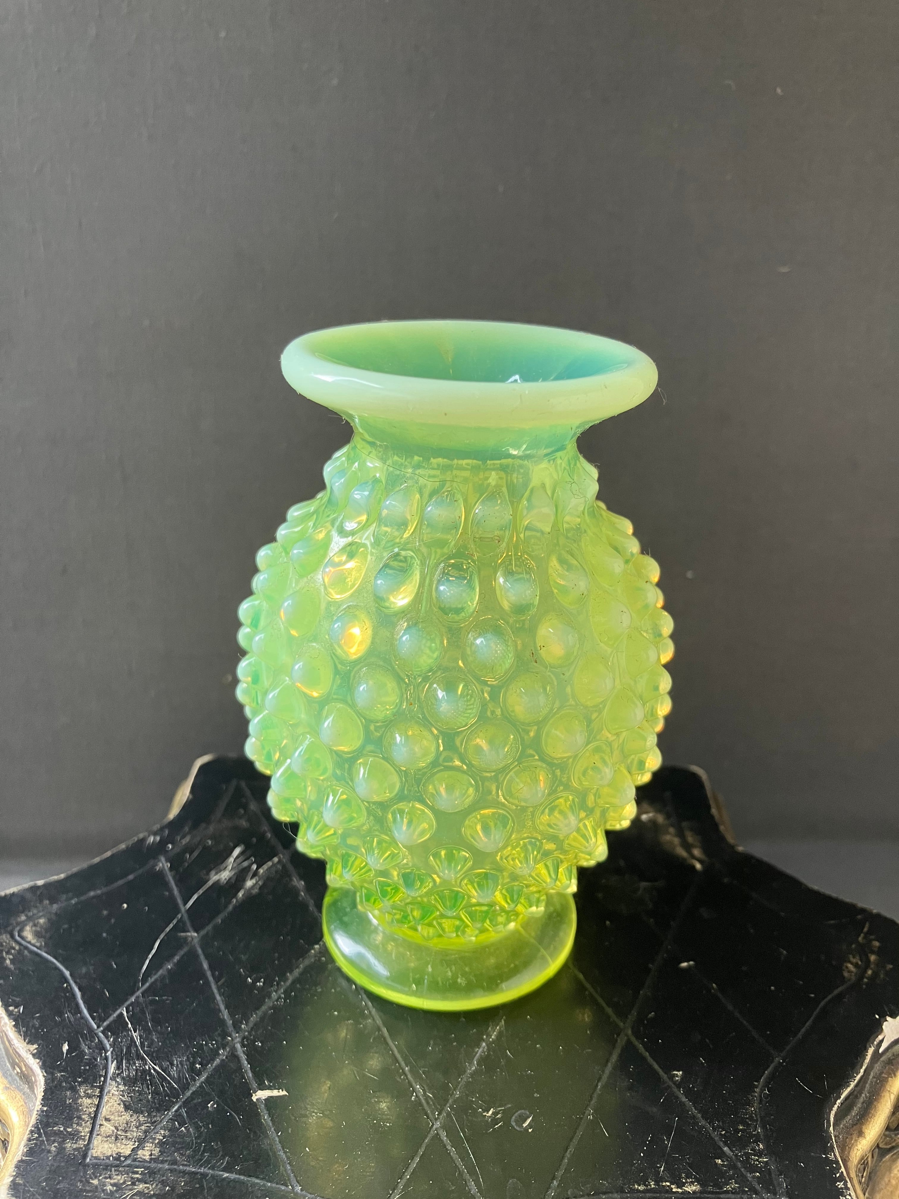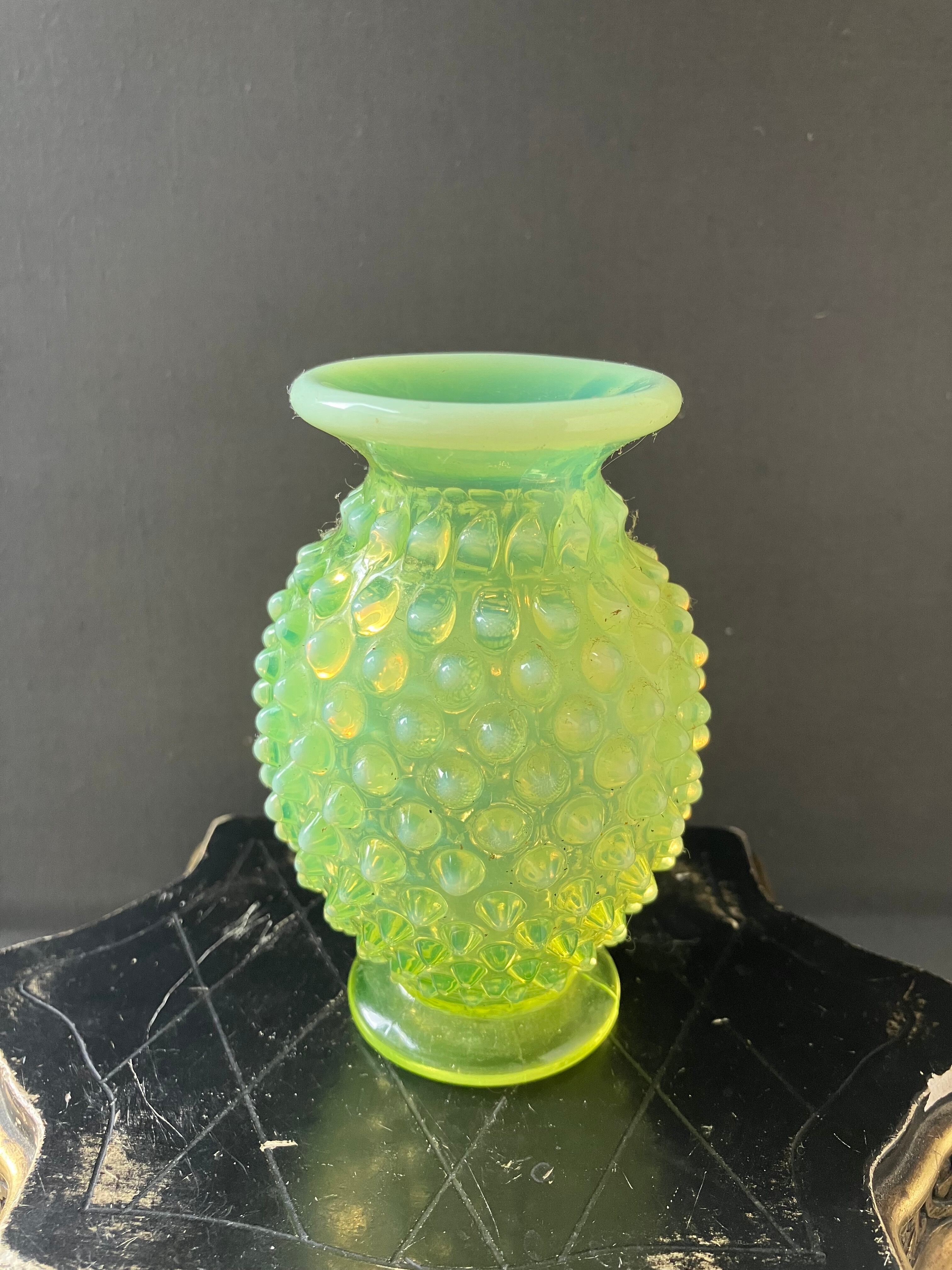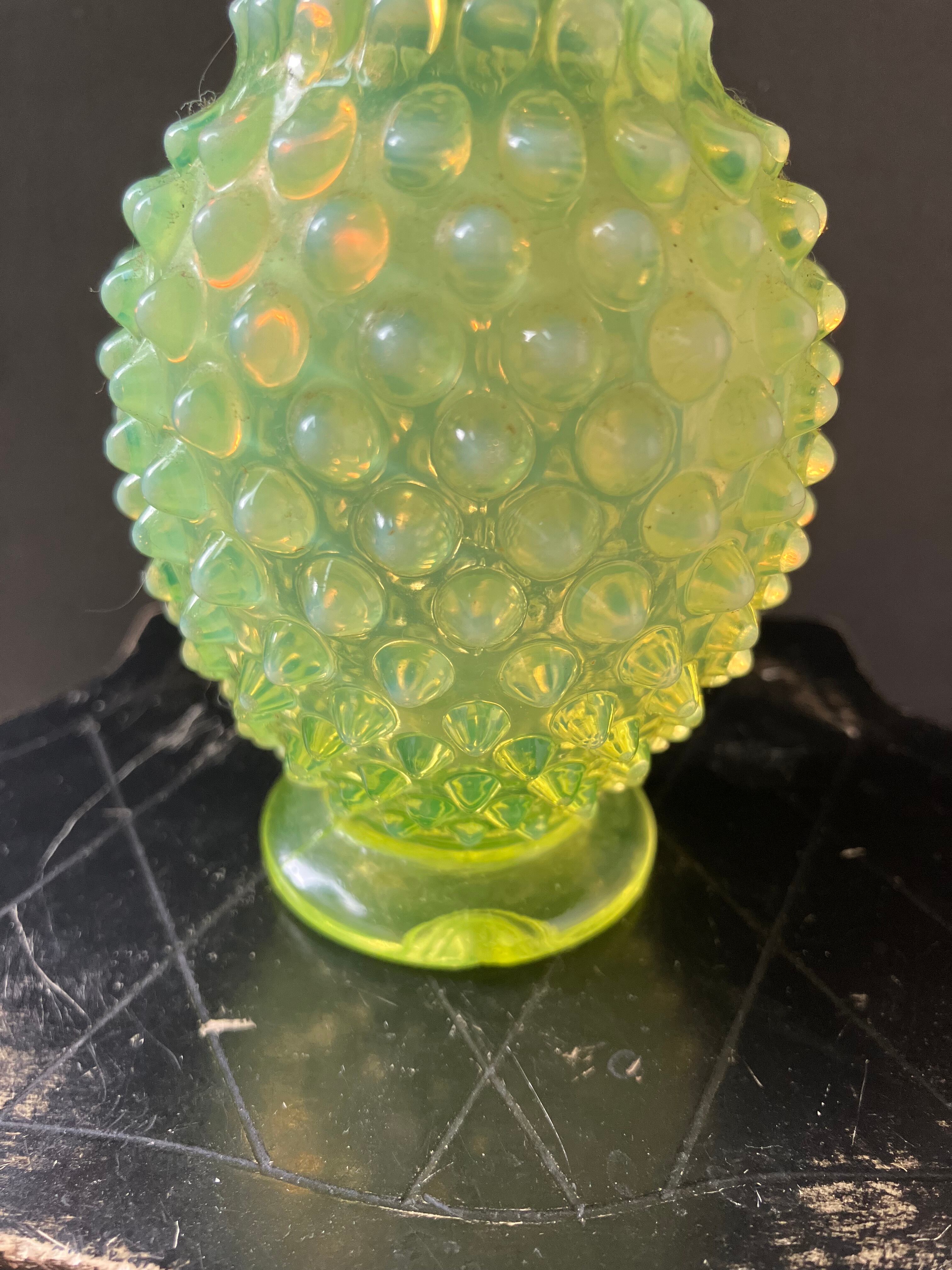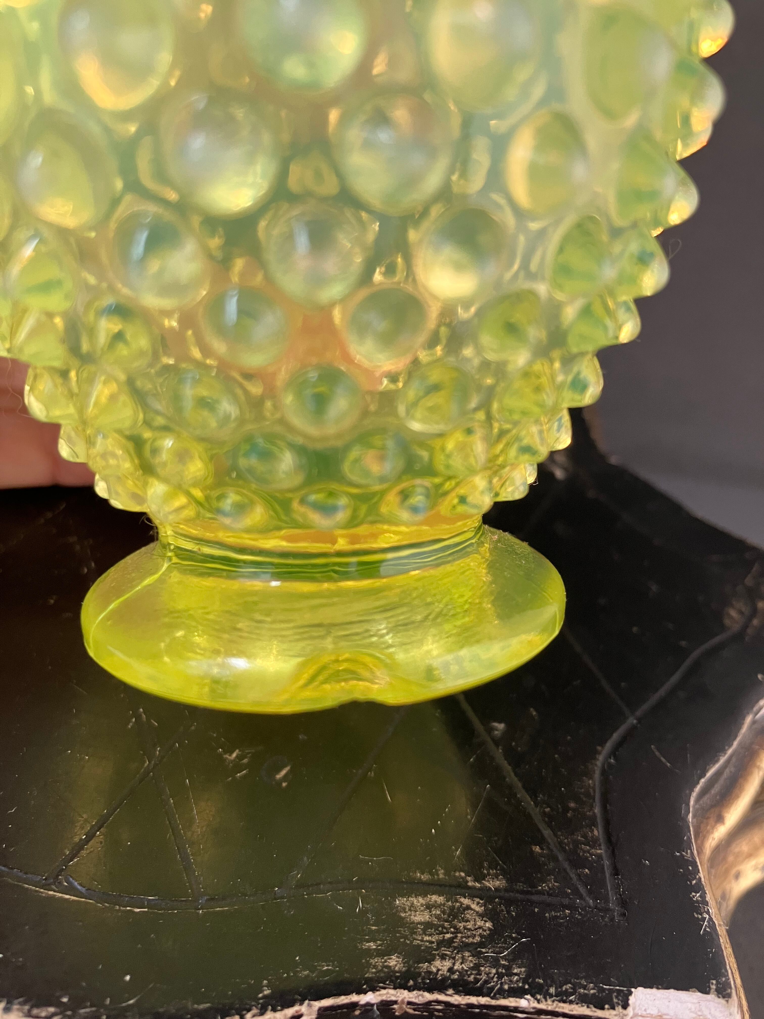 ・ウランガラスとオパリンガラスのボブネイルのベイスンと足付きディッシュのセットです。ベイスンの底にスレカケがあり、ディッシュの角1ヶ所にカケがあります。お値段に反映しております。フランスアンティーク。