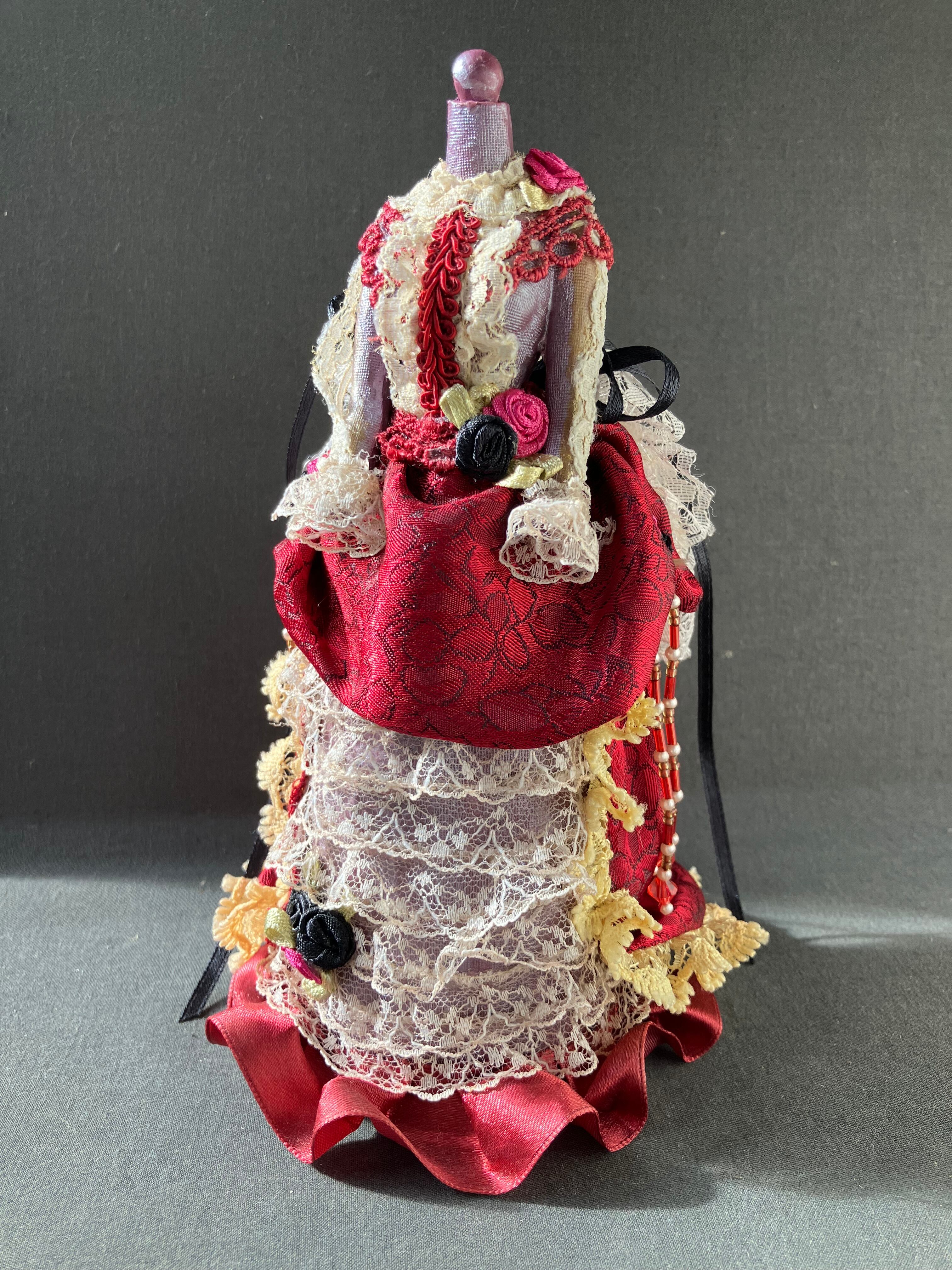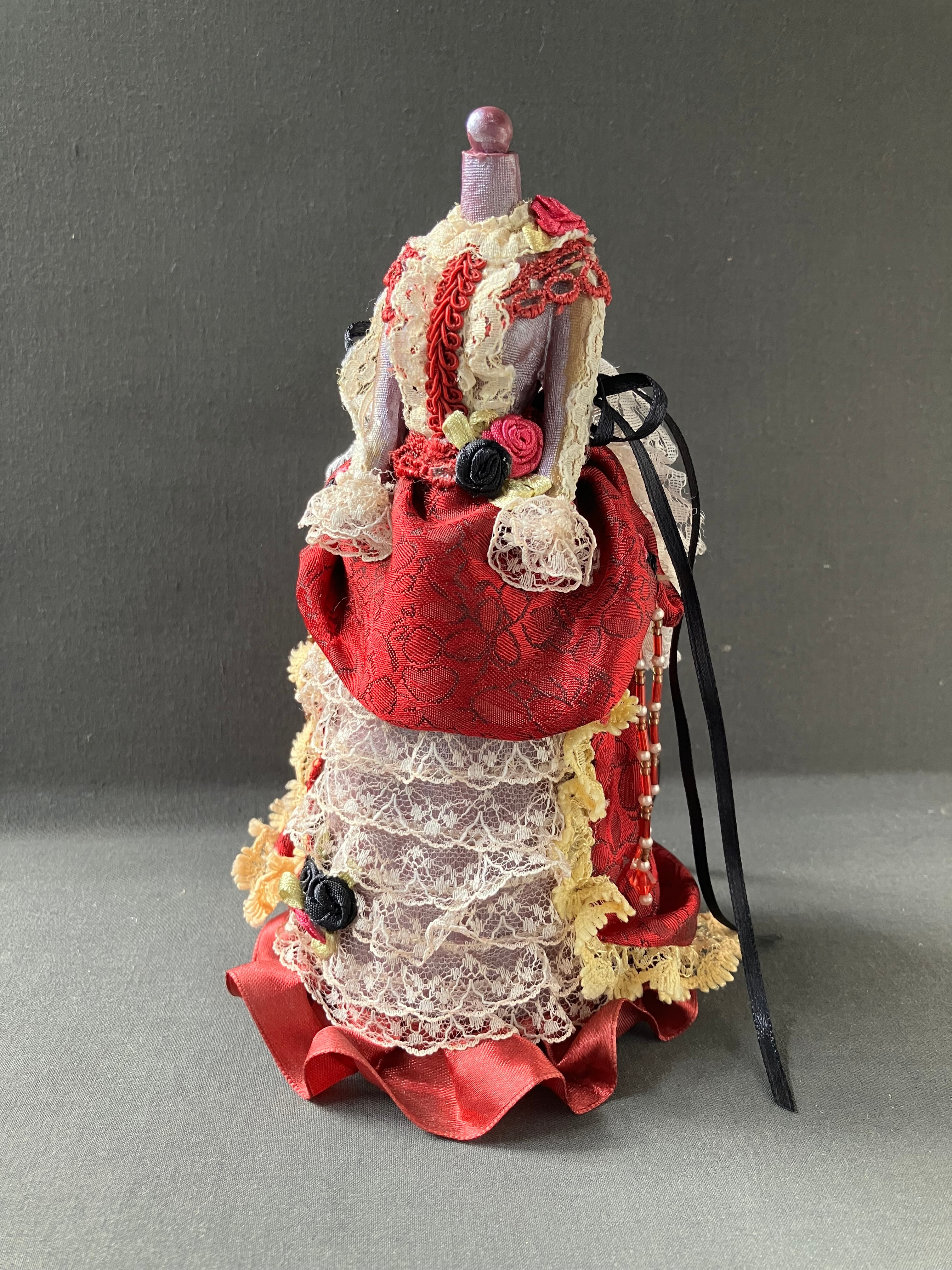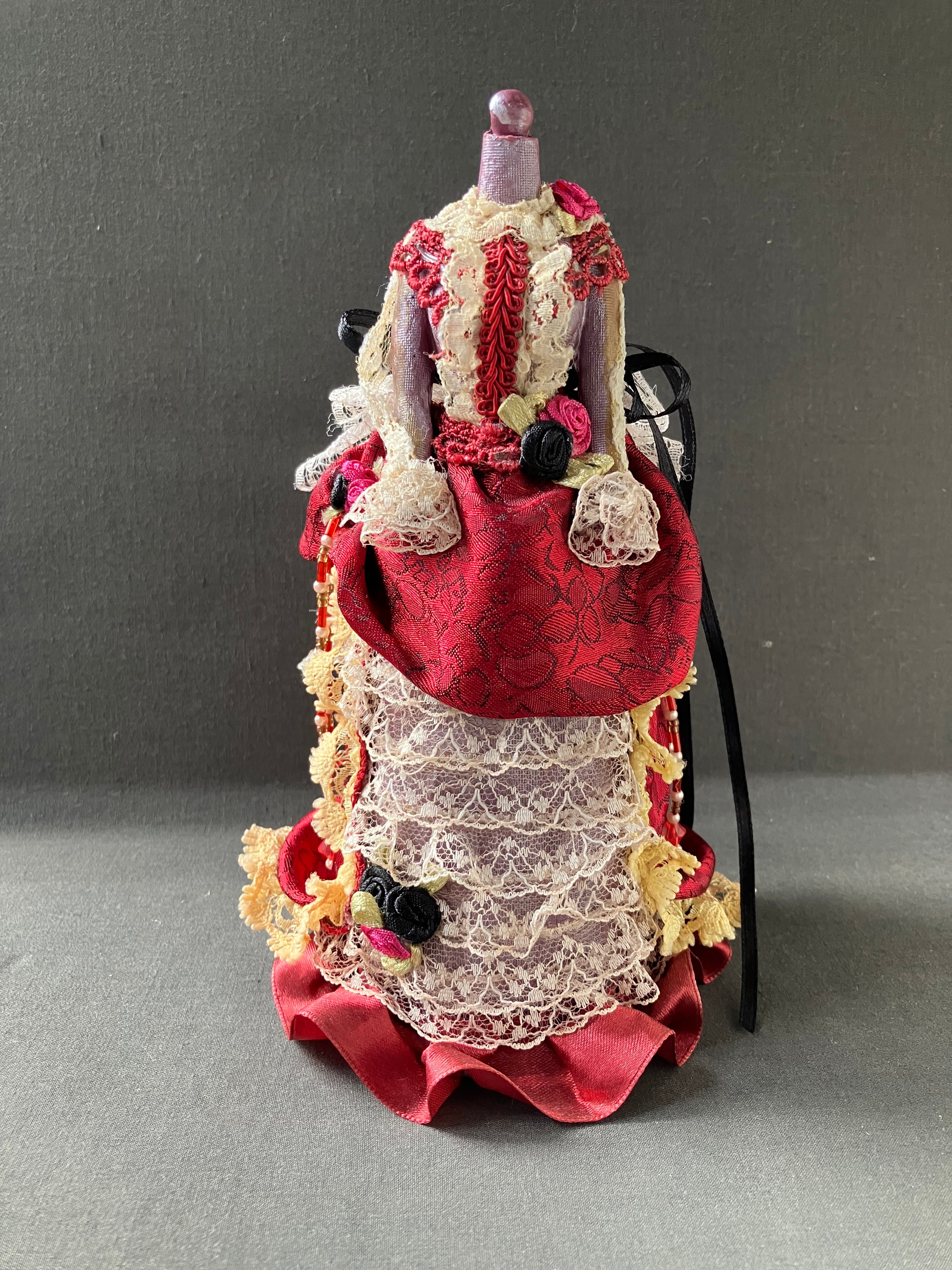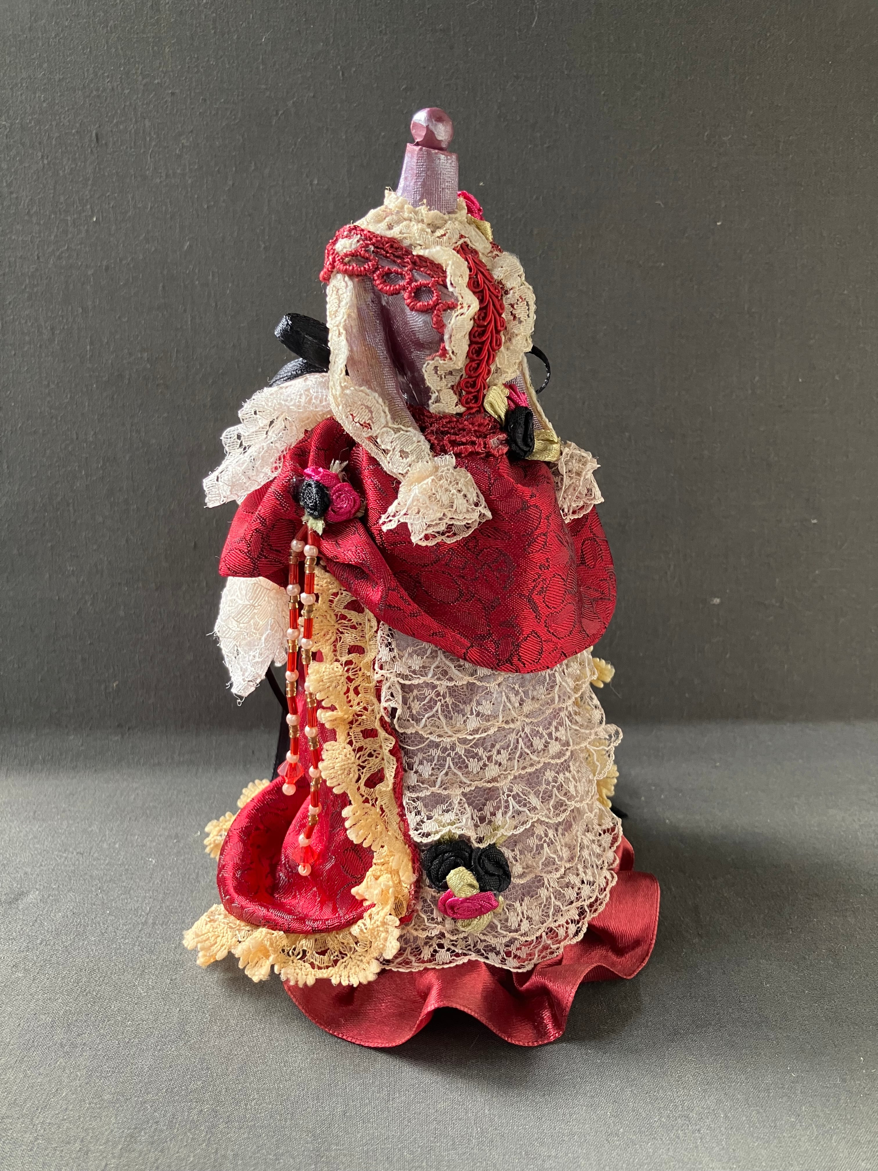 ドールトルソーにロココ調のドレスを施したオブジェです。ドレスはトルソーに張り付いていますので、脱げません。ロココリボンが