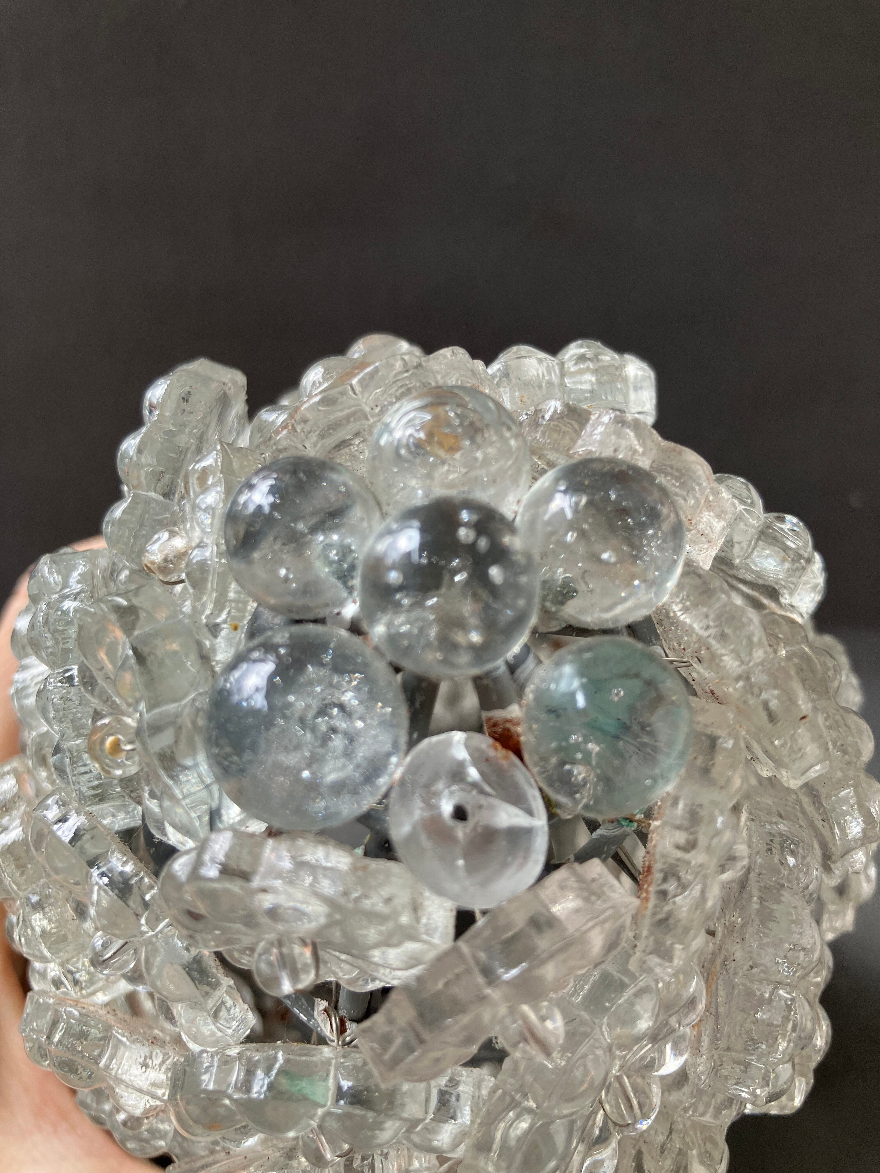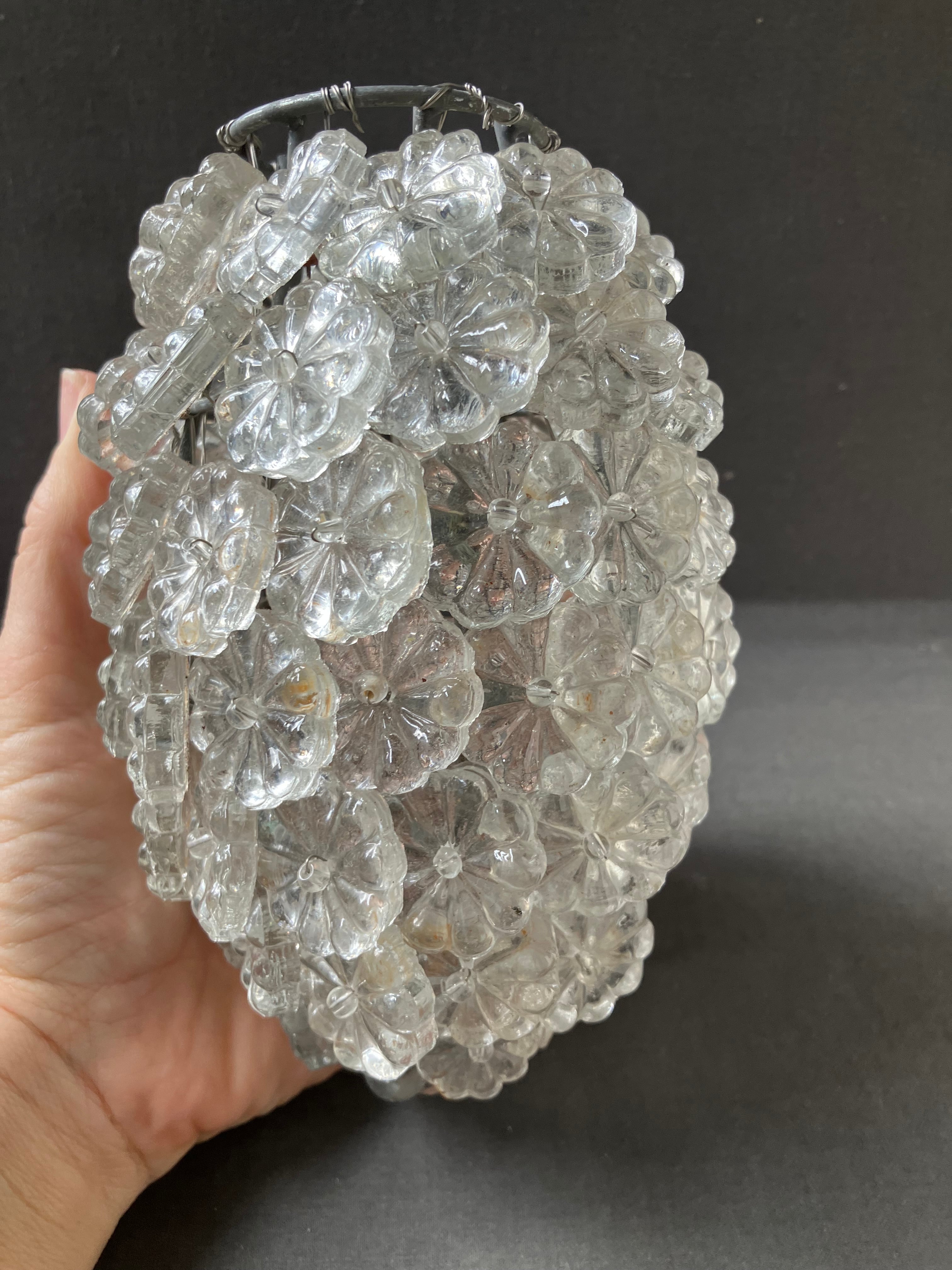 びっしりとお花の形のガラスビーズをアイアンで留め付けたランプシェードです。先端に