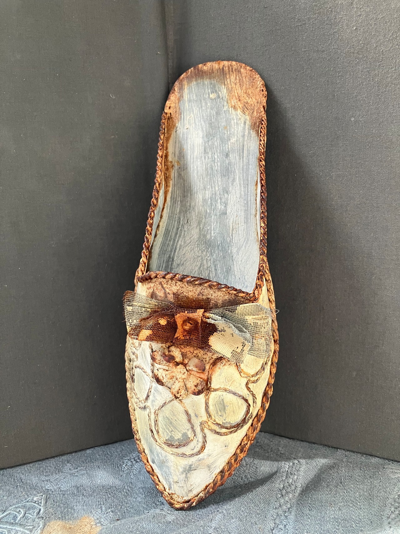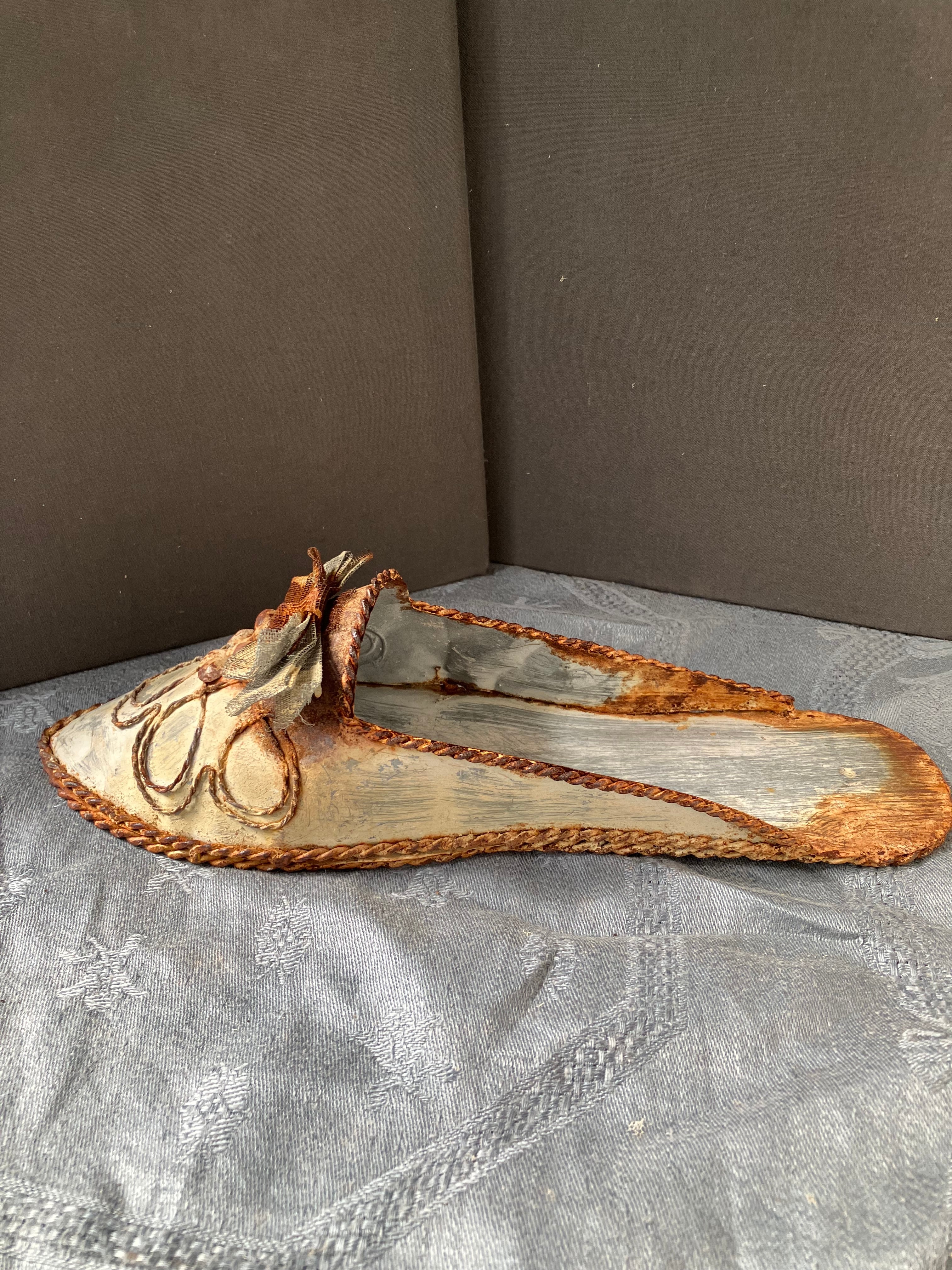TIN製のシューズ型オブジェです。サビもありますが良い風合いになっております。多肉やエアープランツを入れてお楽しみくださいませ。フランスビンテージ。