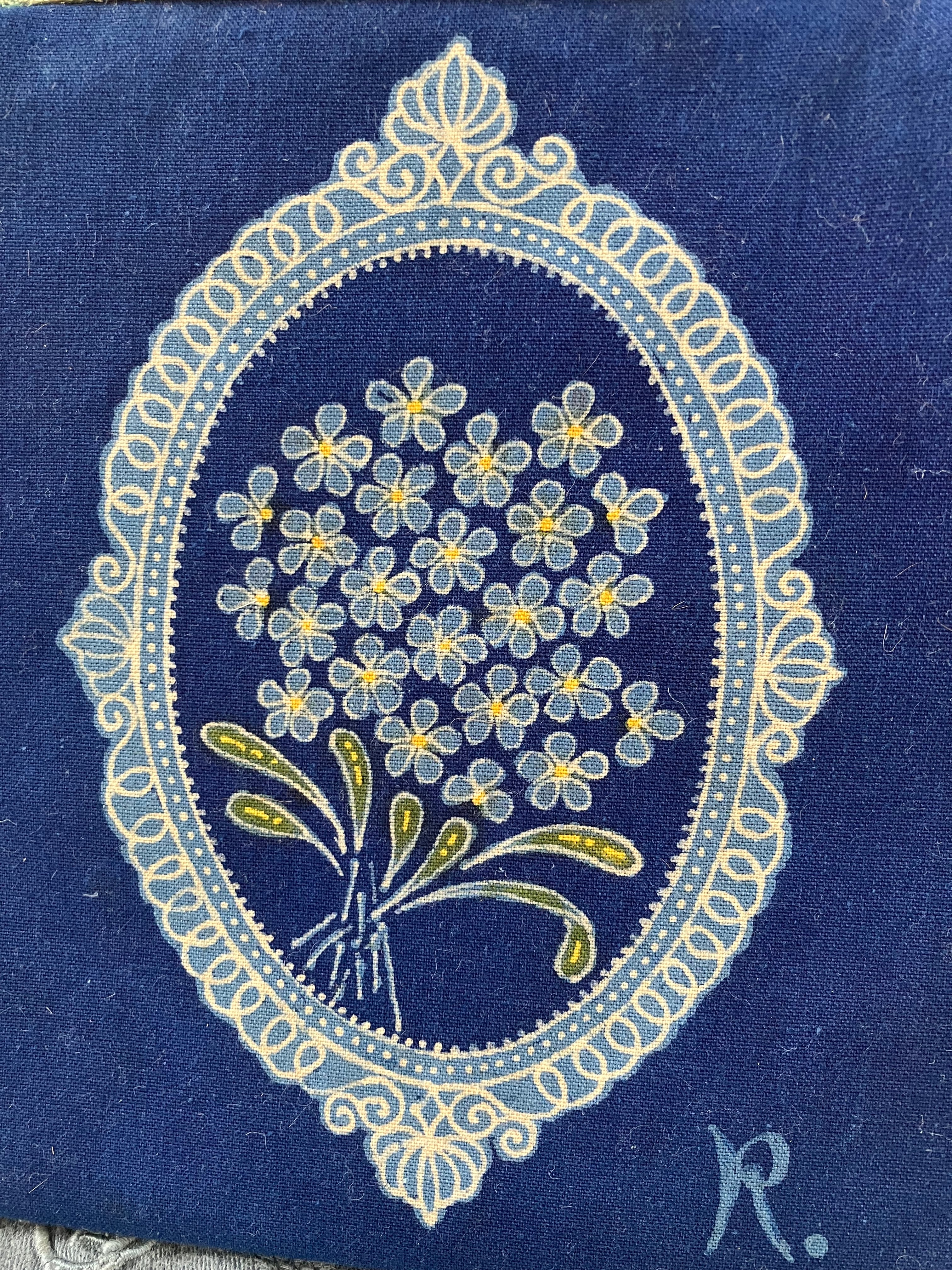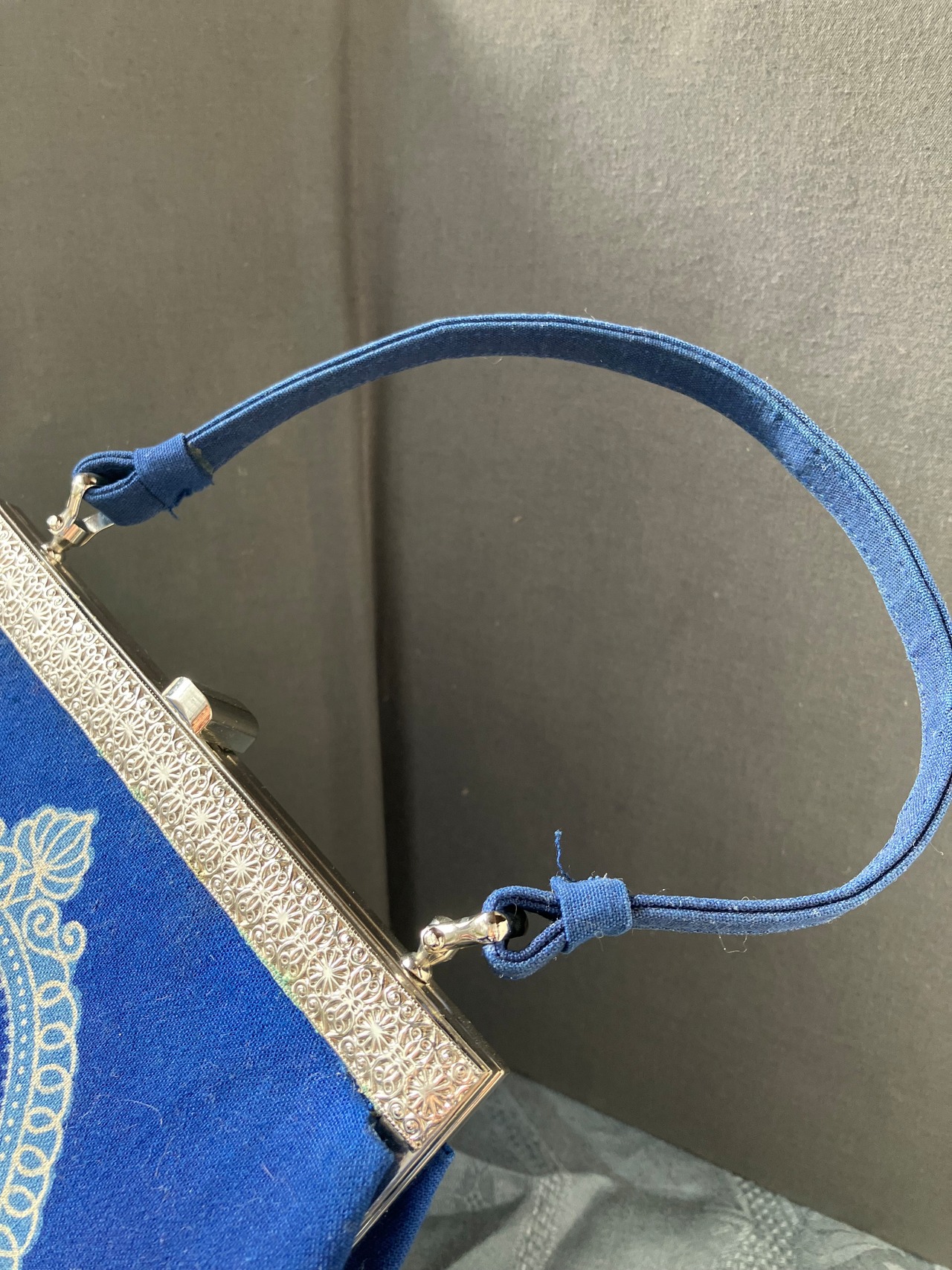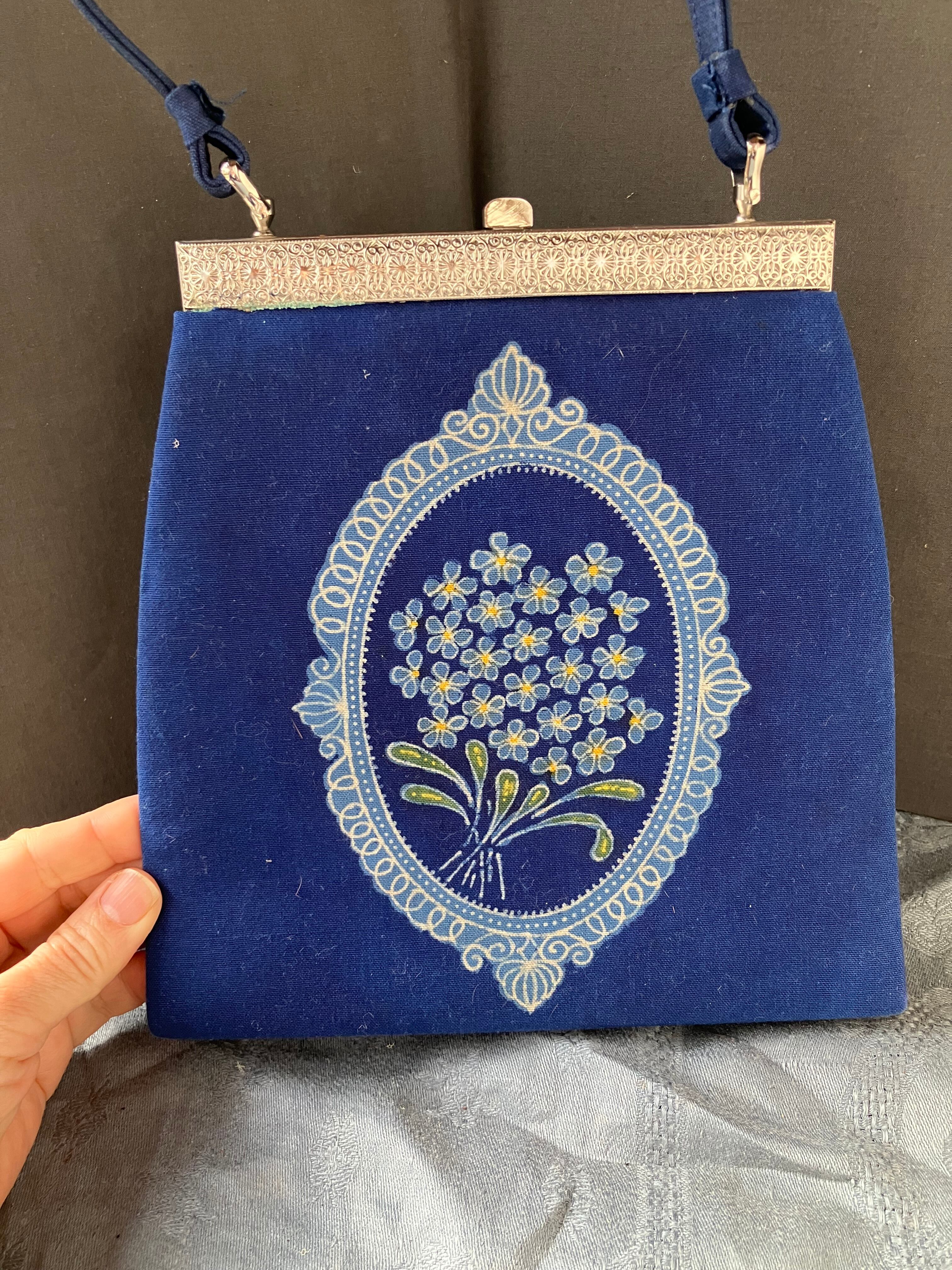 スミレとカメオフレームが可愛いらしいバックです。留金も凝っていてしっかりしています。内側はモーヴブルーのシルクです。実用できるアンティークは楽しいですね。お洋服やお着物にも合いそうです。フランスビンテージ。