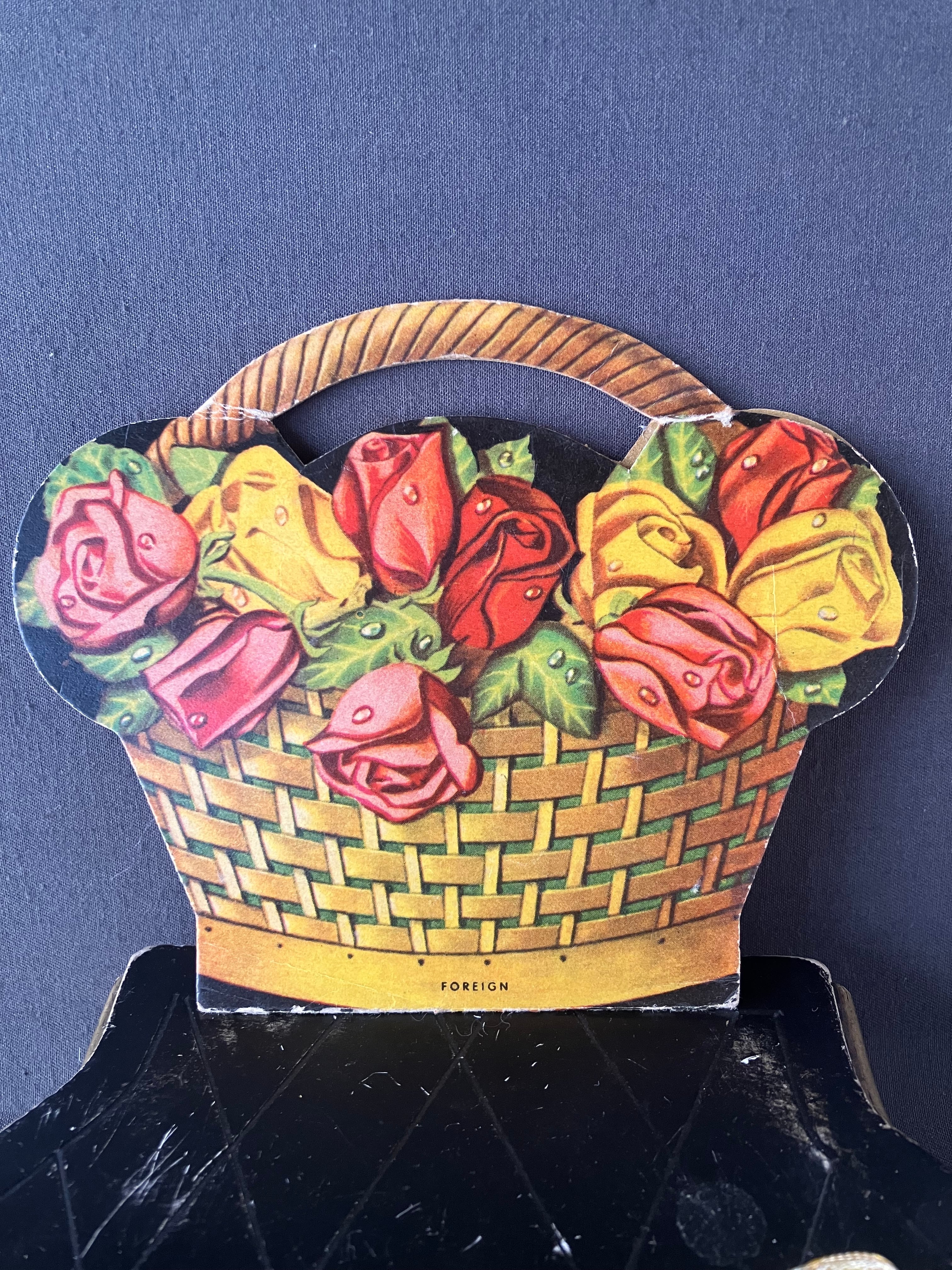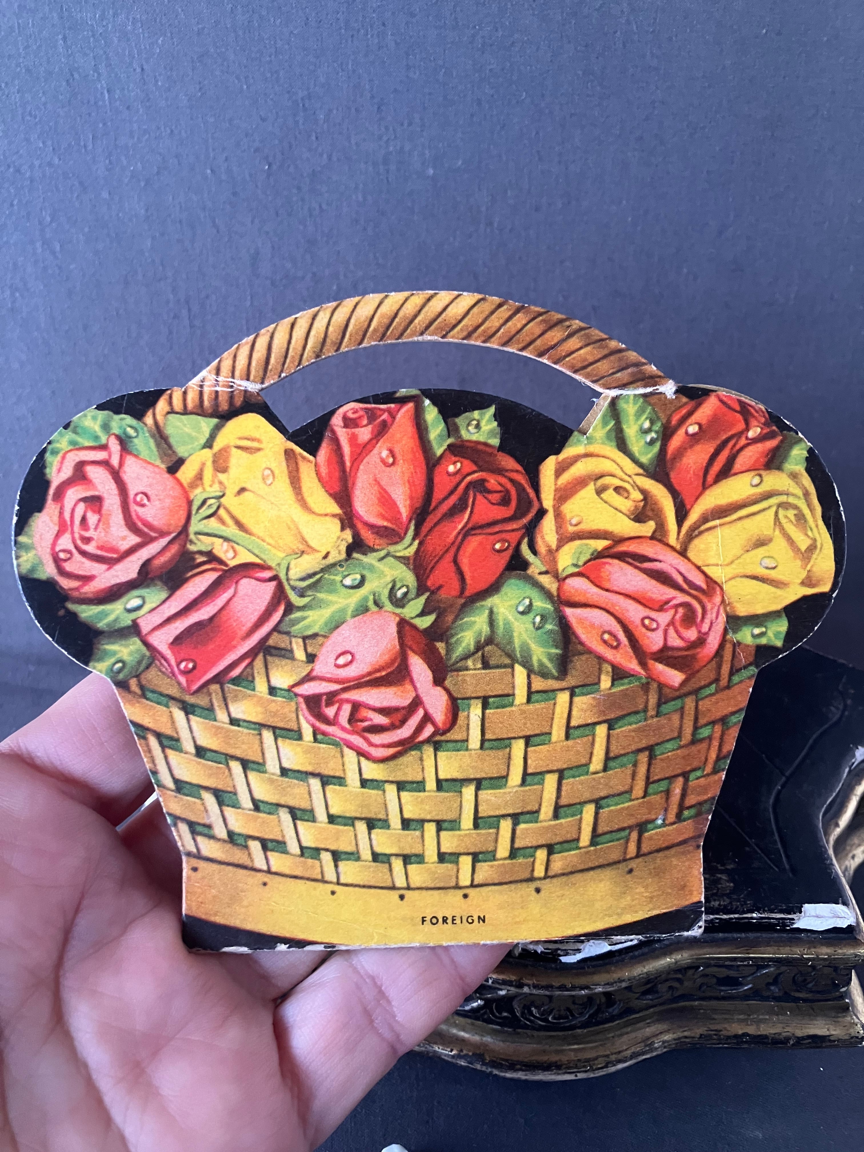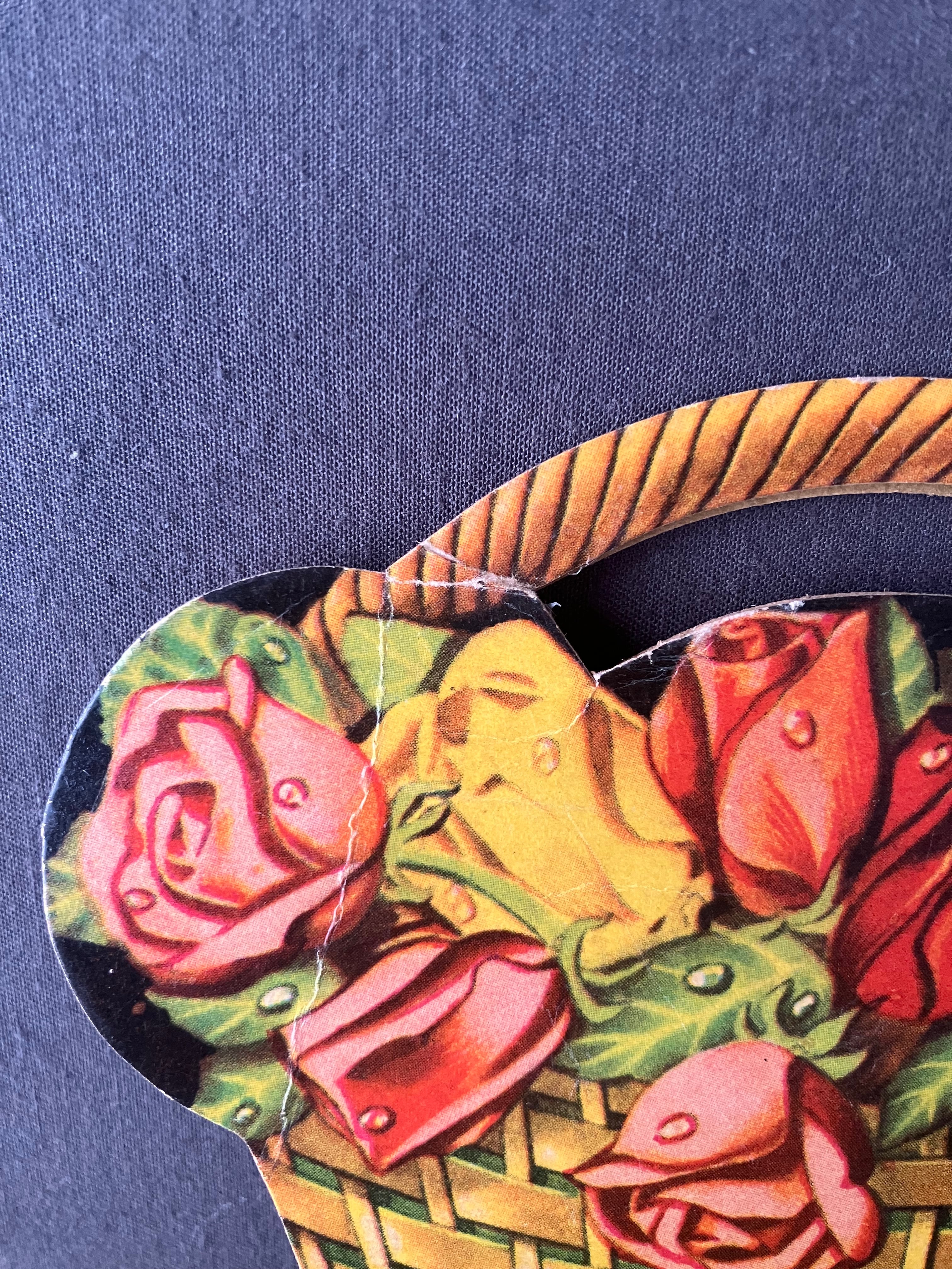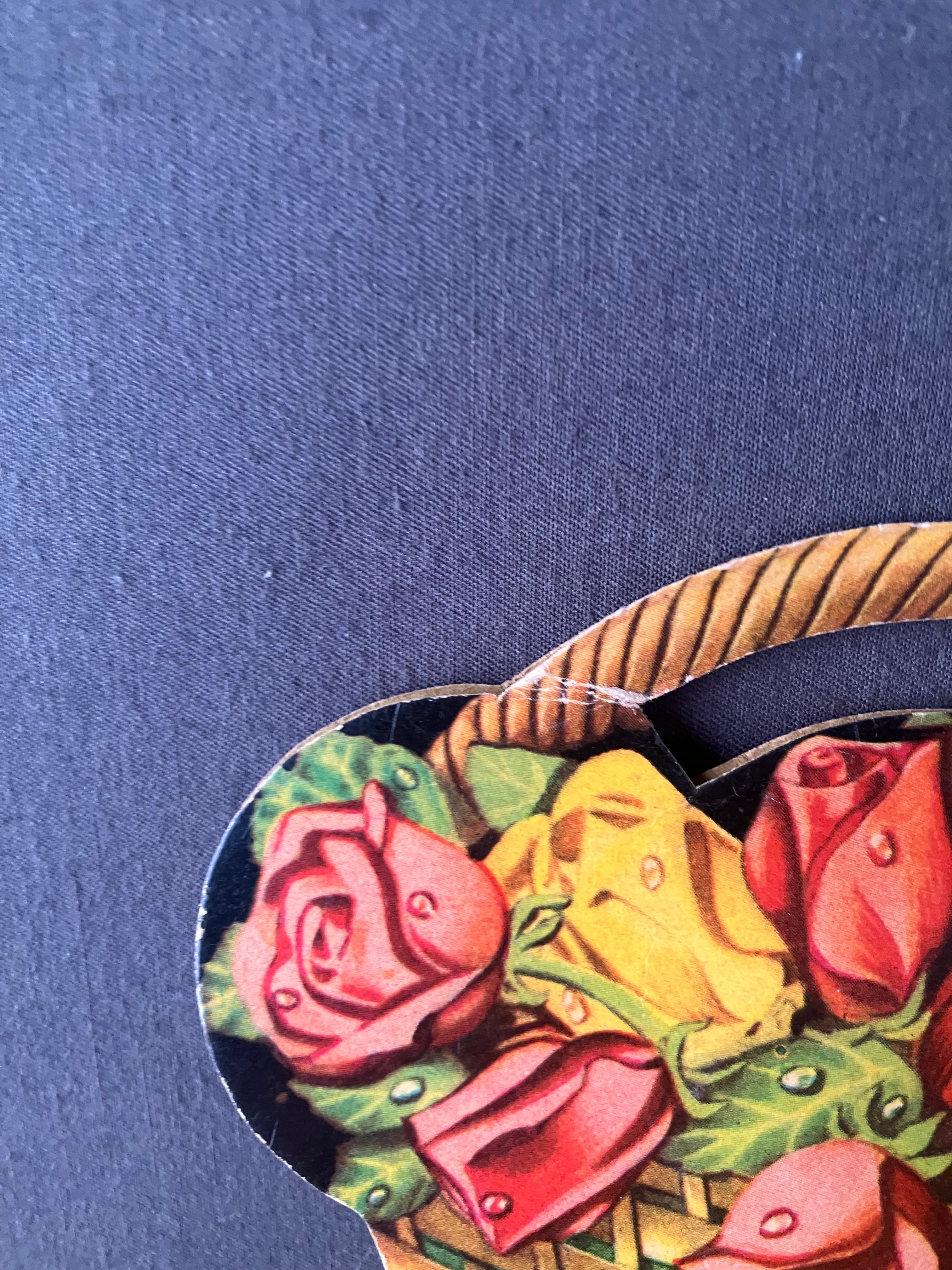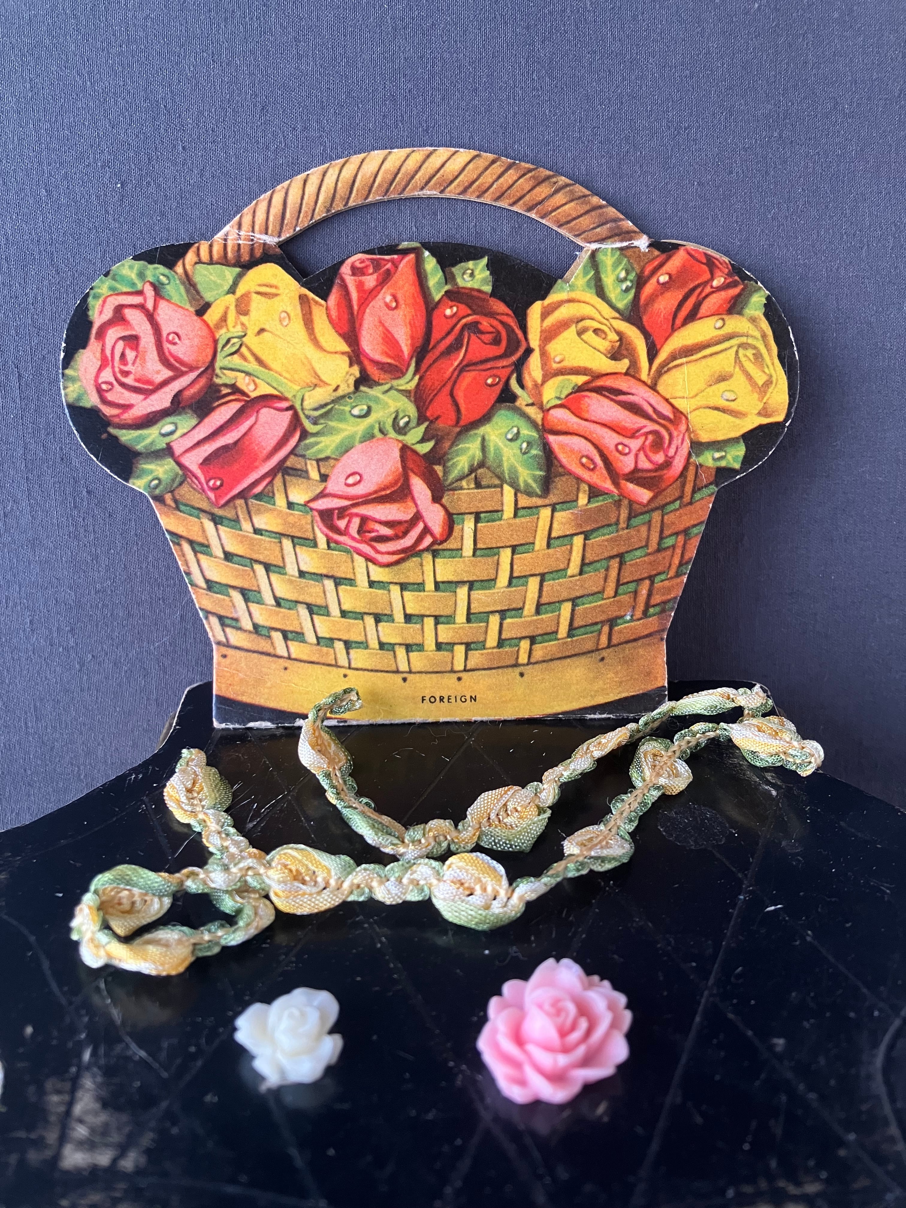 バラとパニエのニードルセットです。パニエの繋ぎ目の部分が破れてはいませんが折り目がついています。ロココリボンとボタン2個お付けします。フランスビンテージ。