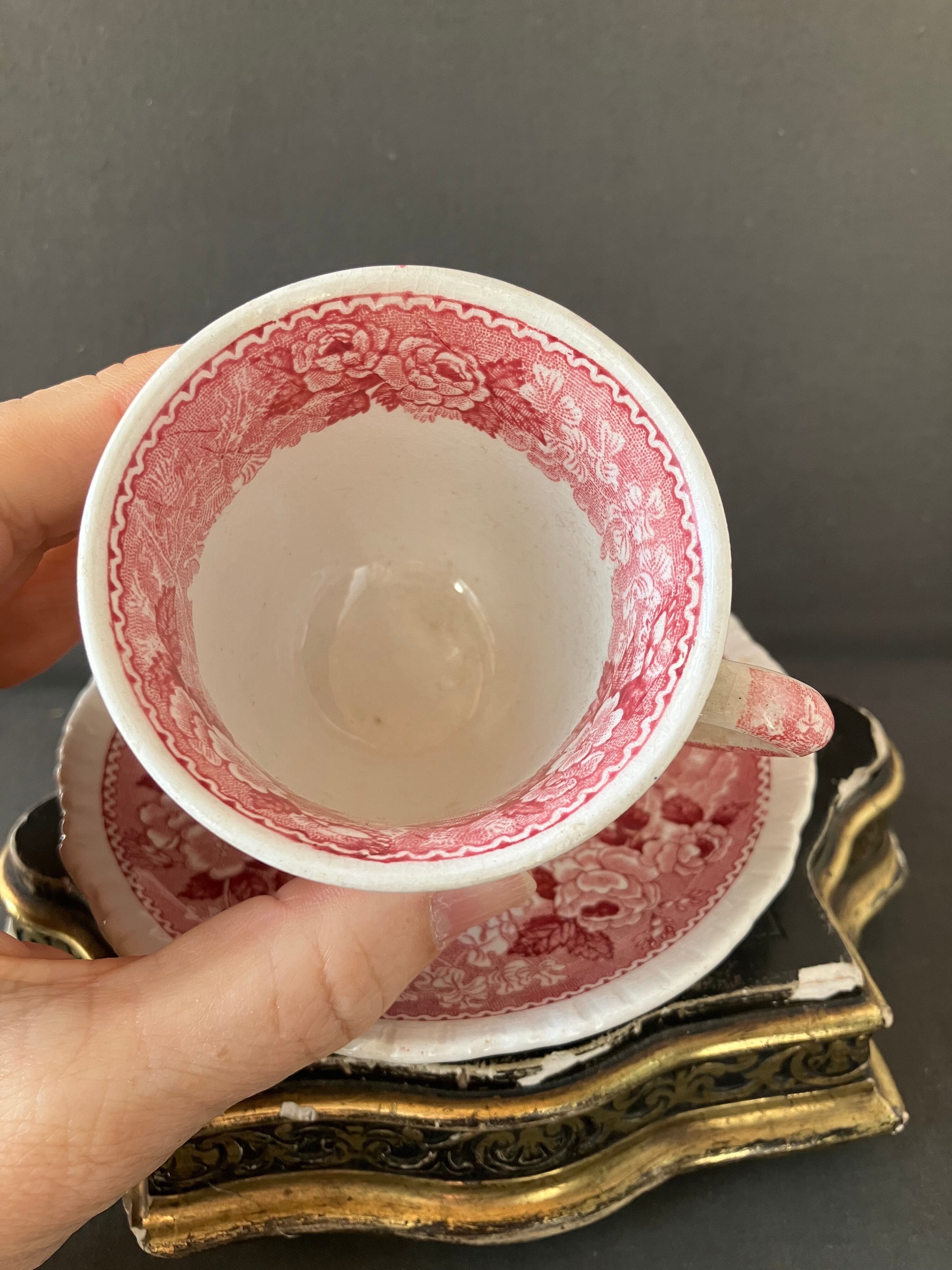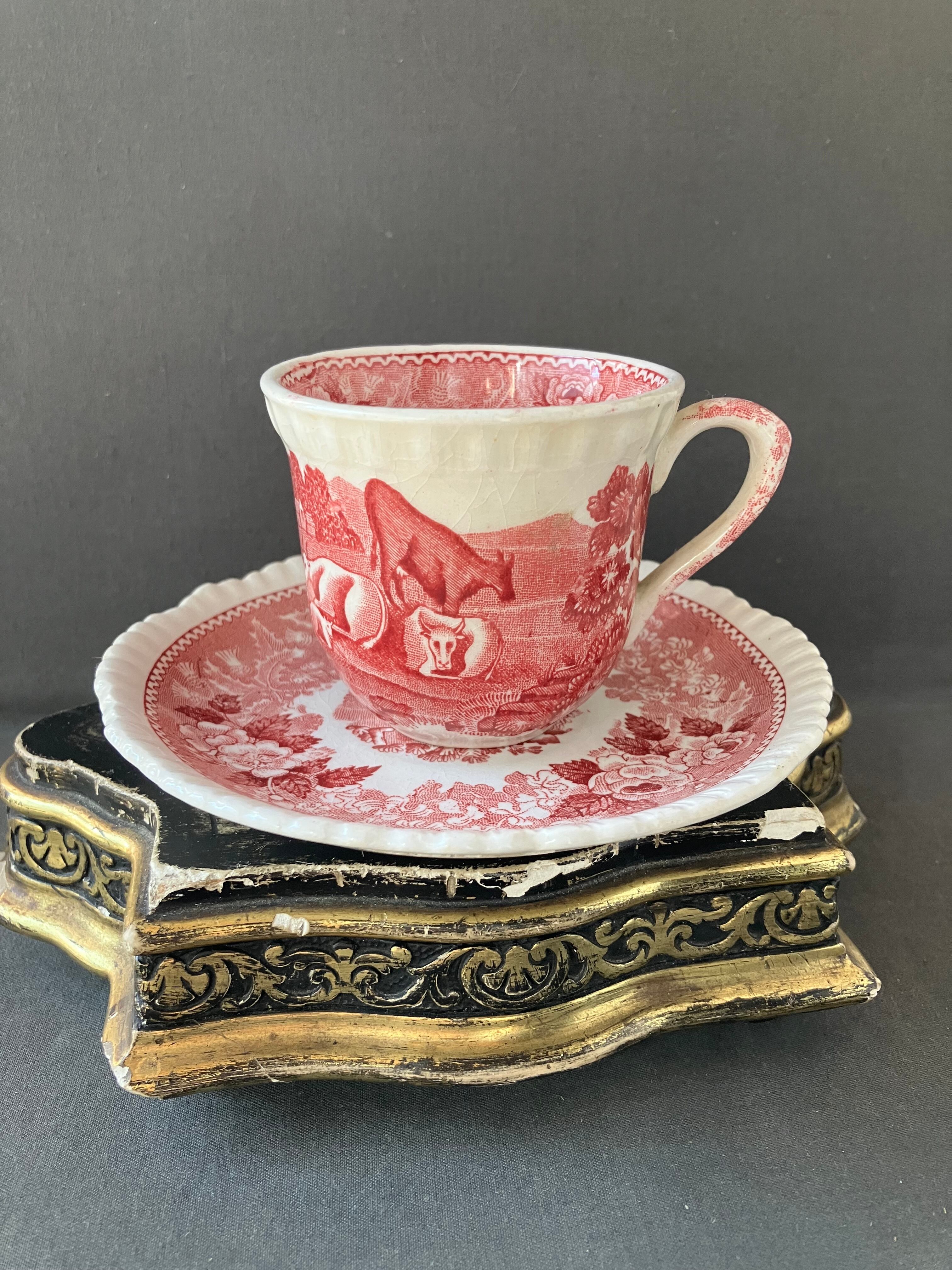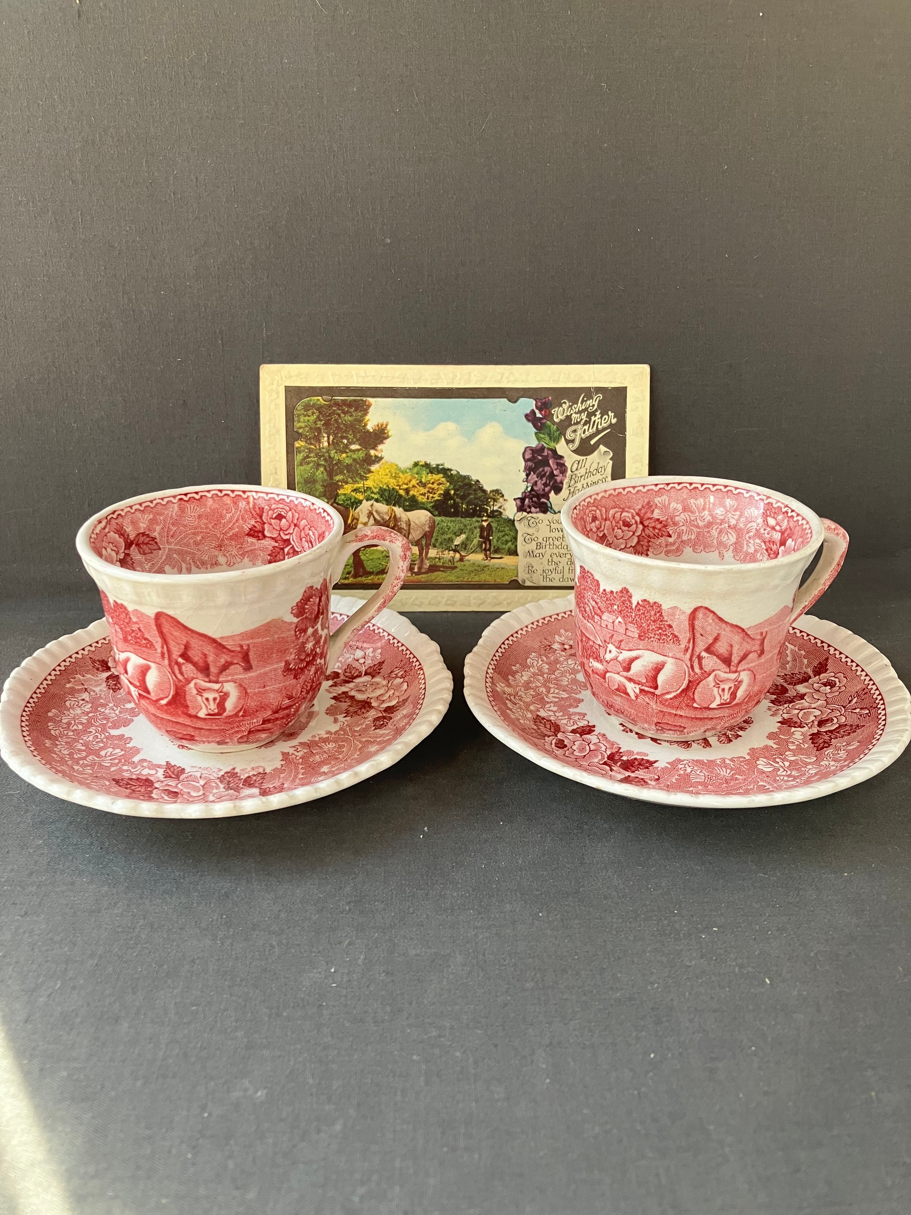 STAFFRDSHIRE ウィローデザインのカップ&ソーサー です。2客セットです。ヒビカケ無く経年の割に良い状態です。雰囲気の似ているカードもセットです。