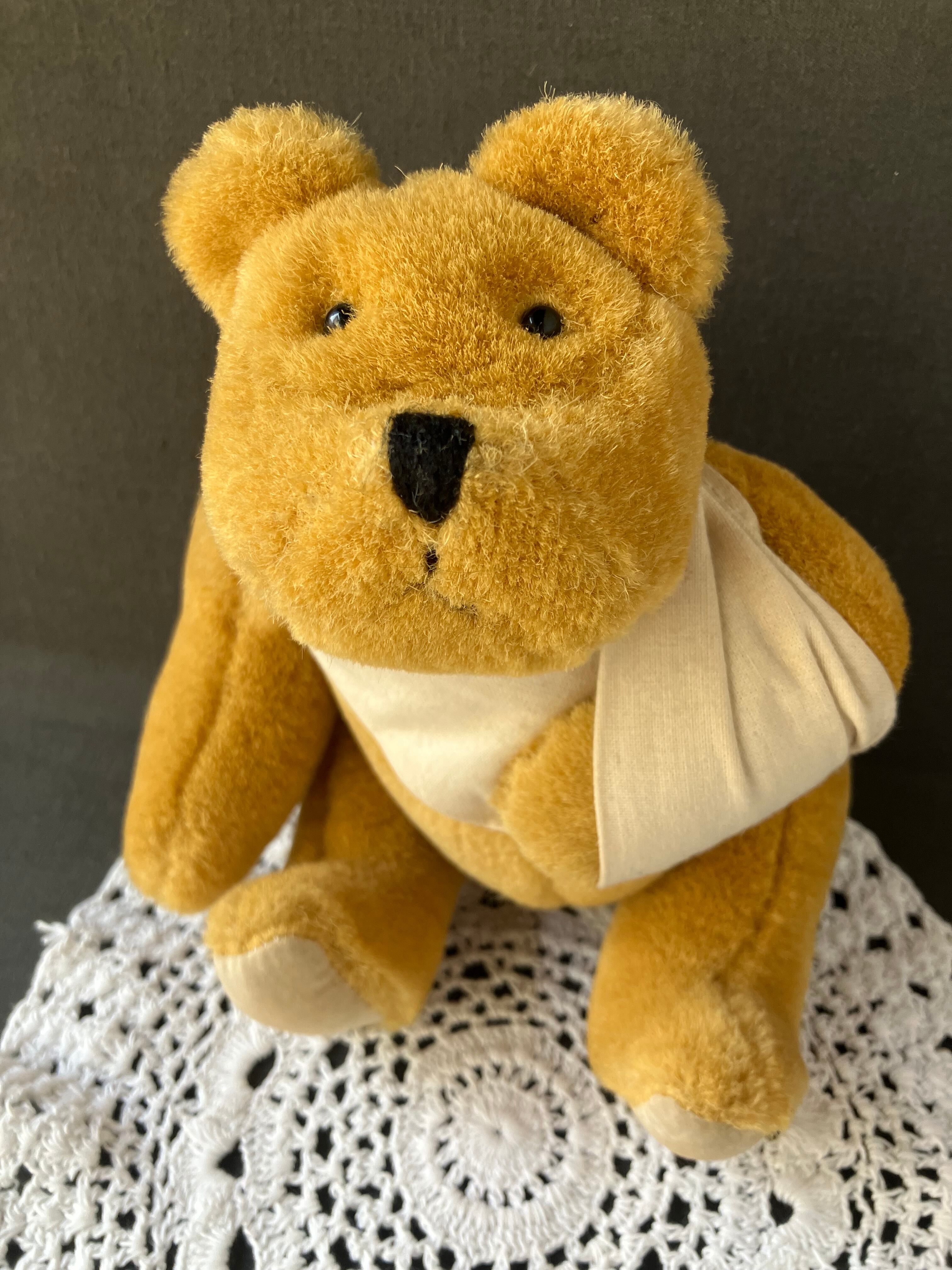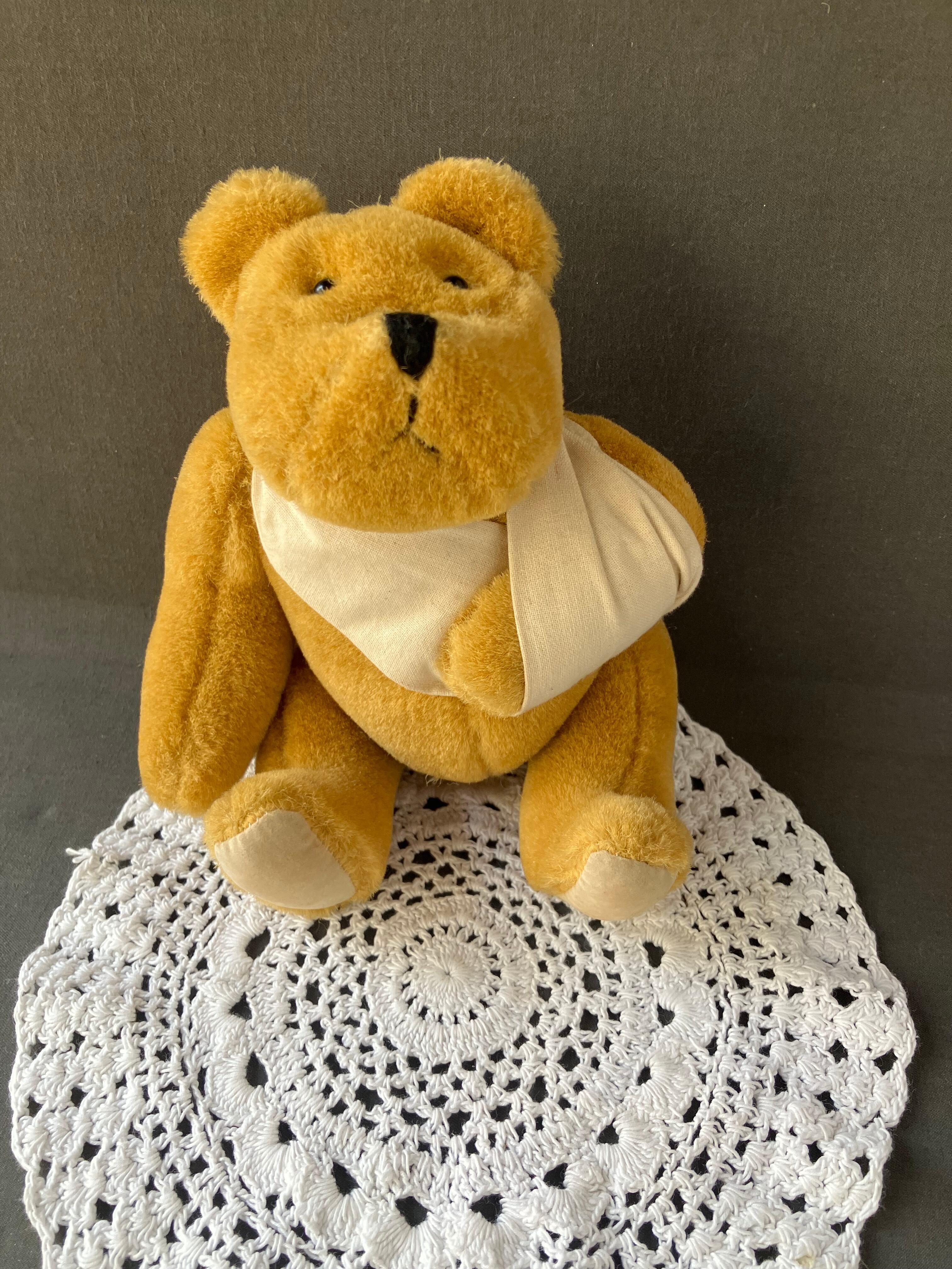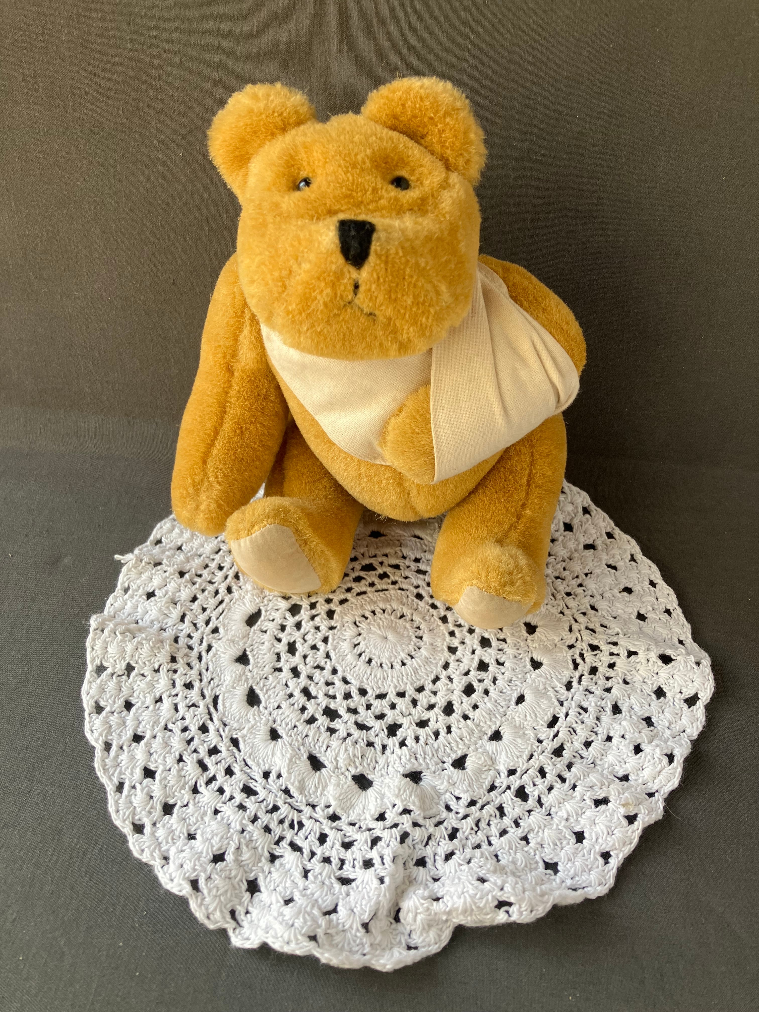 珍しい包帯を巻いたベアちゃんです。クロッシェレースのドイリー もセットです。フランスビンテージ。