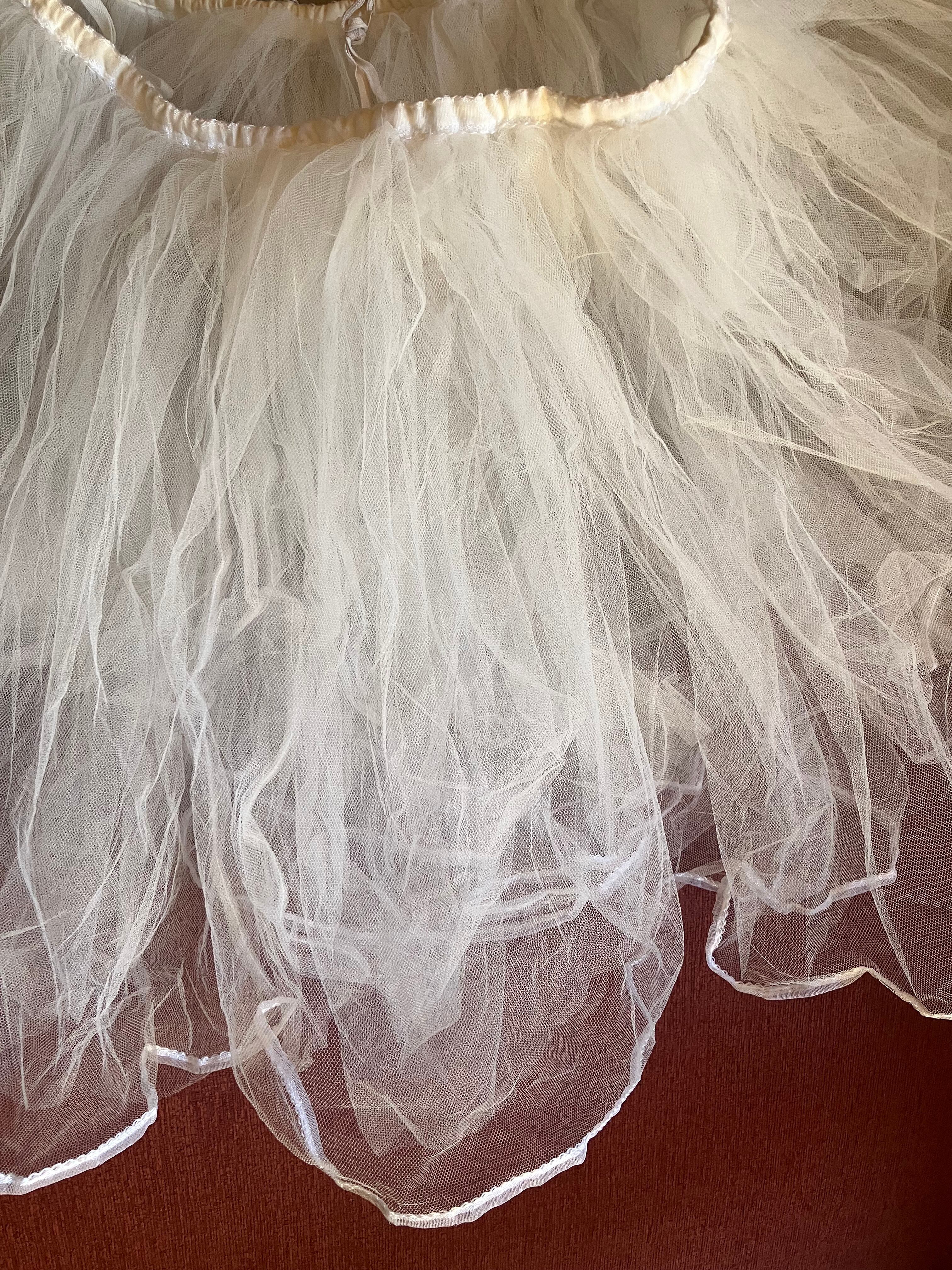 チュール素材の2重になっているバレリーナのチュチュです。ウエストが調節できますのでもちろんお召し頂けますが、ディスプレイして頂いても綺麗です。破れや引っ掻きはありません。経年の割に良い状態です。フランスビンテージ。