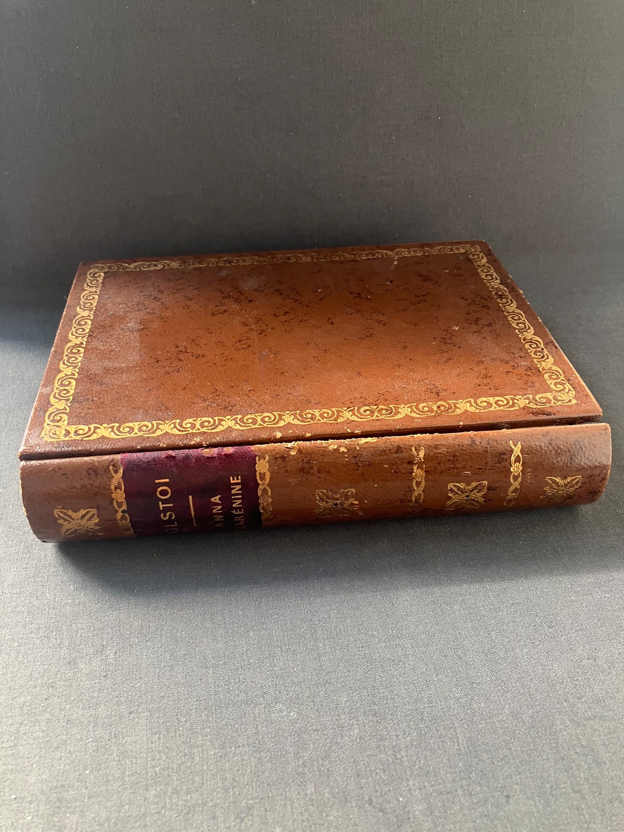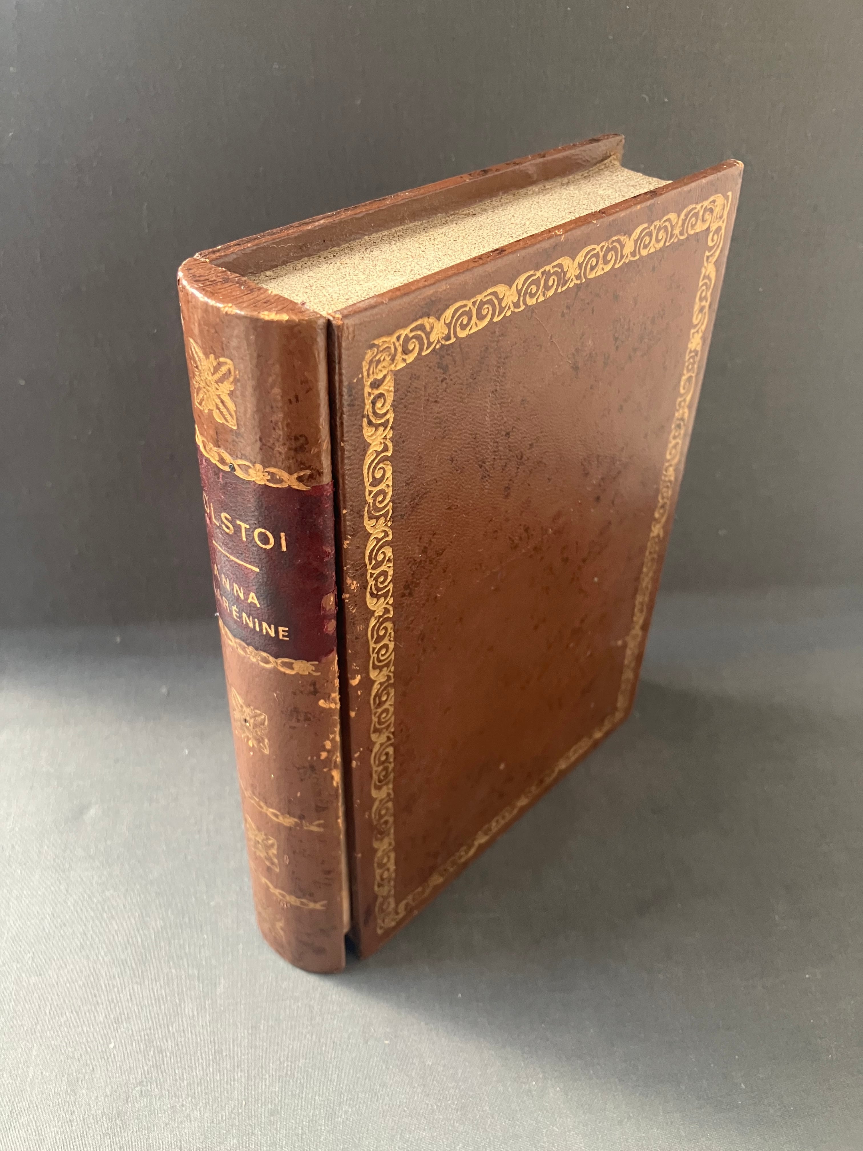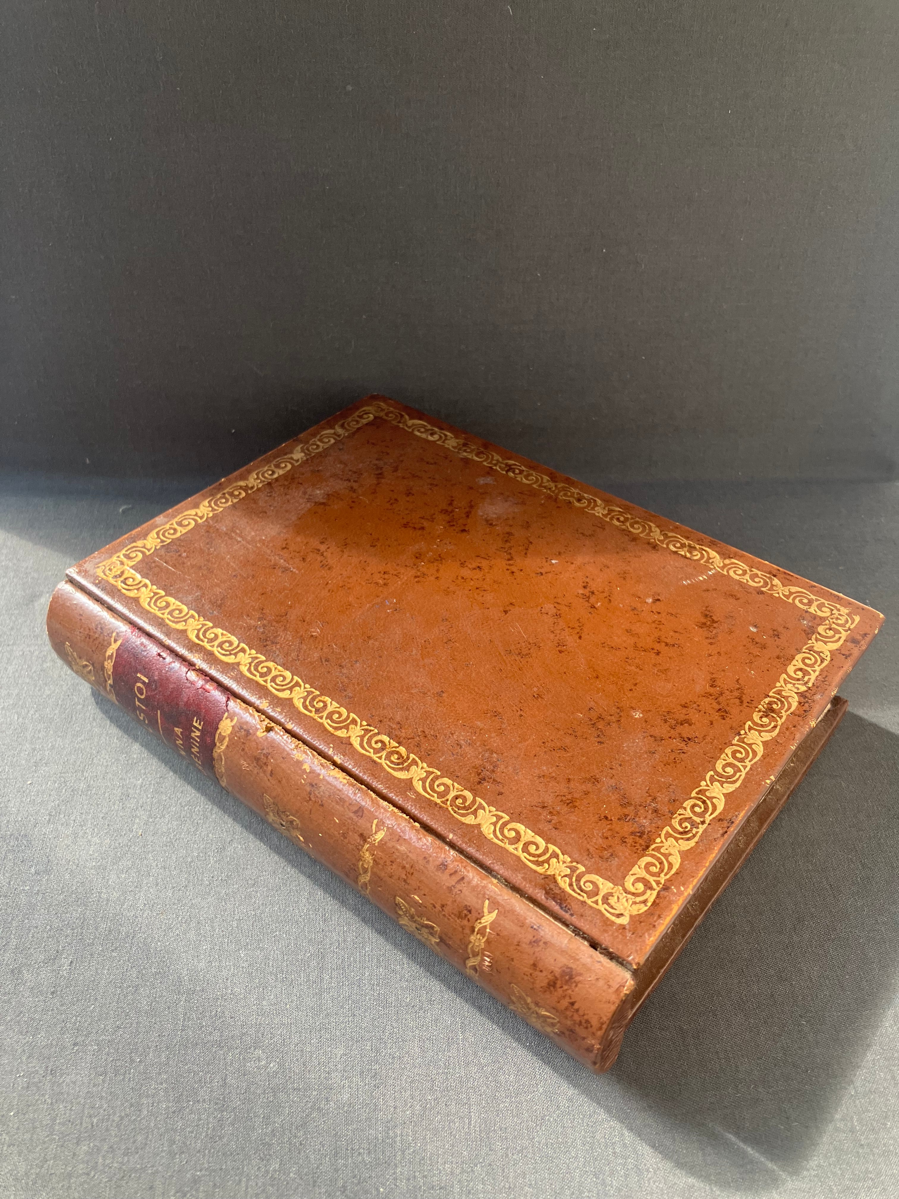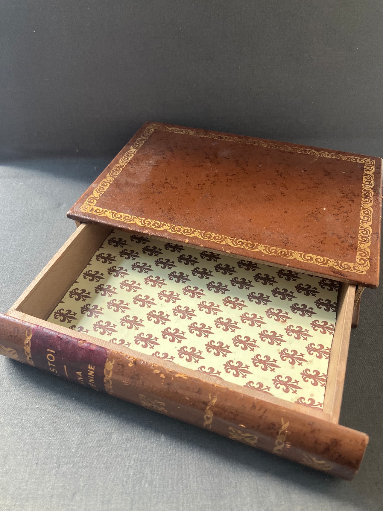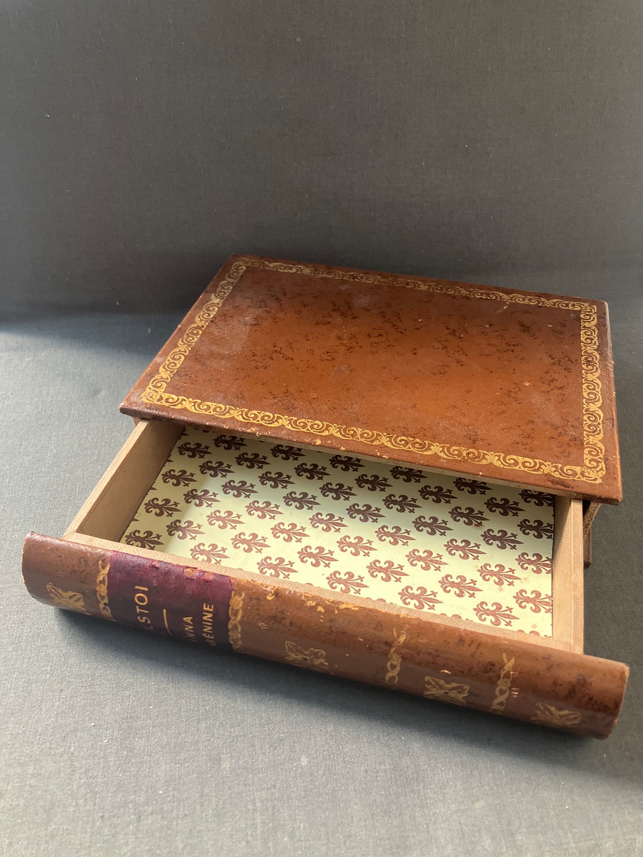 木製に革張りのアンティークBOOK型BOXです。引き出し型になっています。フランスビンテージ。