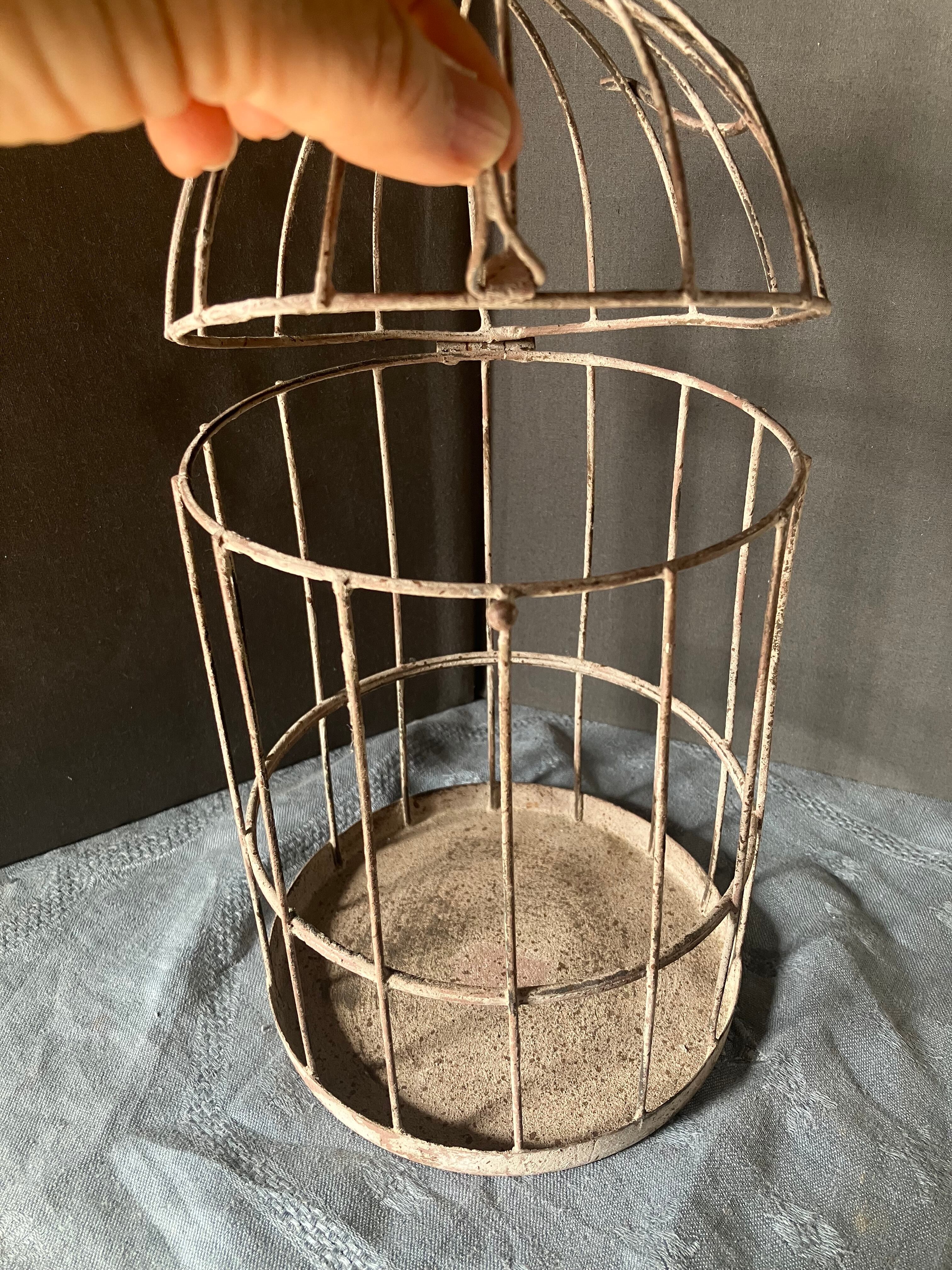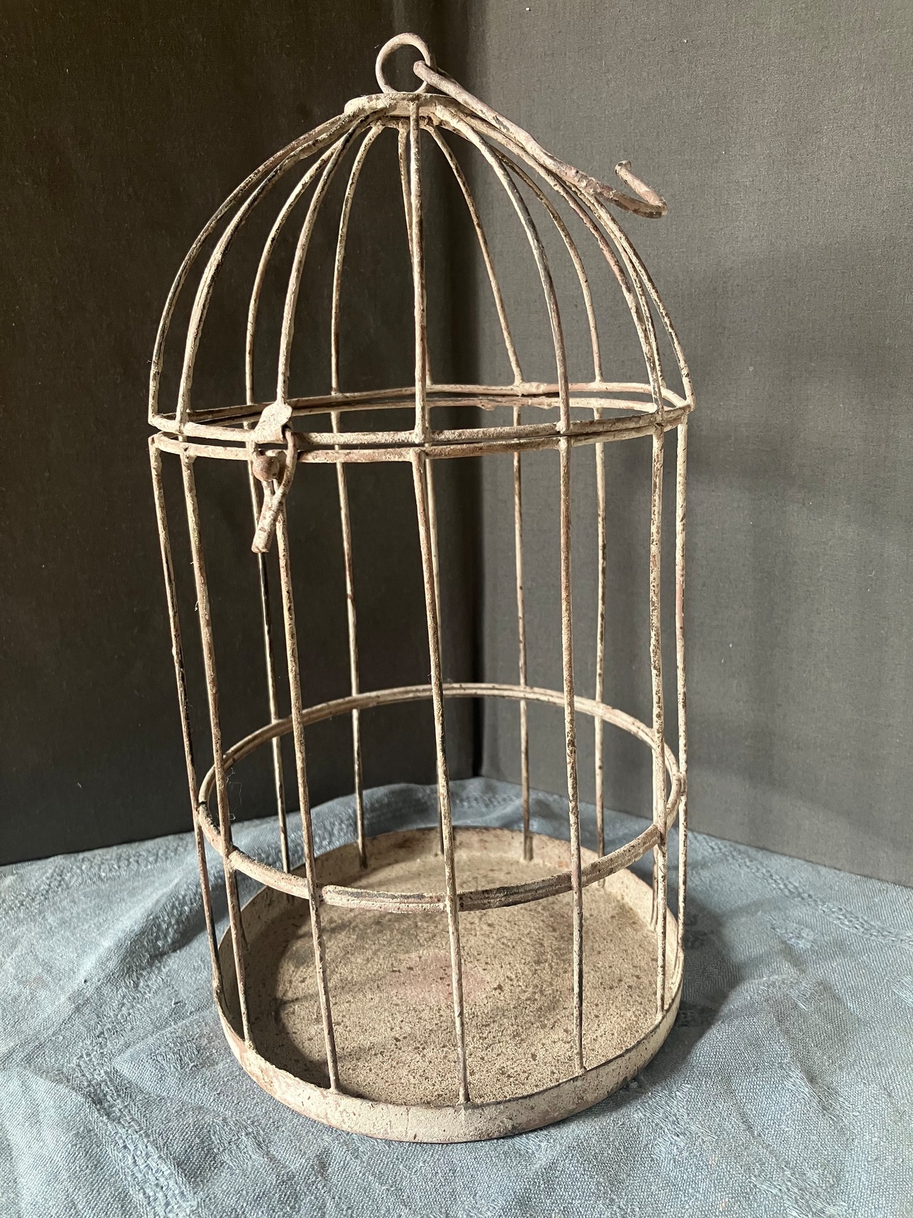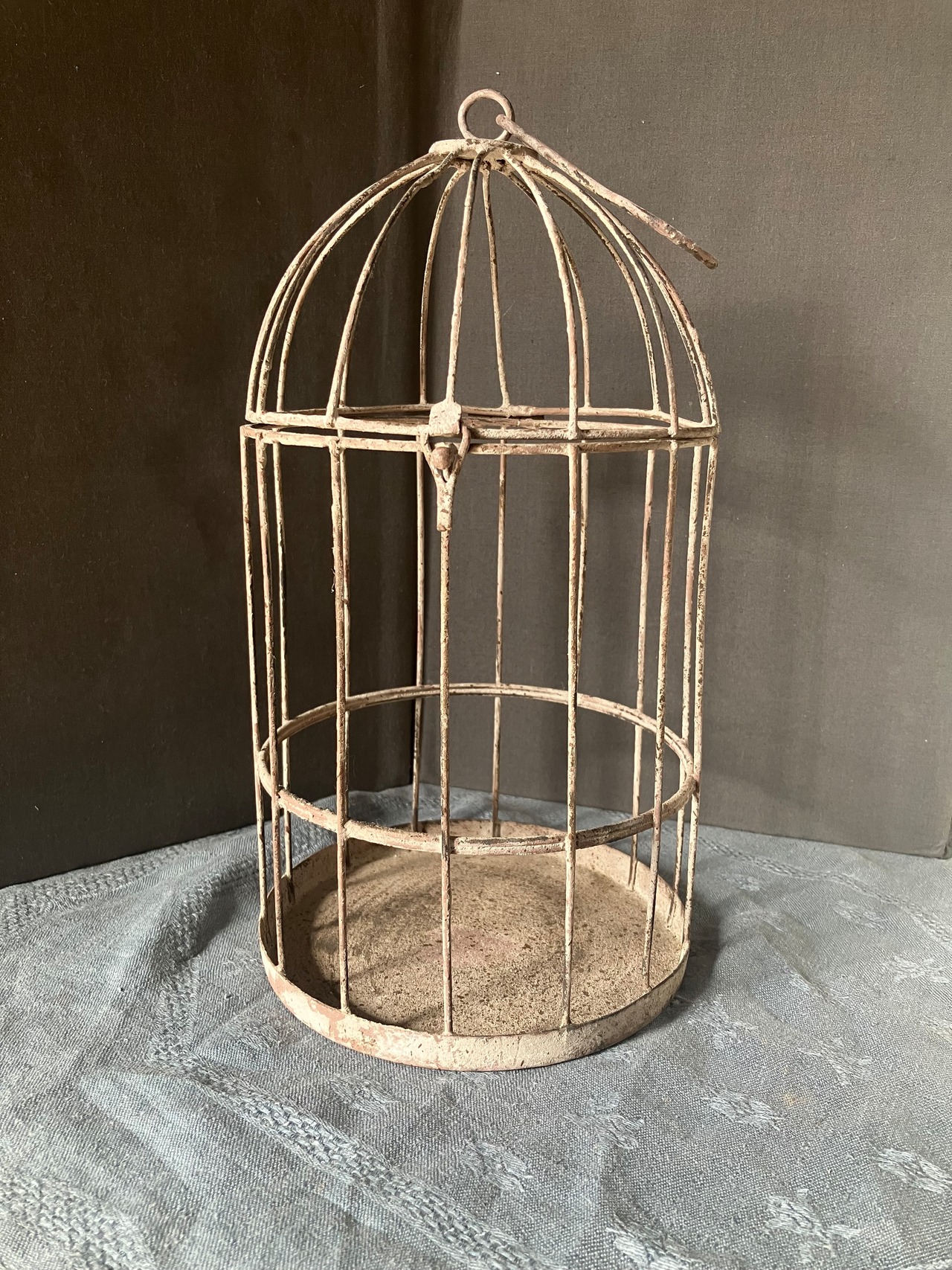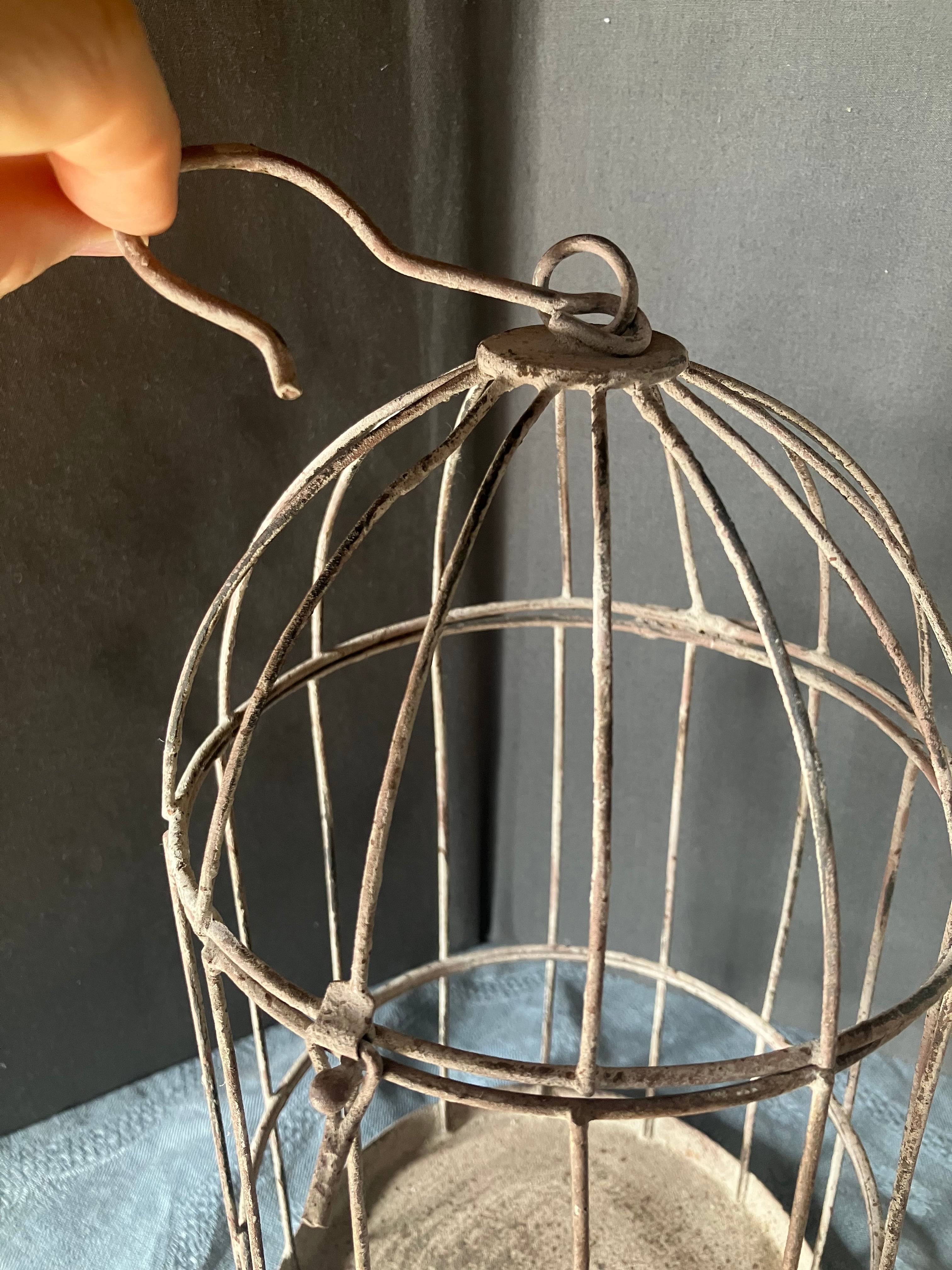 アイアン製 小振りなバードケージです。留めフックもしっかりしていますので、植物を飾って頂いたりレースを垂らして頂いても綺麗です。小振りかサイズは珍しいです。フランスビンテージ。