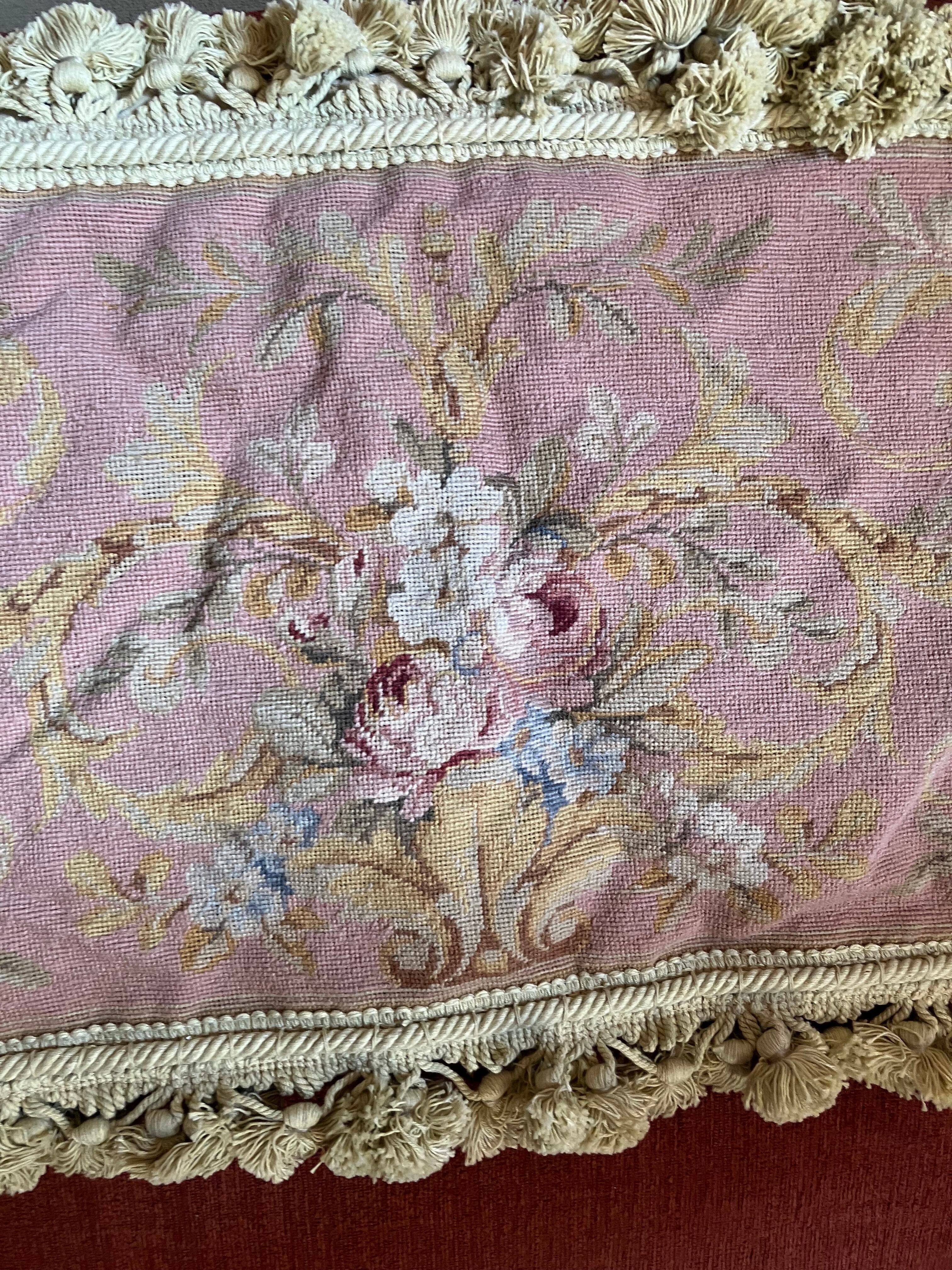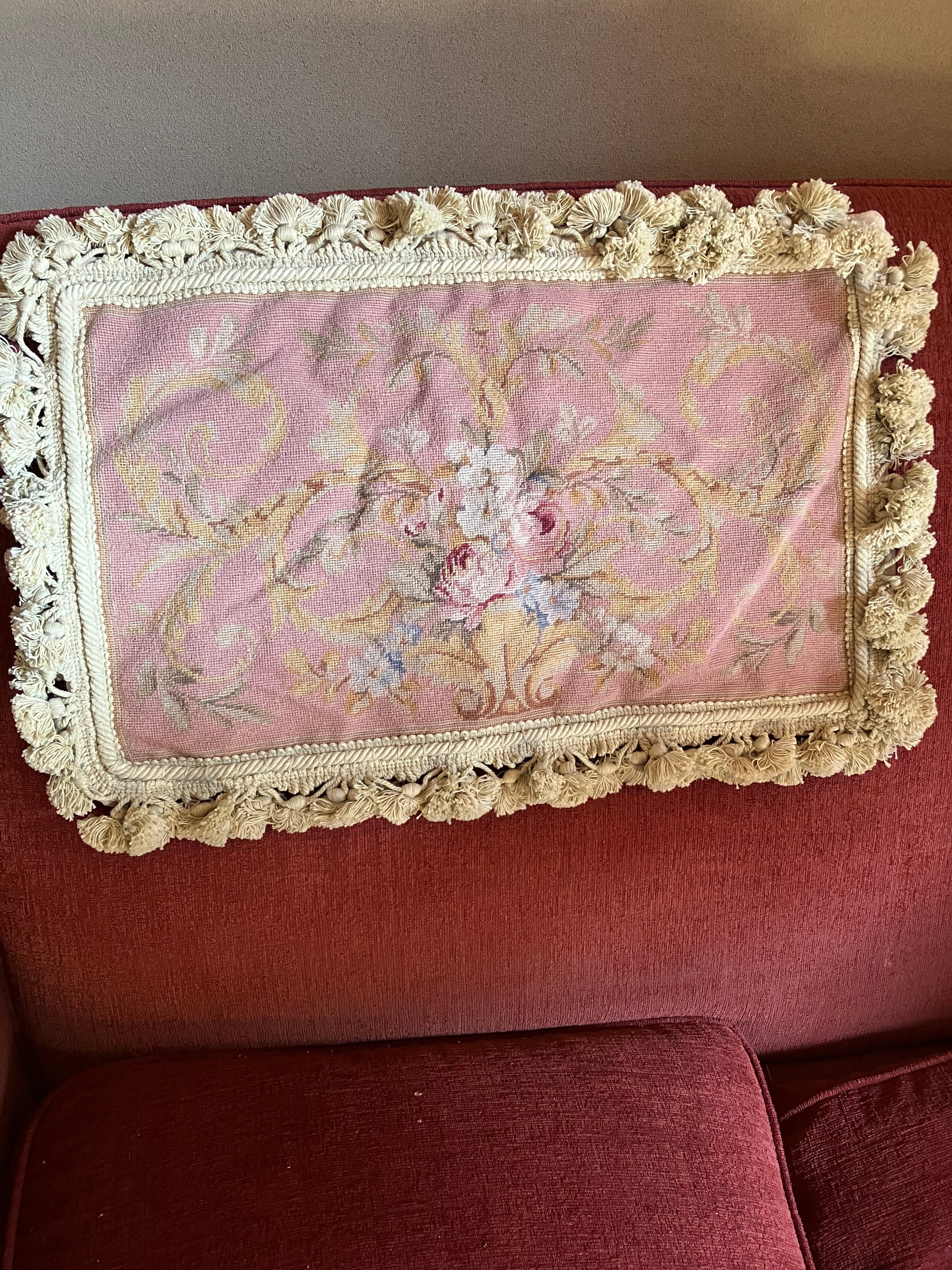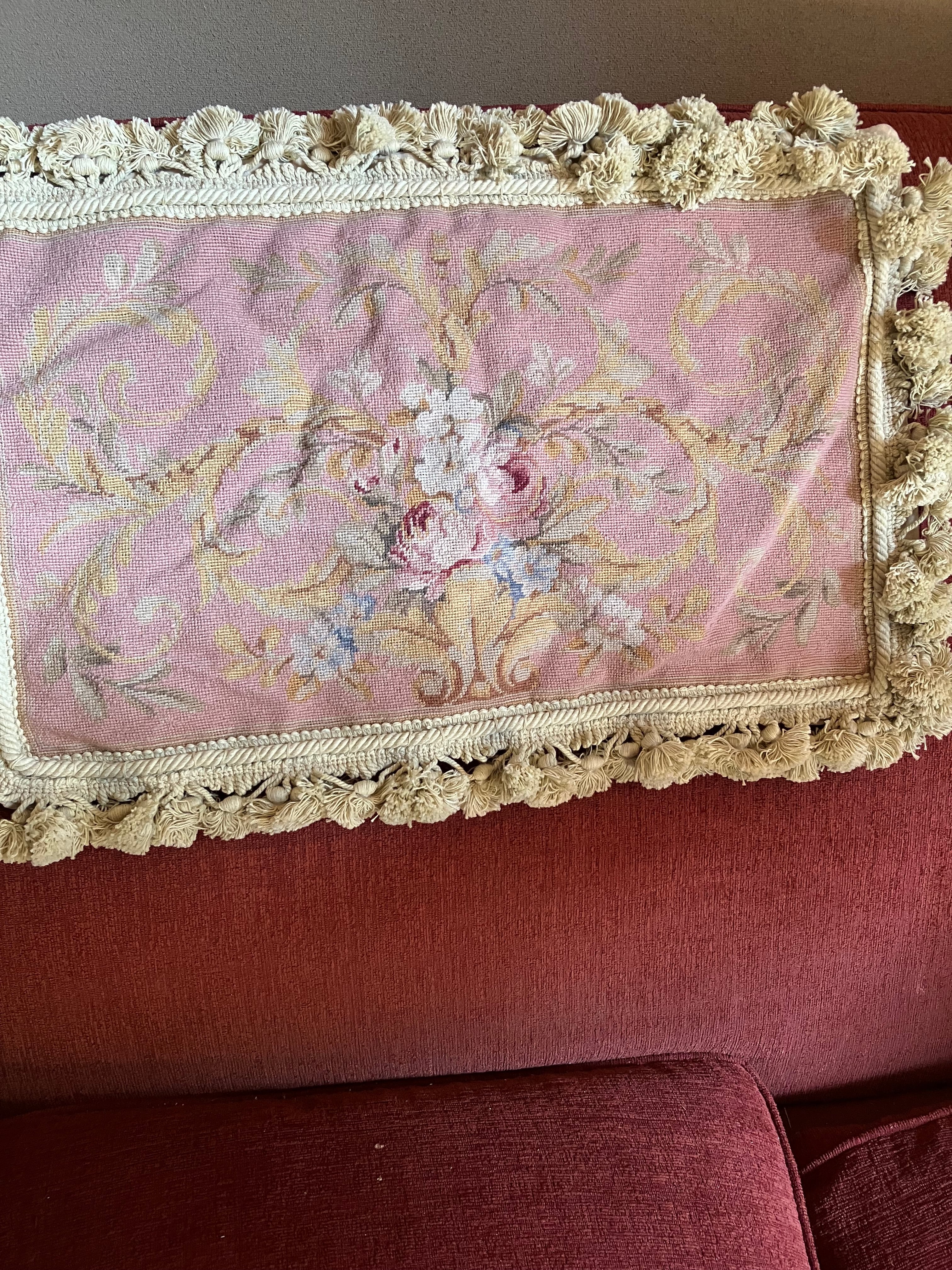 ・縦 39㎝ 横 60㎝ コブラン刺繍織りのクッションカバーです。コブラン織りの部分はアンティーク生地でそちらを活かしてクッションカバーにリメイクしたものです。