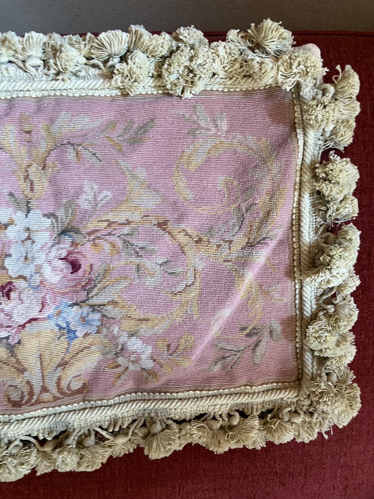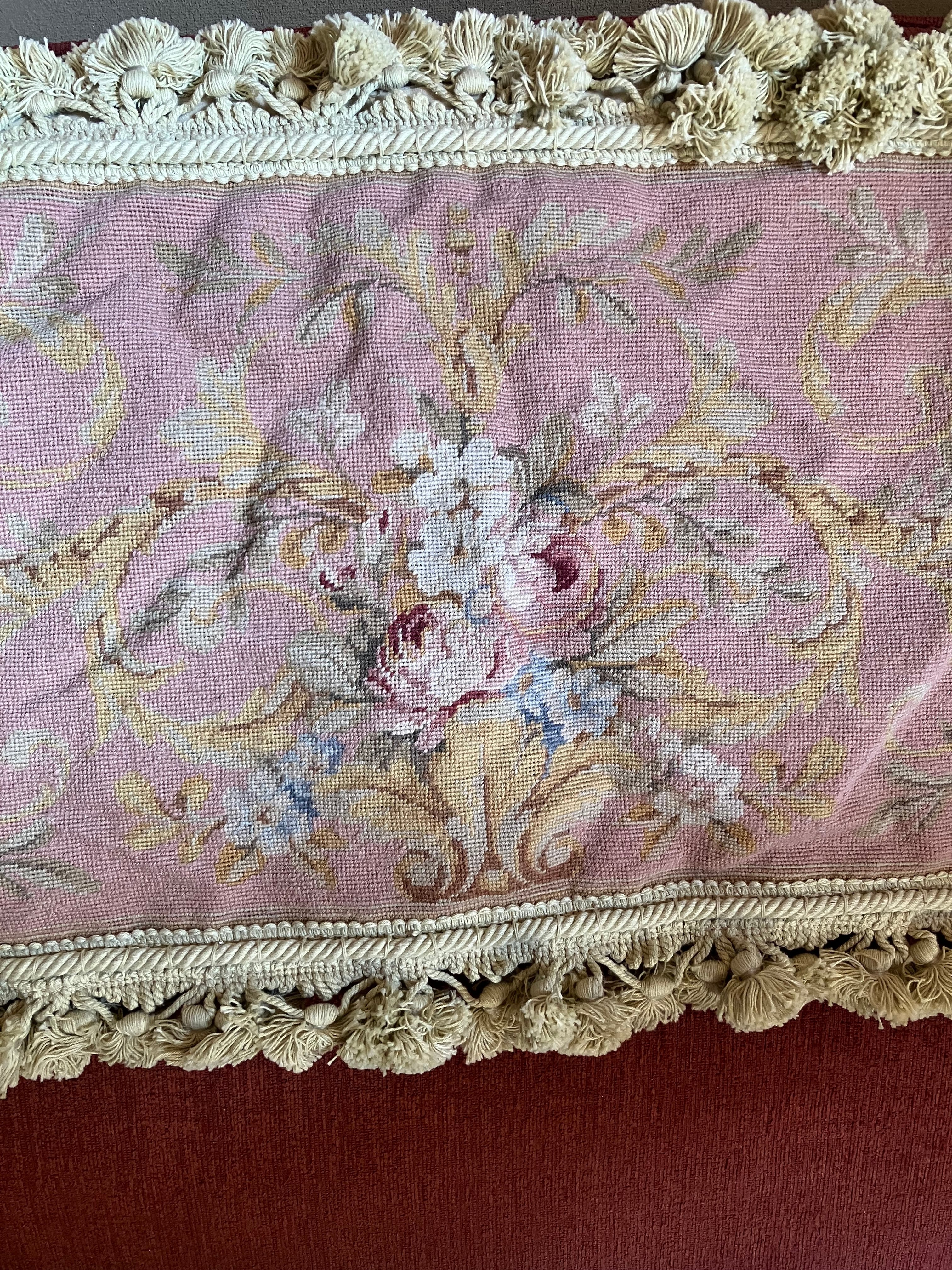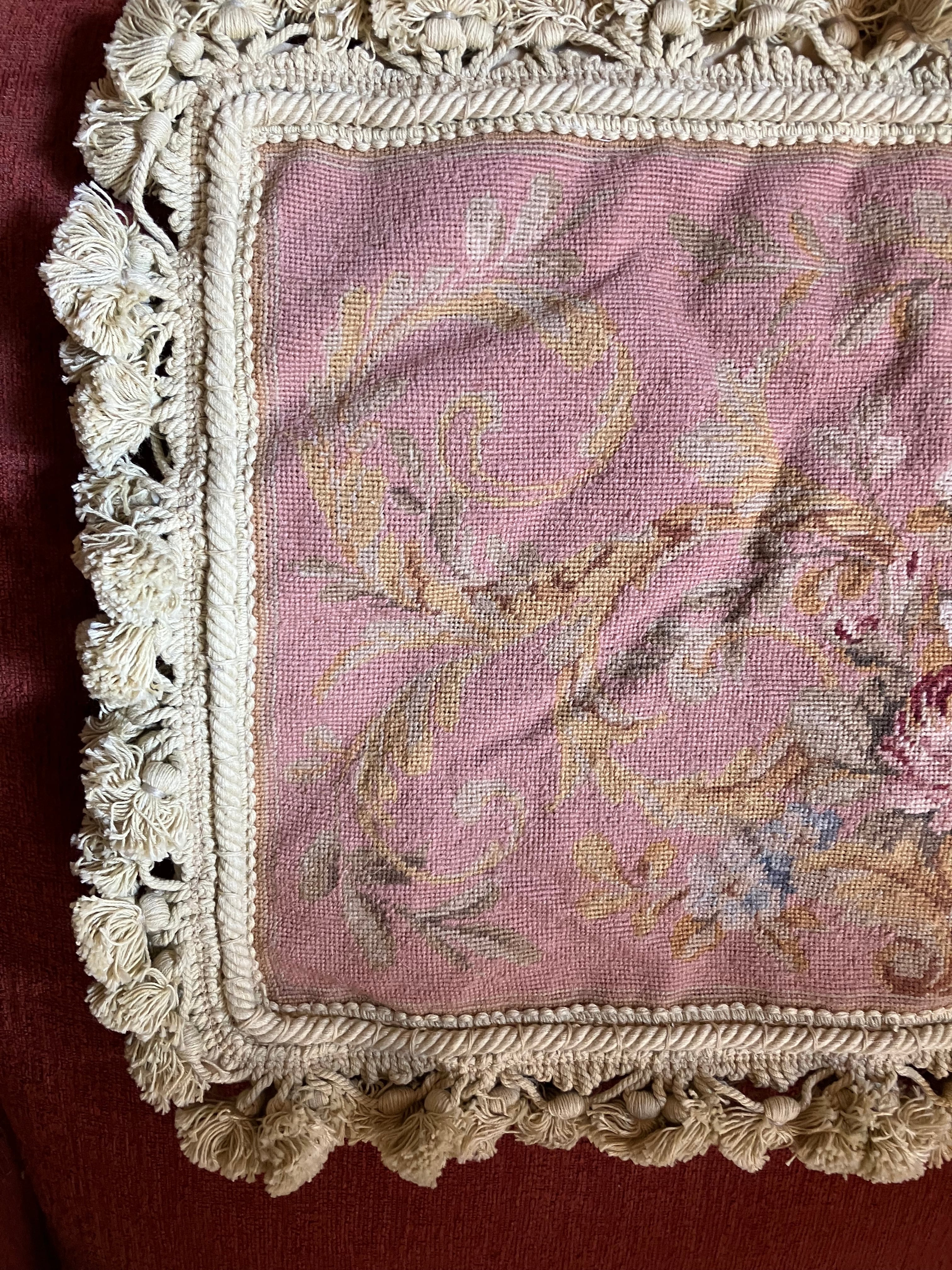 ・縦 39㎝ 横 60㎝ コブラン刺繍織りのクッションカバーです。コブラン織りの部分はアンティーク生地でそちらを活かしてクッションカバーにリメイクしたものです。