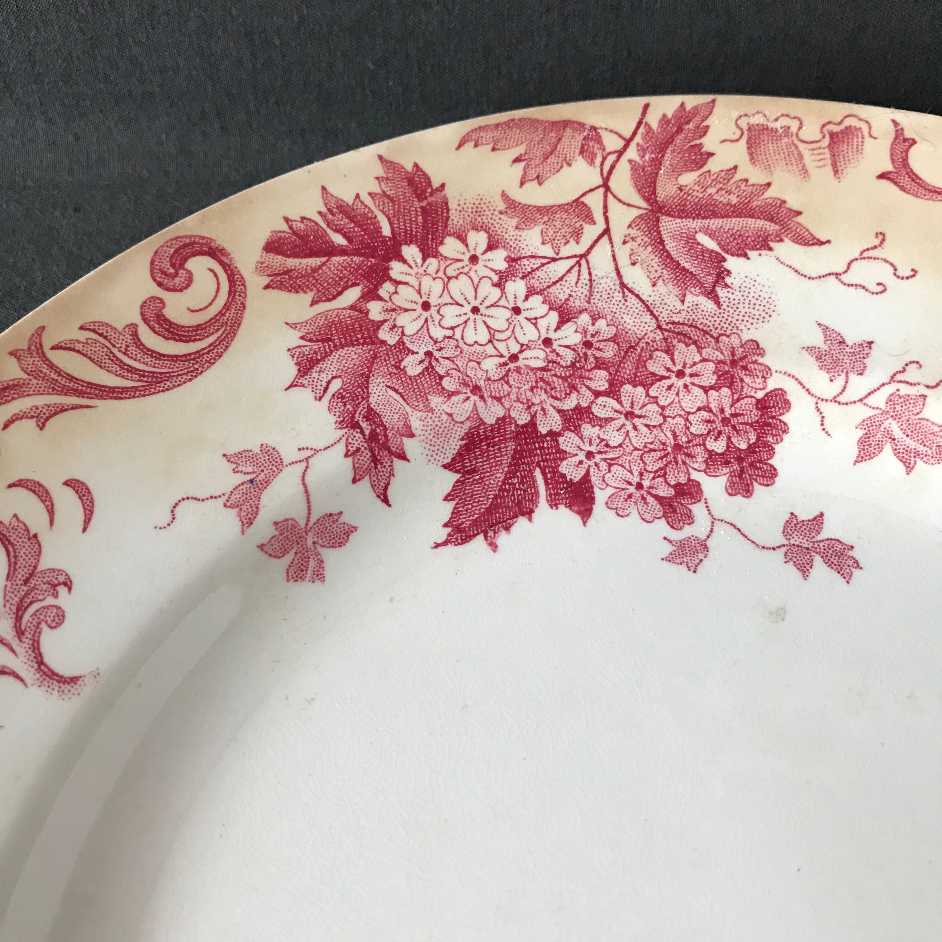 ・直径 23㎝ サンアマン BOULE DE NEIGE ブルードネージュ オオデマリのプレートです。クリームがかった地に赤の絵付けです。縁周りに茶染みがあります。ヒビカケはありません。フランスアンティーク。