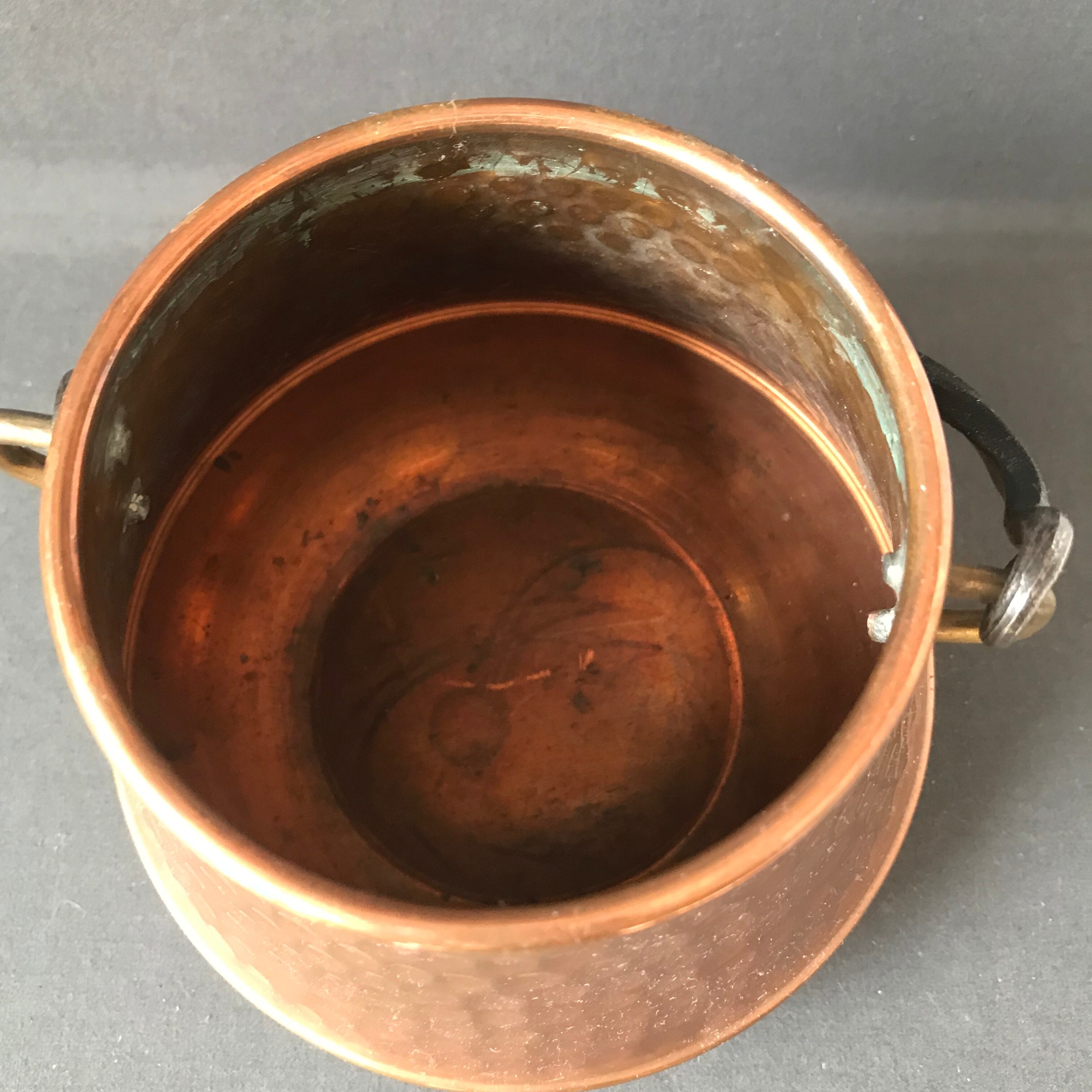 ・口直径 10㎝ 底直径 14㎝ 高さ 11㎝ 真鍮製のコークスBOXです。叩いて装飾をつけてあります。昔は炭を入れていましたが、今はジャルディニエールとしてお使い頂くのはいかがでしょうか。ヒビカケ無く良い状態です。フランスアンティーク。