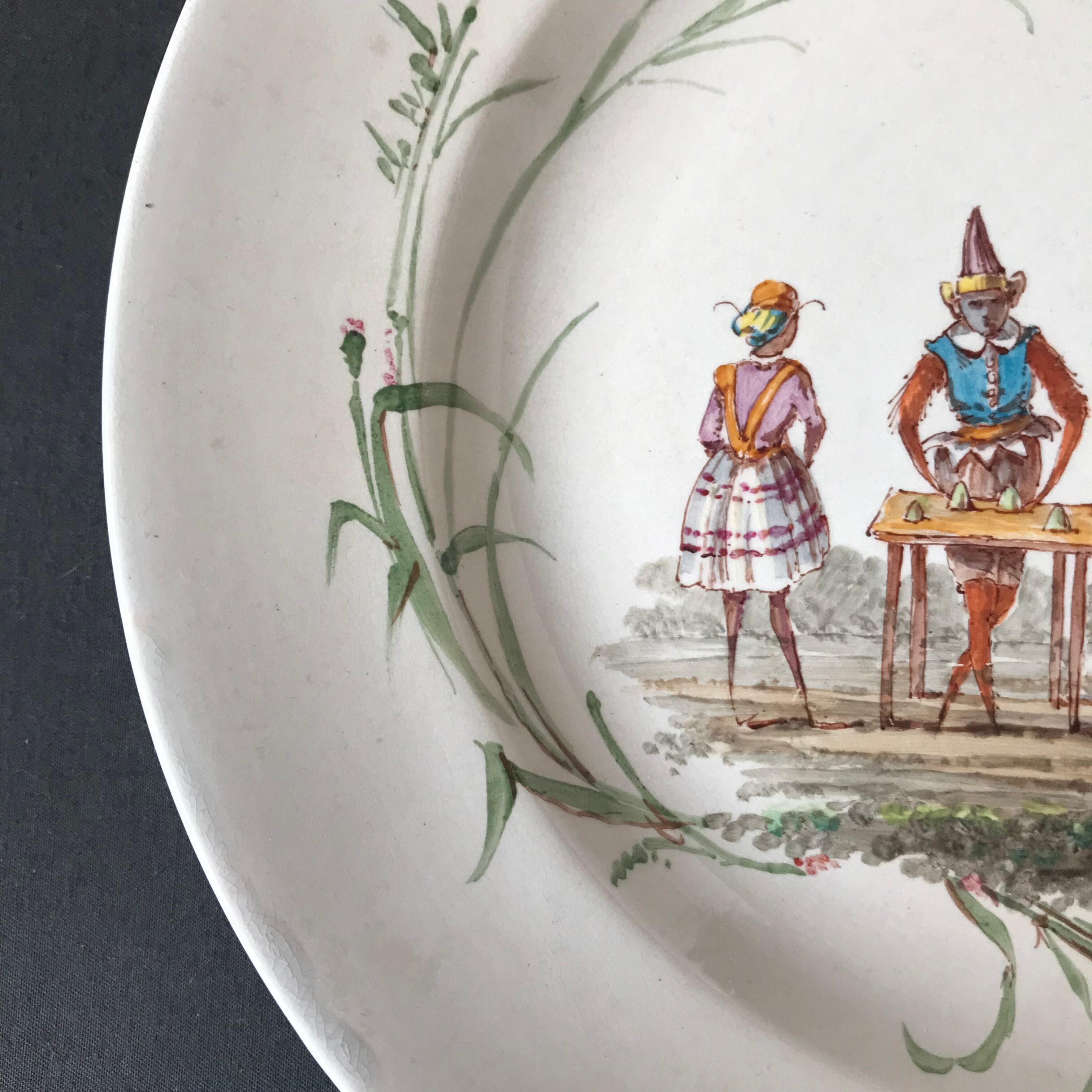 ・直径 24.5㎝ BOCHとLUNNEBEのコラボのハンドペイントの森で昆虫がゲームをするプレートです。芸術的なタッチの手描きのプレートは大変レアです。ヒビカケ無く良い状態です。フランスアンティーク。ら