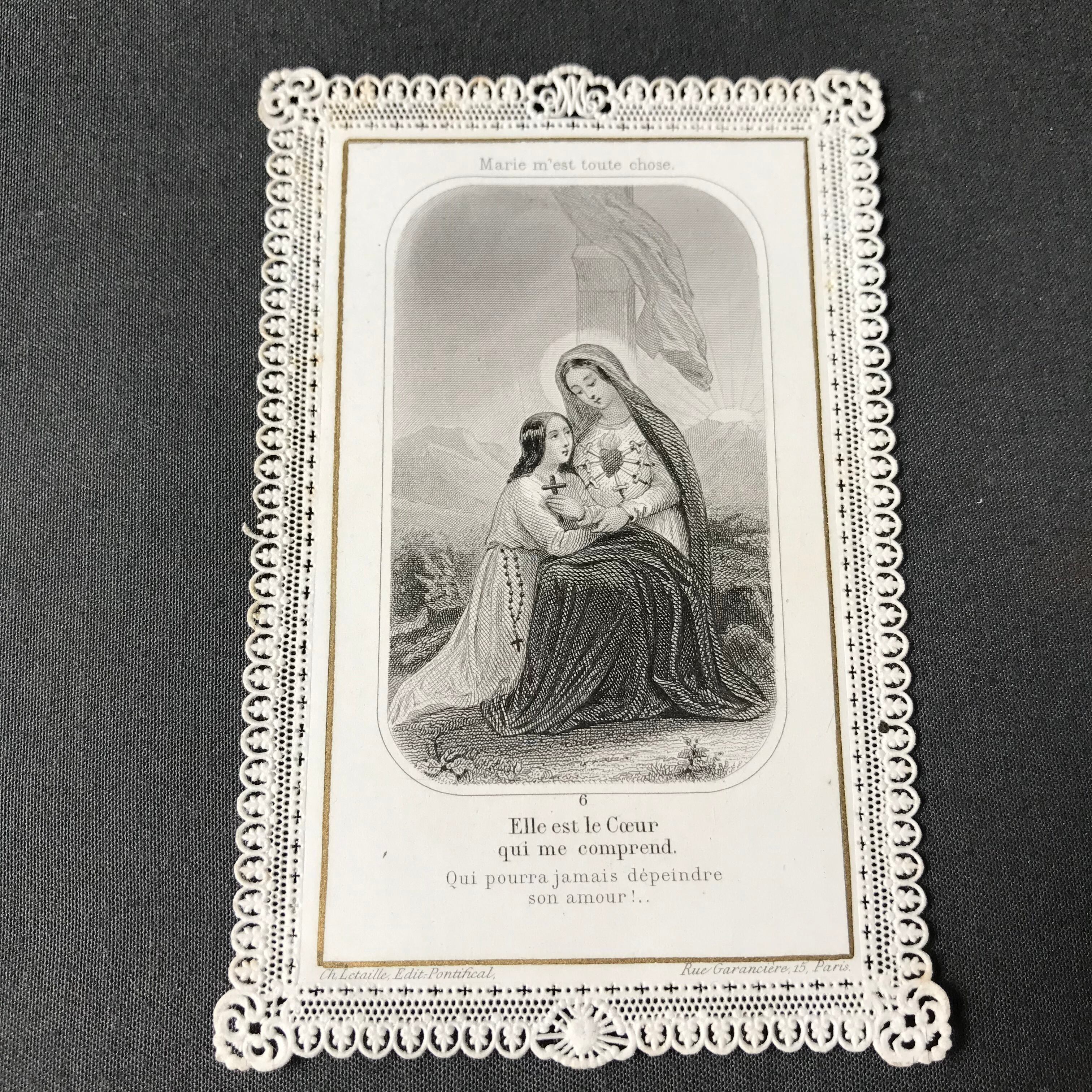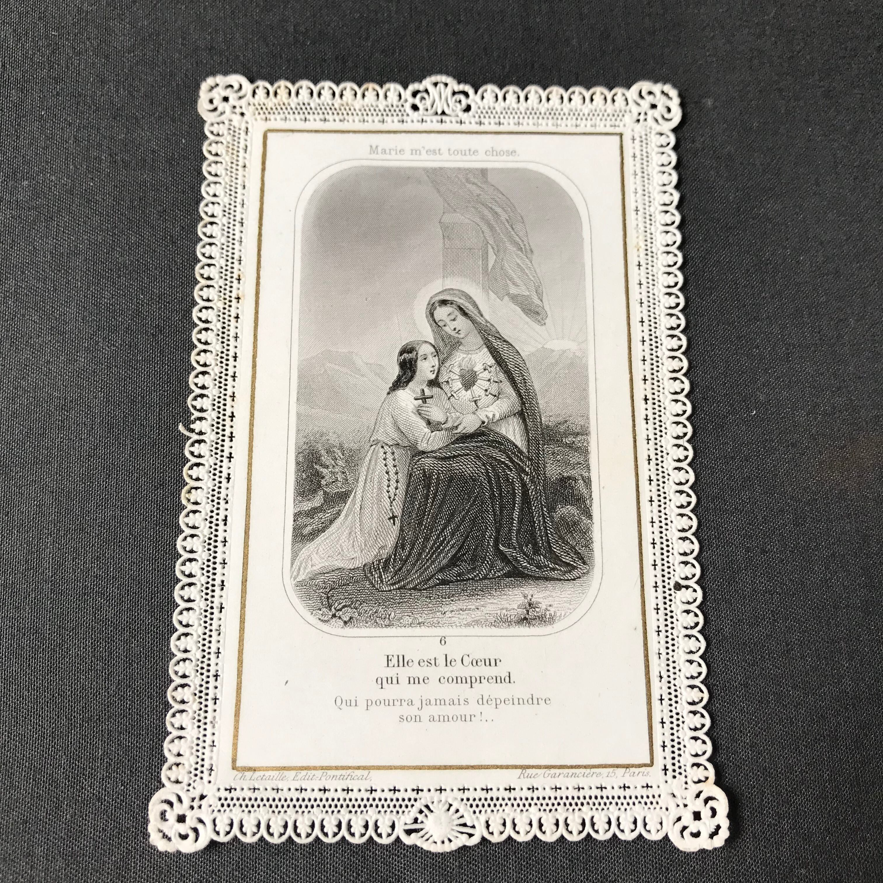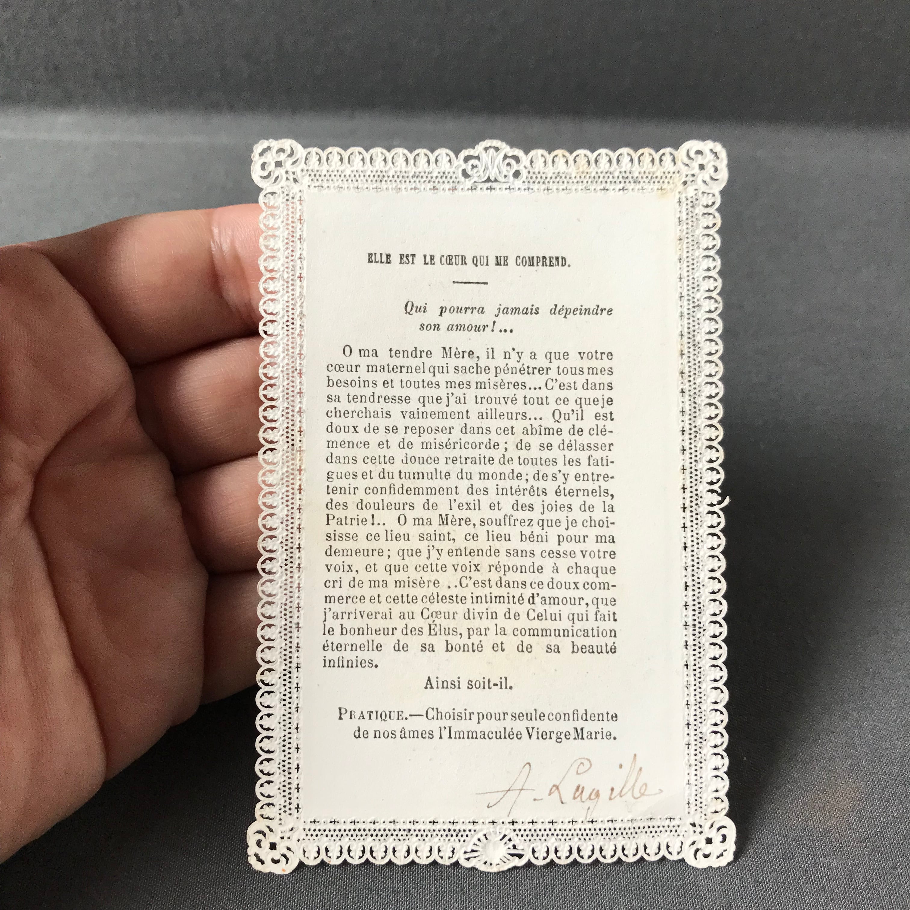 ・縦 10.5㎝ 横 7㎝ 繊細すぎるレースにトップはMの飾り切りが施された素晴らしいカニヴェです。状態もミントコンディションです。フランスアンティーク。