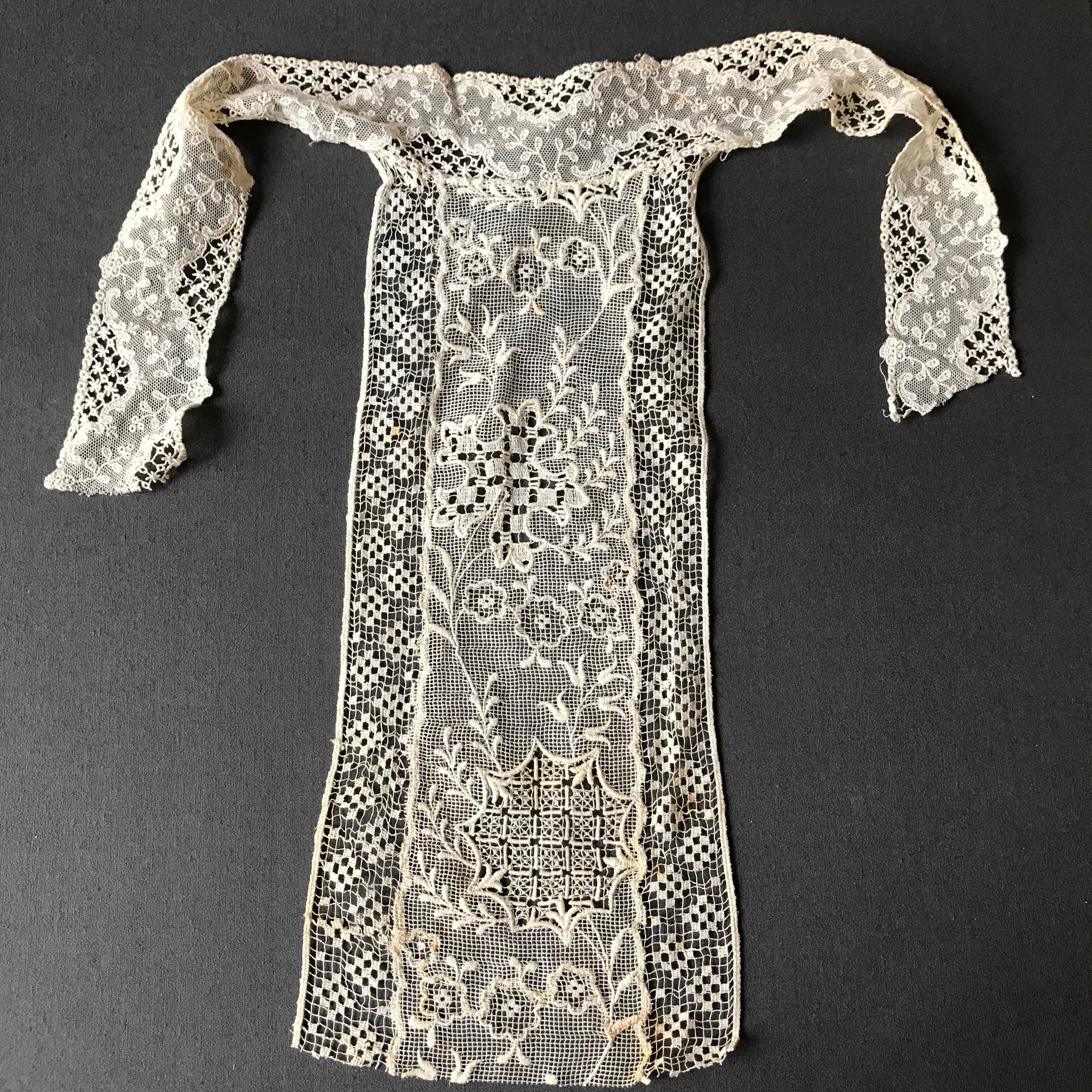 ・横 50㎝ 縦 30㎝ ドレスの前襟と首元の襟のプリンセスレースです。ワンピースに付けたり、トルソーに飾って頂いても綺麗です。フランスアンティーク。
