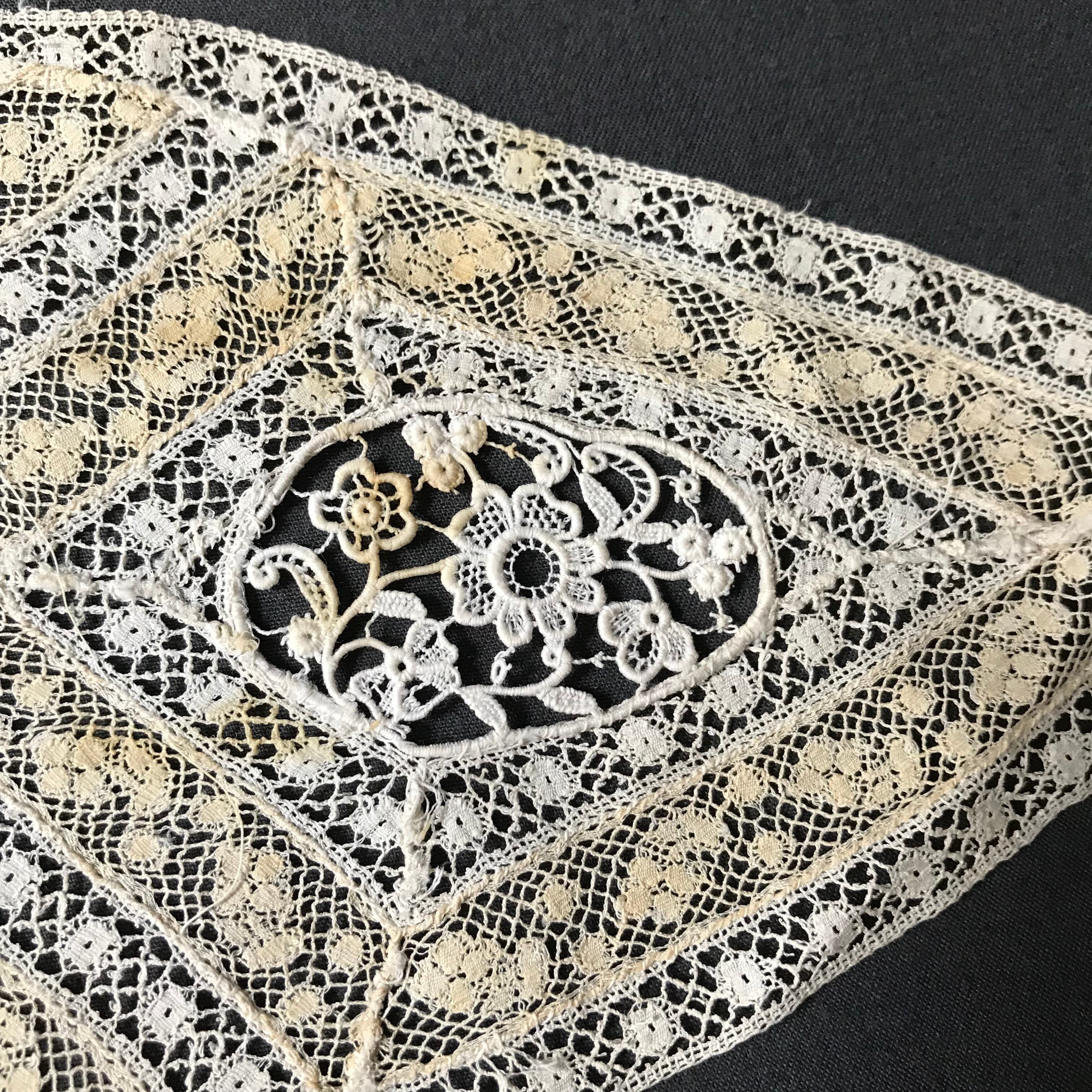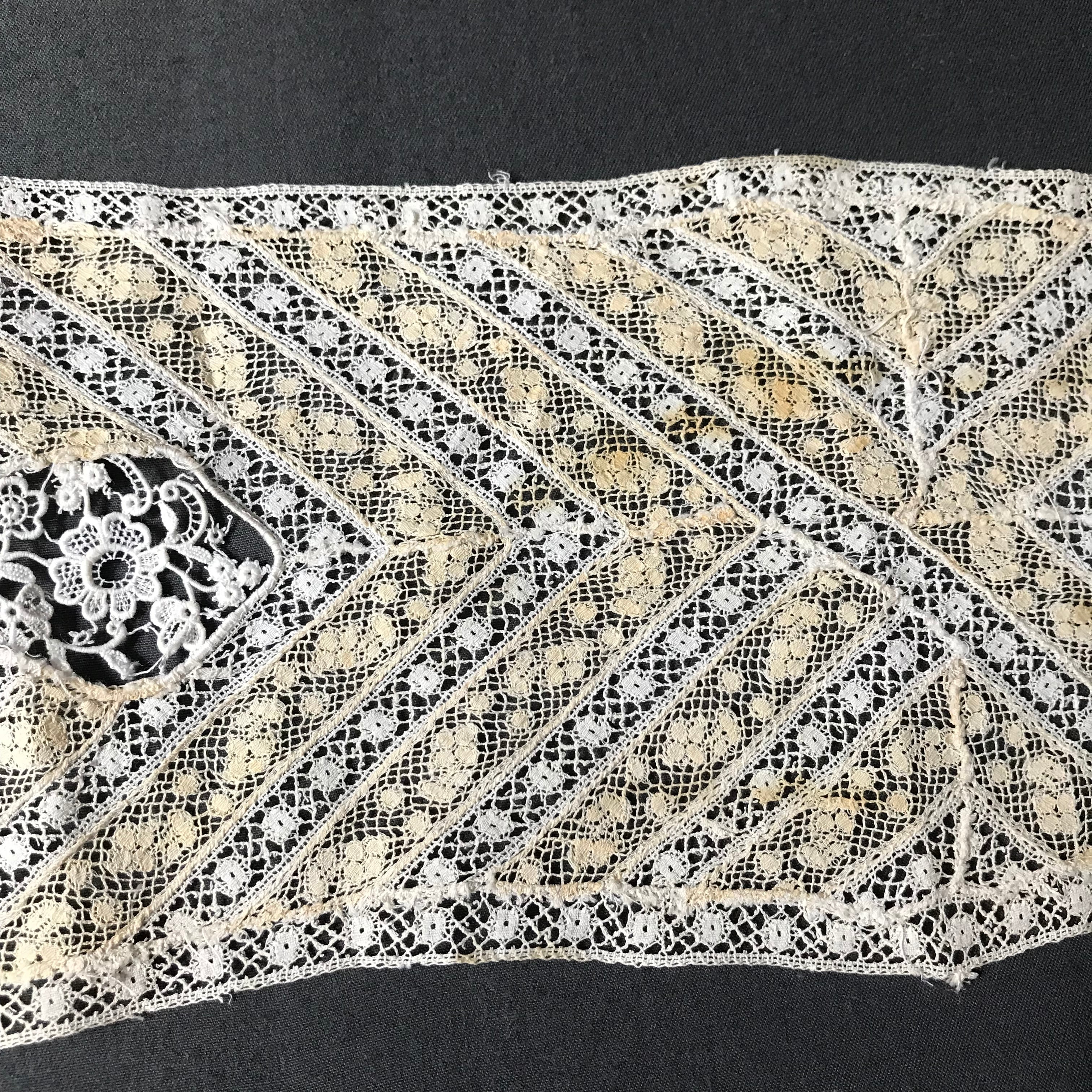 ・縦 13㎝ 横 63㎝ 珍しい、ノルマンディーレースのセンターレースです。細長いエレガントなデザインです。