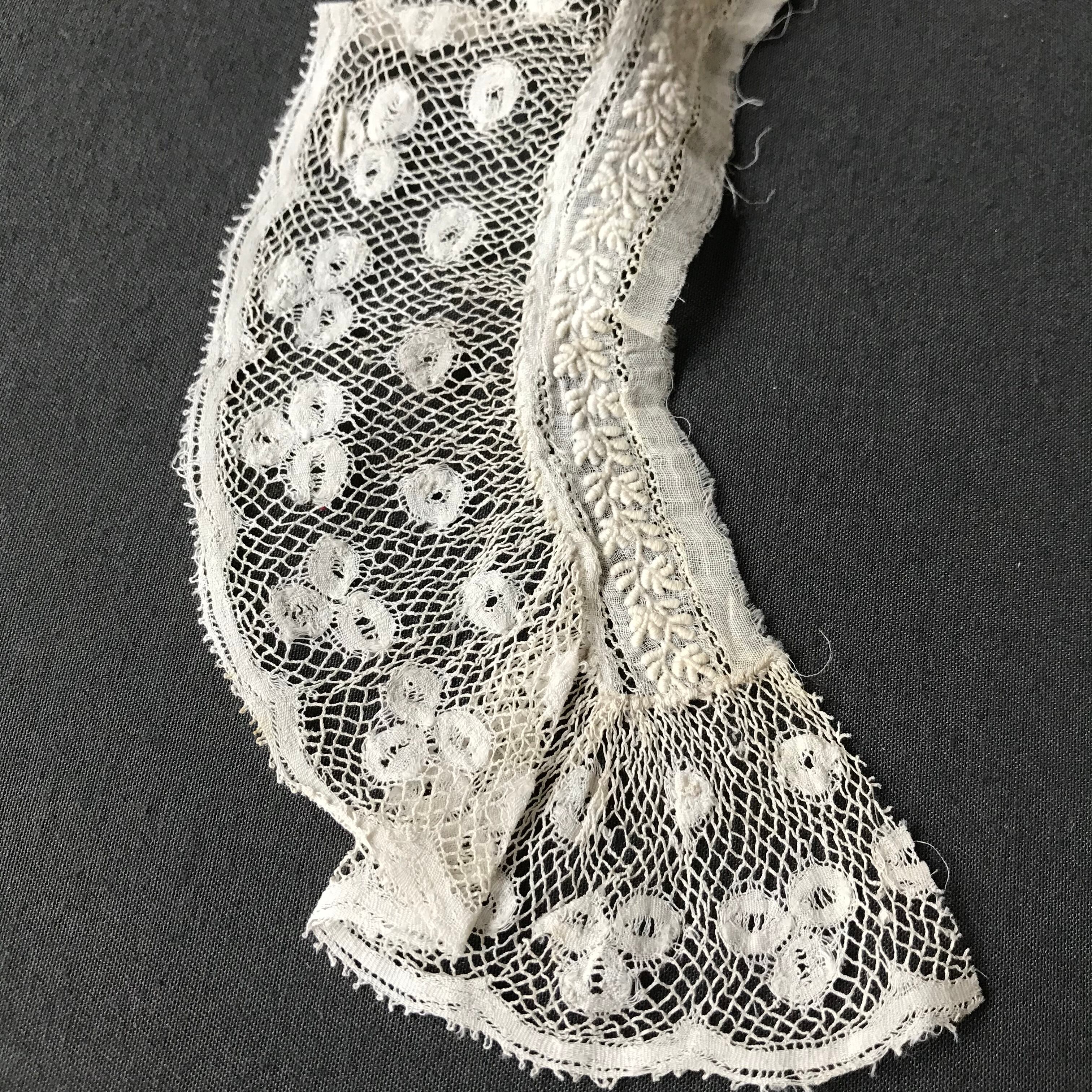 ・横 6㎝ 縦 42㎝ チュールレースに刺繍が入り、更にリーフの細やかな刺繍が入った可愛らしいレース襟です。フランスビンテージ。