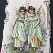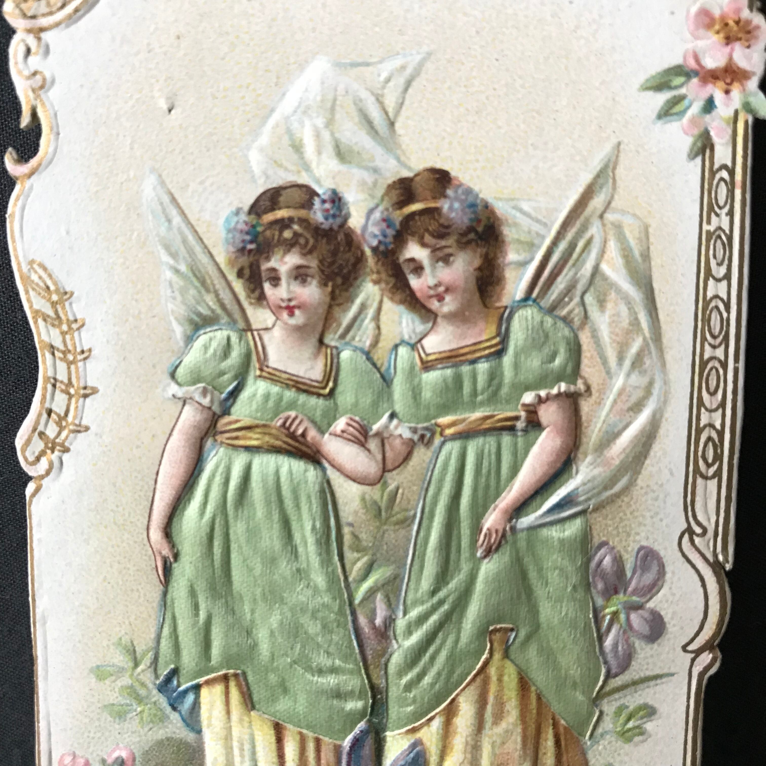 ・縦 13㎝ 横 7㎝ スミレのエンジェルのチョコレートカードです。エンジェルの立体的なクロモスはとても綺麗です。ローズやスミレもエンボス加工されとても綺麗です。フランスビンテージ。