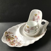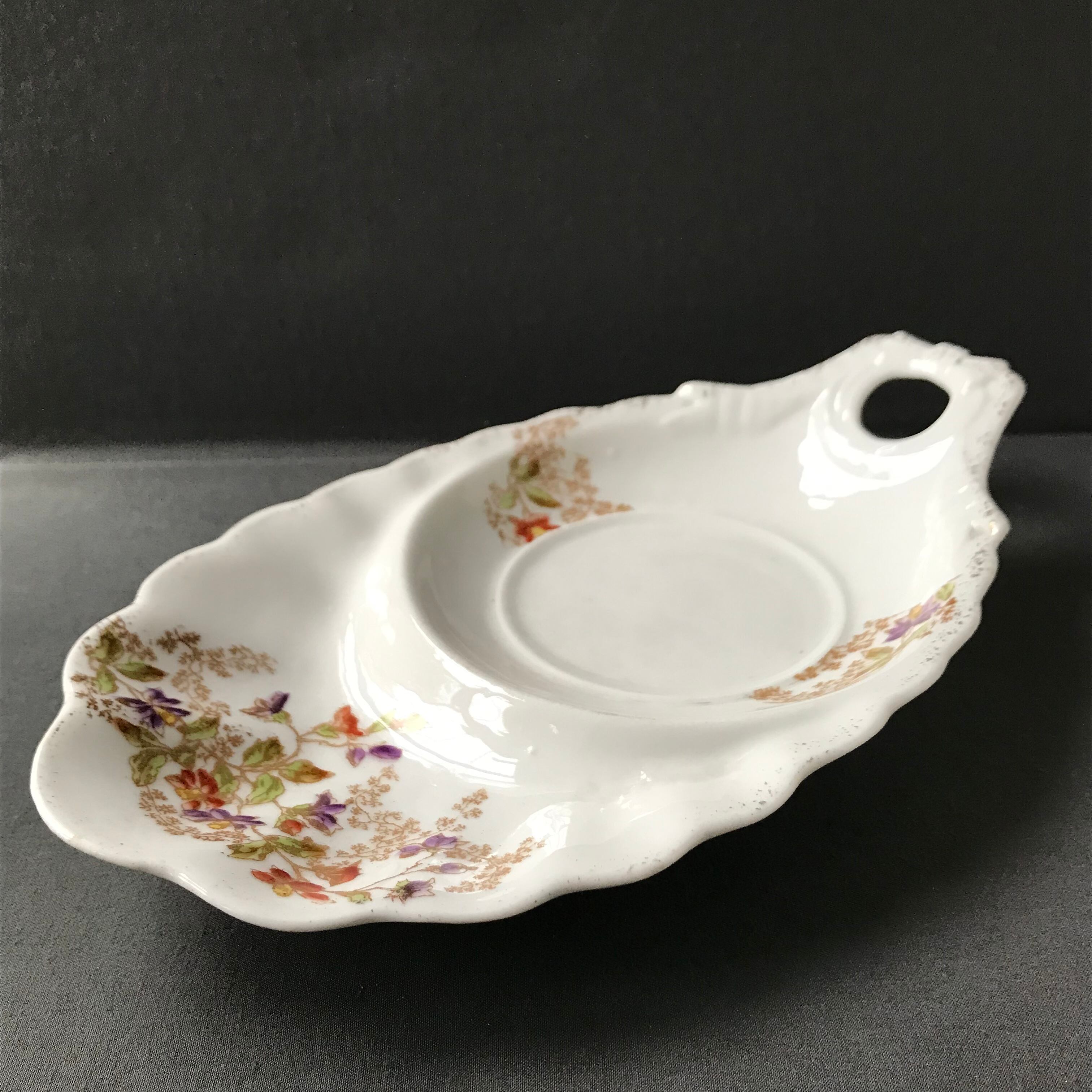 ・縦 15㎝ 横 25 ㎝ 繊細なお花の柄が綺麗なスナックトレイです。丸い部分にお手持ちのカップを合わせて頂いたり、前出のカップを合わせても