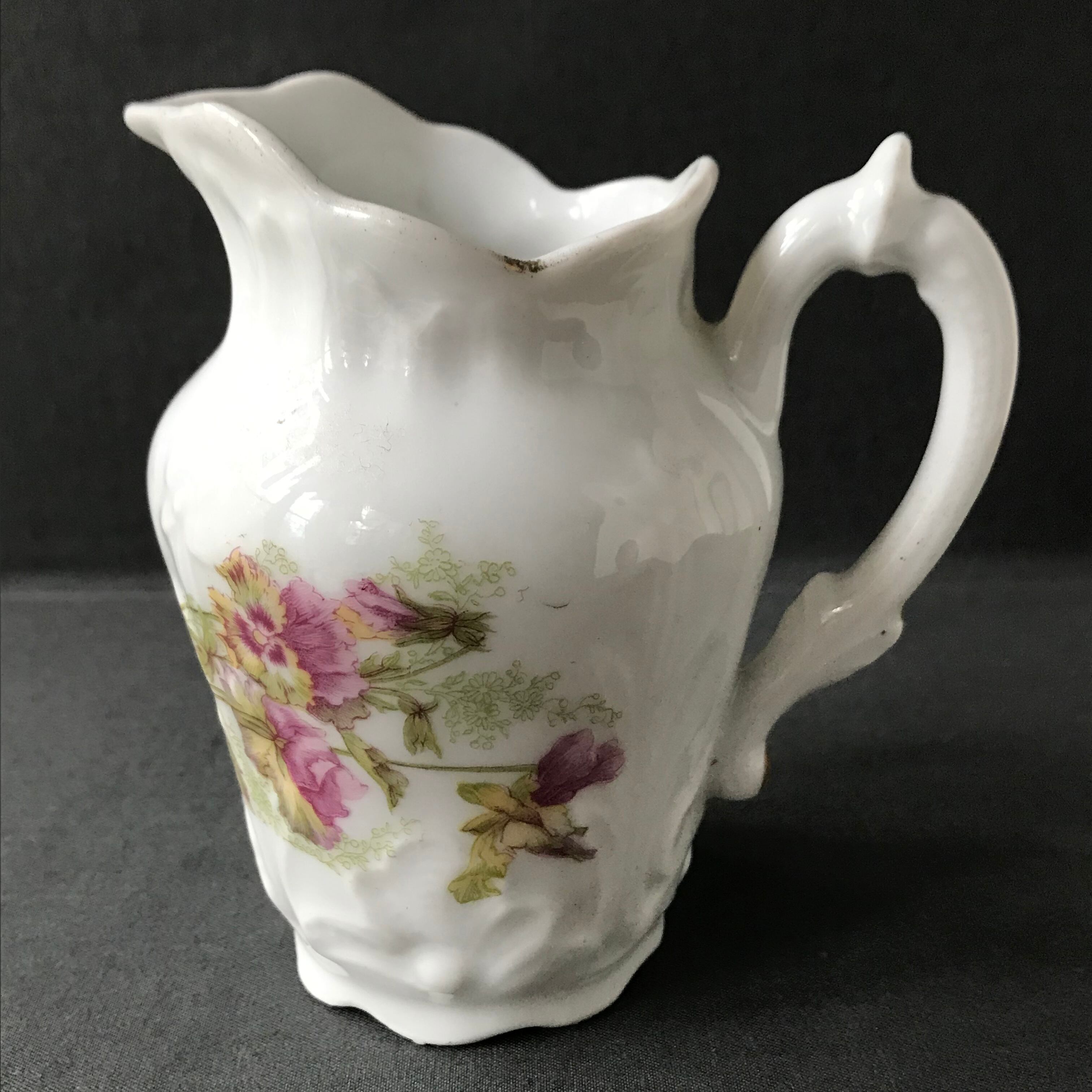 ・口 縦 6㎝ 横 7㎝ 高さ 11.5㎝ パンセとレリーフが素晴らしいクレミエです。パンセはもちろんですが、地模様のレリーフが素晴らしいです。金彩のスレはありますがヒビカケ無く良い状態です。フランスビンテージ。