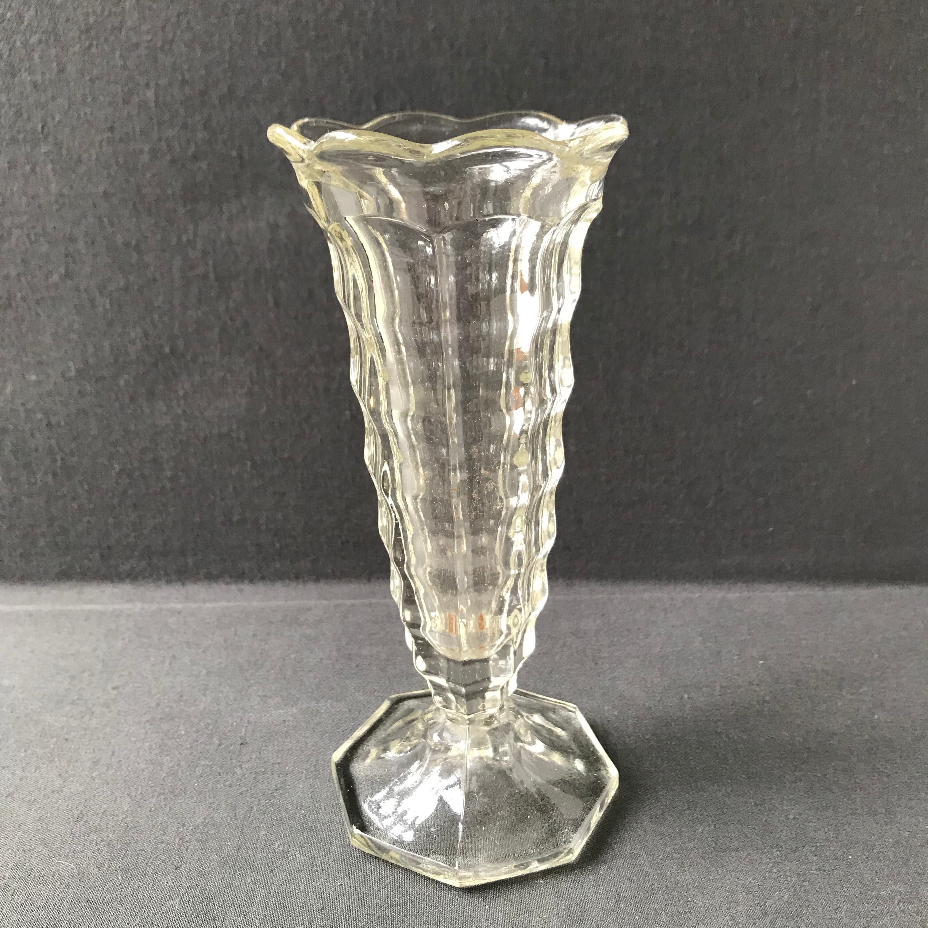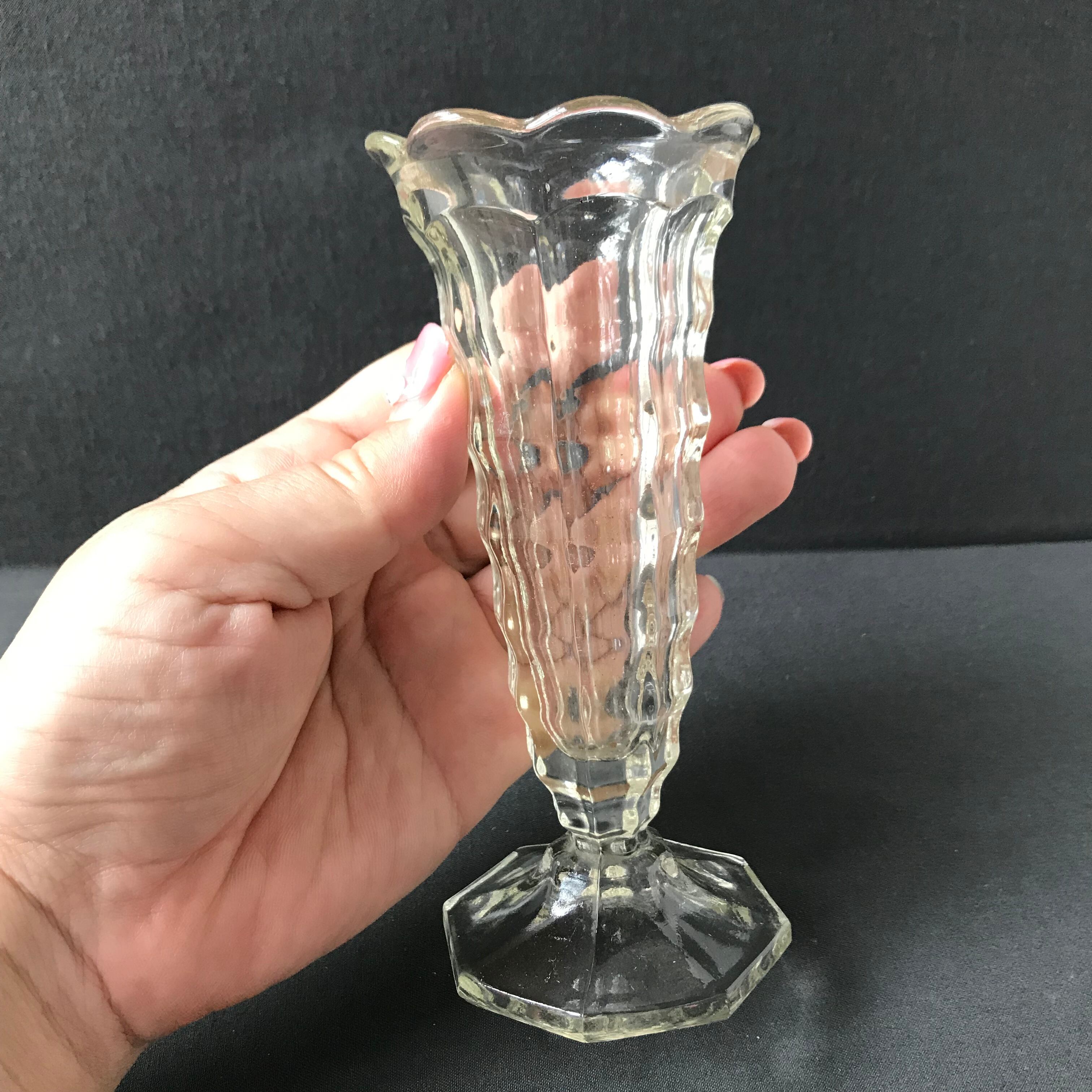 ・直径 6.5㎝ 高さ 15㎝ とろーりとしたガラスが趣きがあるベイスです。少し背の高いお花を飾ると映えそうです。ヒビカケ無く良い状態です。フランスビンテージ。