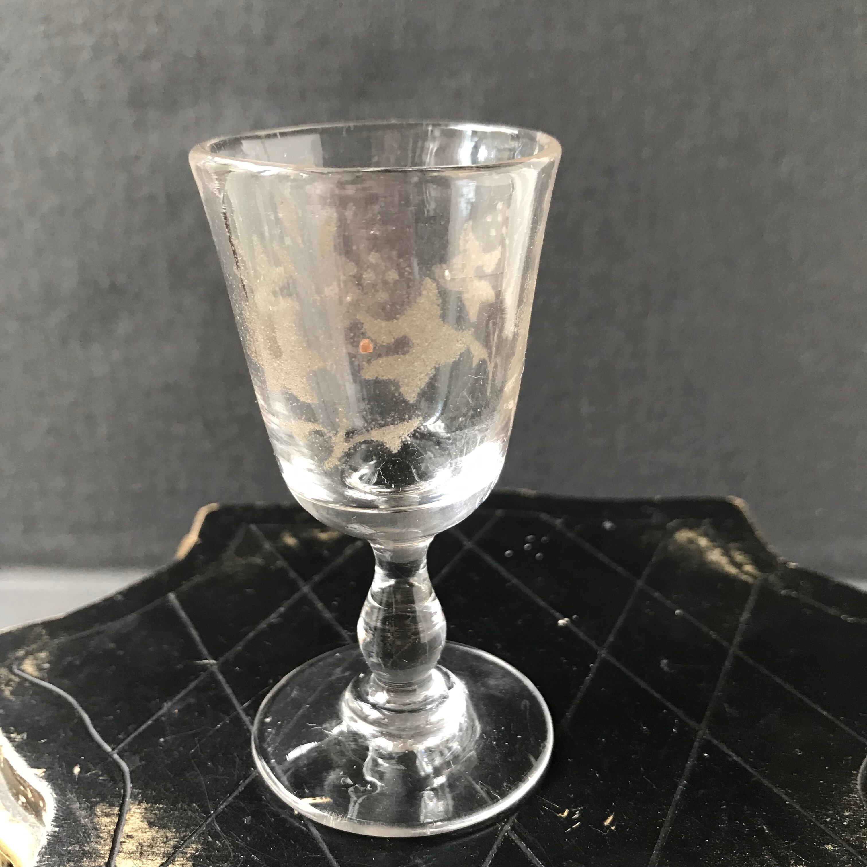 ・直径 3.7㎝ 高さ 8㎝ 百合の花のエッチングが綺麗なミニグラスです。ヒビカケ無く良い状態です。小さなグラスを何個か並べてディスプレイすると可愛らしいですね。フランスビンテージ。