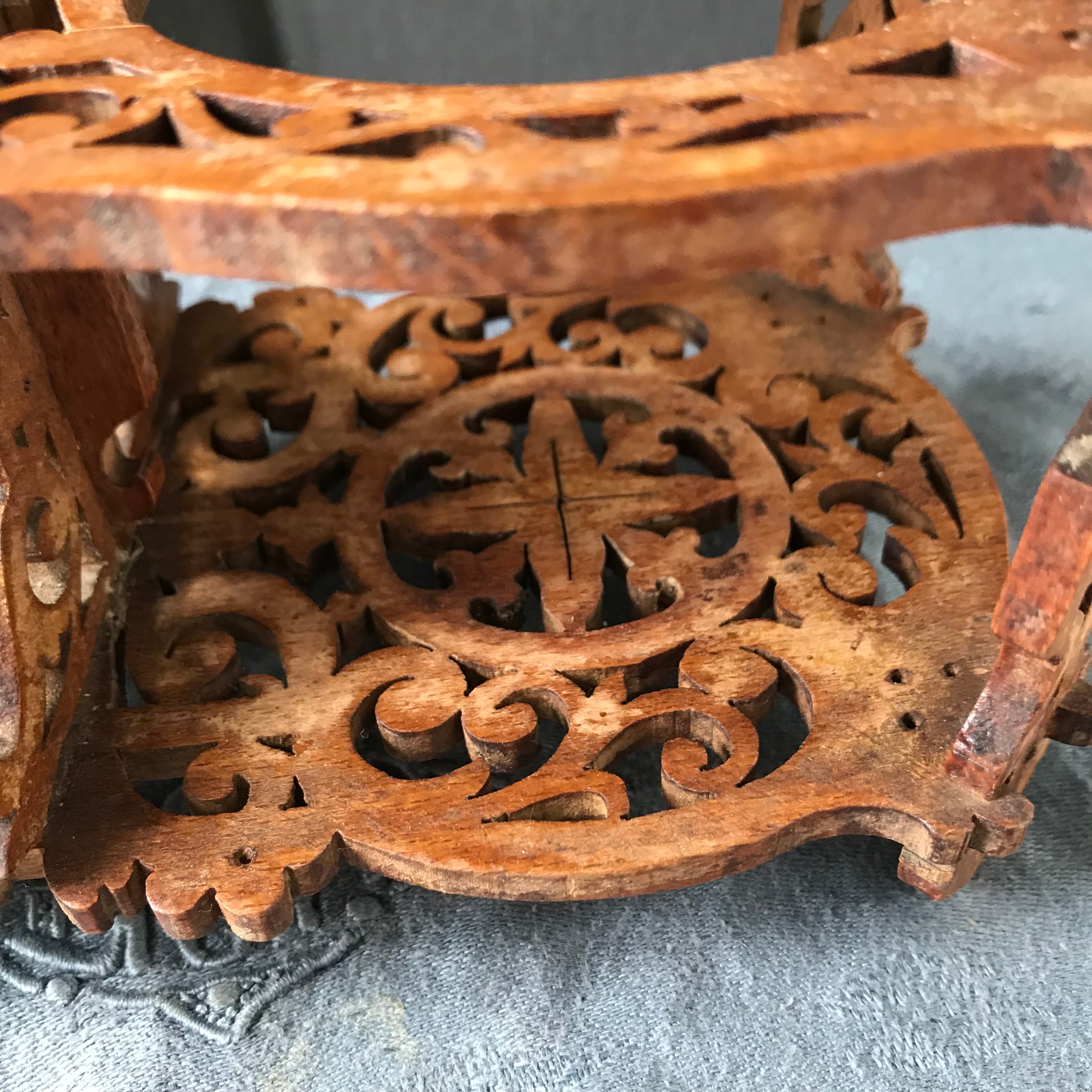・縦 11㎝ 横 23㎝ 高さ 24.5㎝ 透し彫りが素晴らしい木製のピネガーラックです。ガラス瓶は付いていません。ガラスコップをいれてお花を飾って頂いても綺麗ですし、ブラシなどをたてて頂いたり、絵筆を置いて頂いてもエレガントです。フランスアンティーク。
