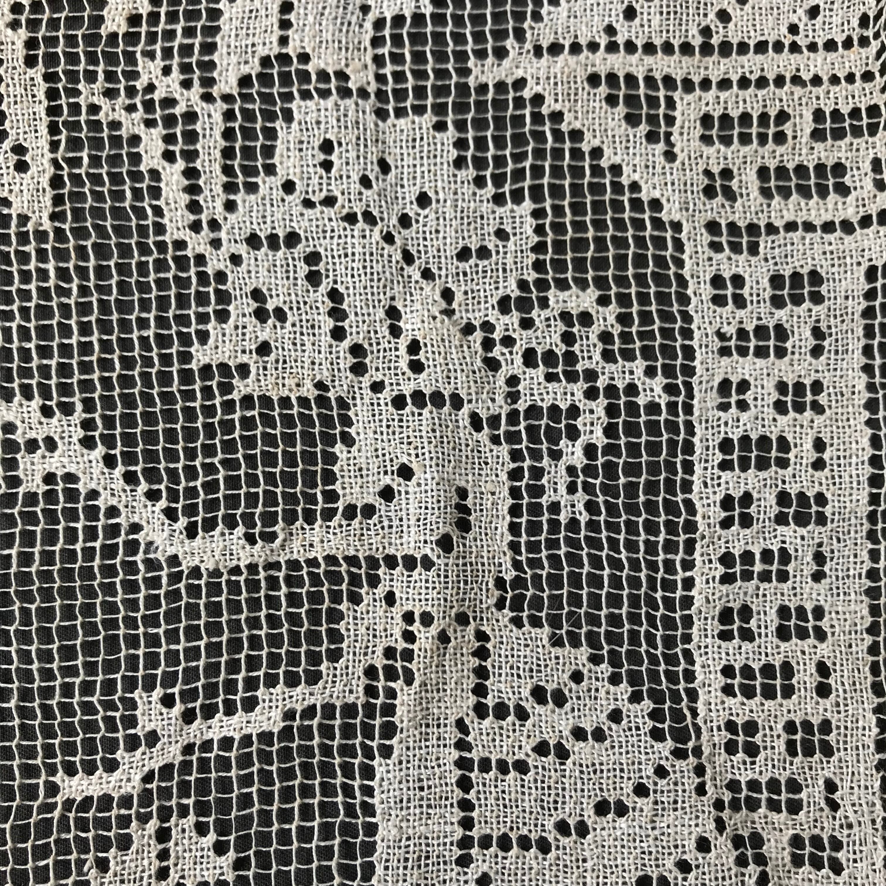 ・縦 25㎝ 横 24㎝ 大変珍しいイソップ寓話のアリとキリギリスのフィレレースです。ブラックをバッグに額装して頂くと綺麗です。フランスアンティーク。