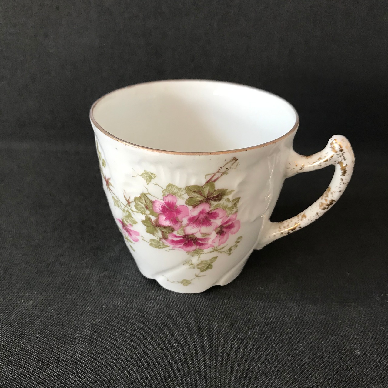 ・直径 6.5㎝ 高さ 6㎝ ピンクの撫子とエンボスが入った可愛らしい薄張りのカップです。ヒビカケ無く良い状態です。ソーサーはありません。3個セットのお値段です。フランスビンテージ。
