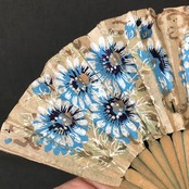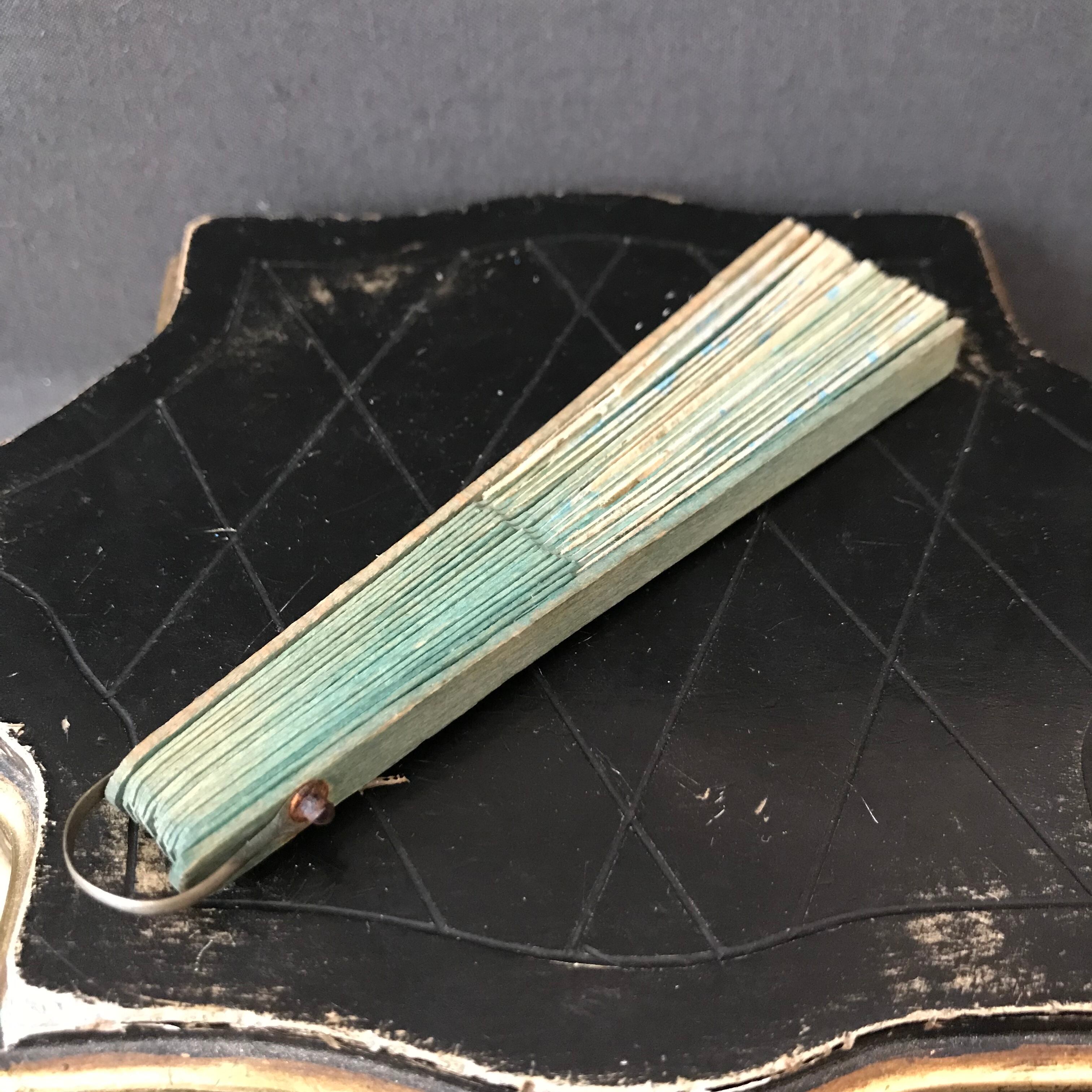 ・広げた時 横 19㎝ 縦 10.5㎝ ペーパーのブルーとホワイトのマーガレットが一面に入った可愛いらしいドールエバンタイユです。所々に小さな破れがありますがらそれも景色になっております。フランスアンティーク。