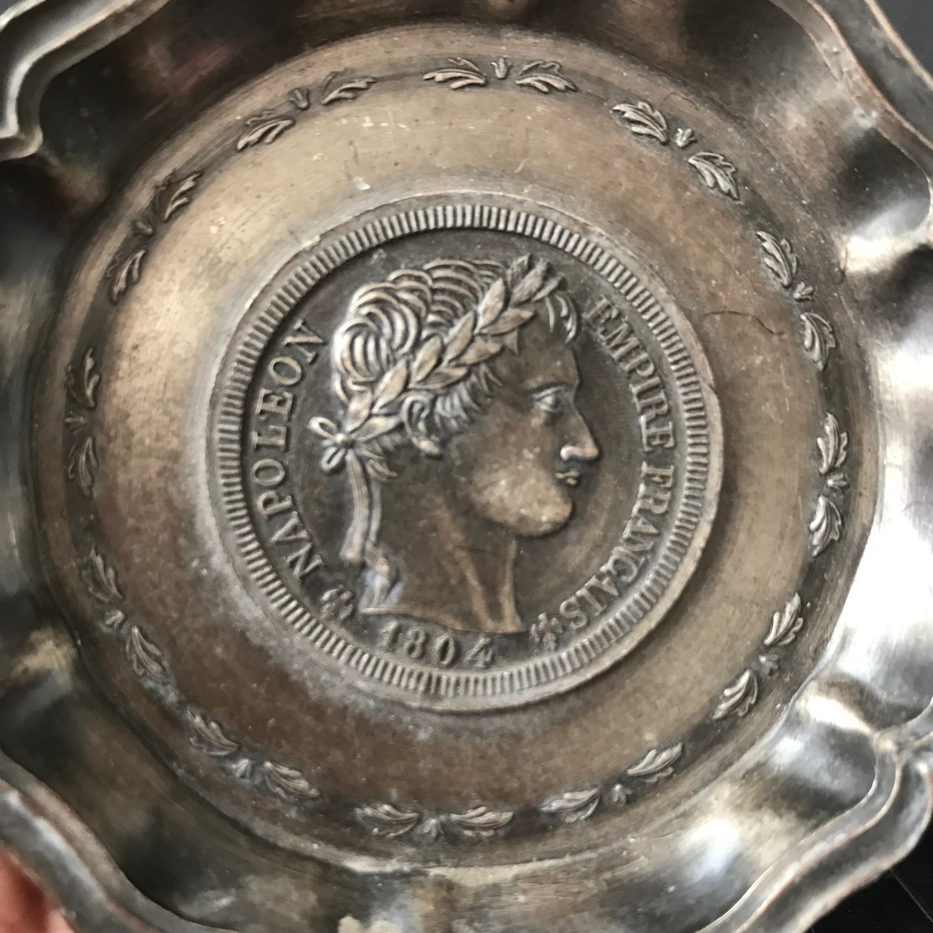 ・直径 8.8㎝ エタンの花リム のアクセサリートレイです。ナポレオンの横顔のエンボスが凛々しいです。フランスアンティーク。