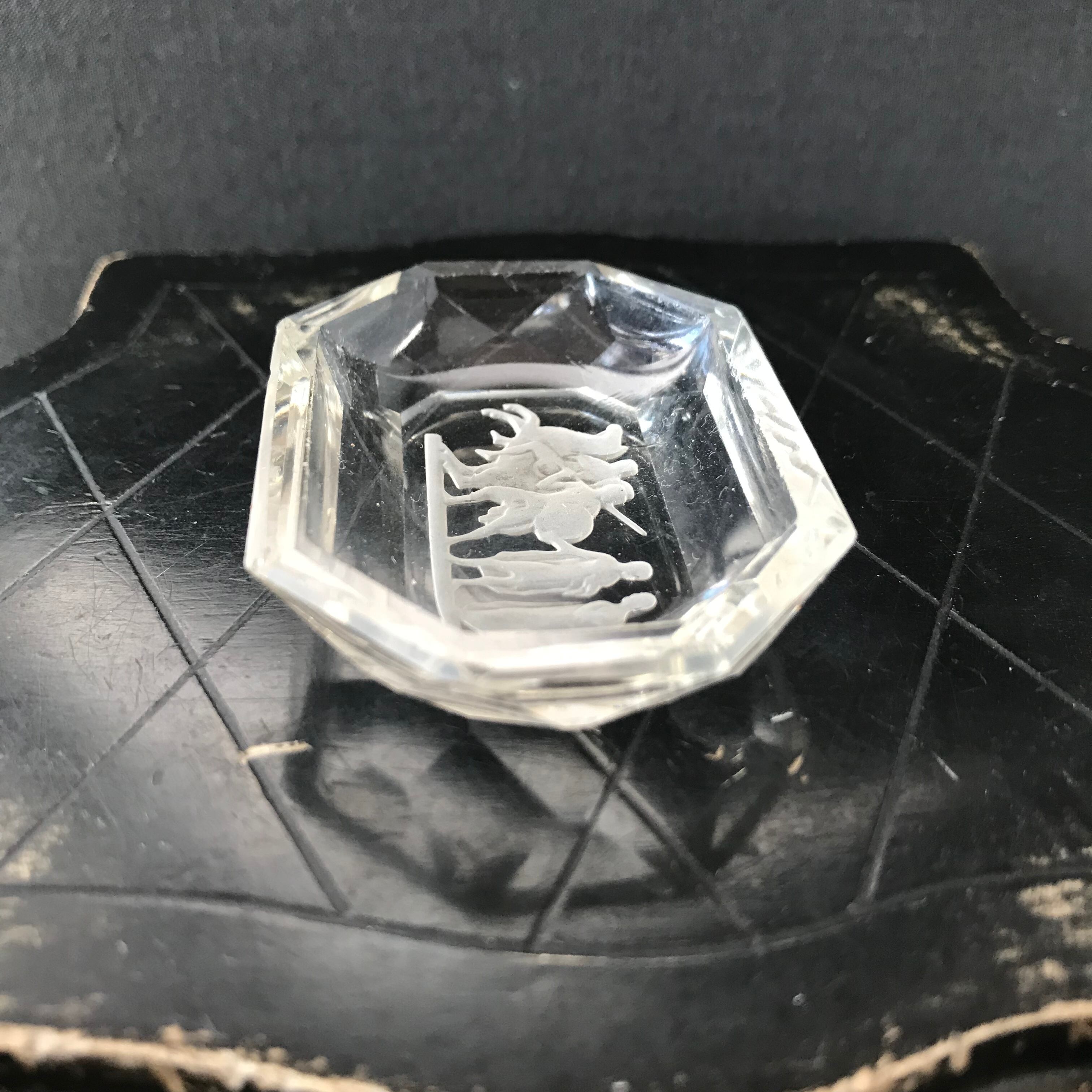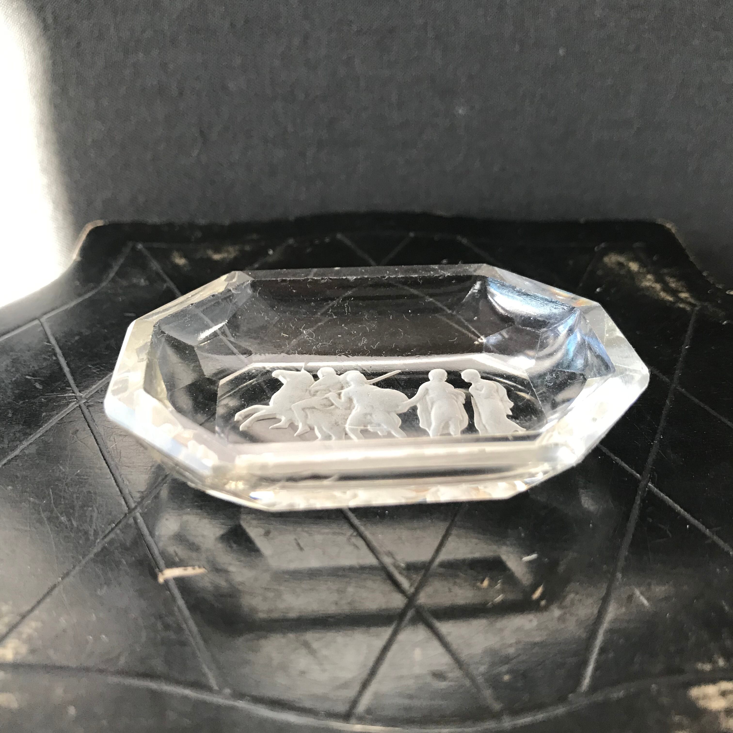 ・縦 4.5㎝ 横 6㎝ クリスタルガラスのアクセサリートレイです。馬と騎士のエッチングが綺麗なトレイです。フランスアンティーク。