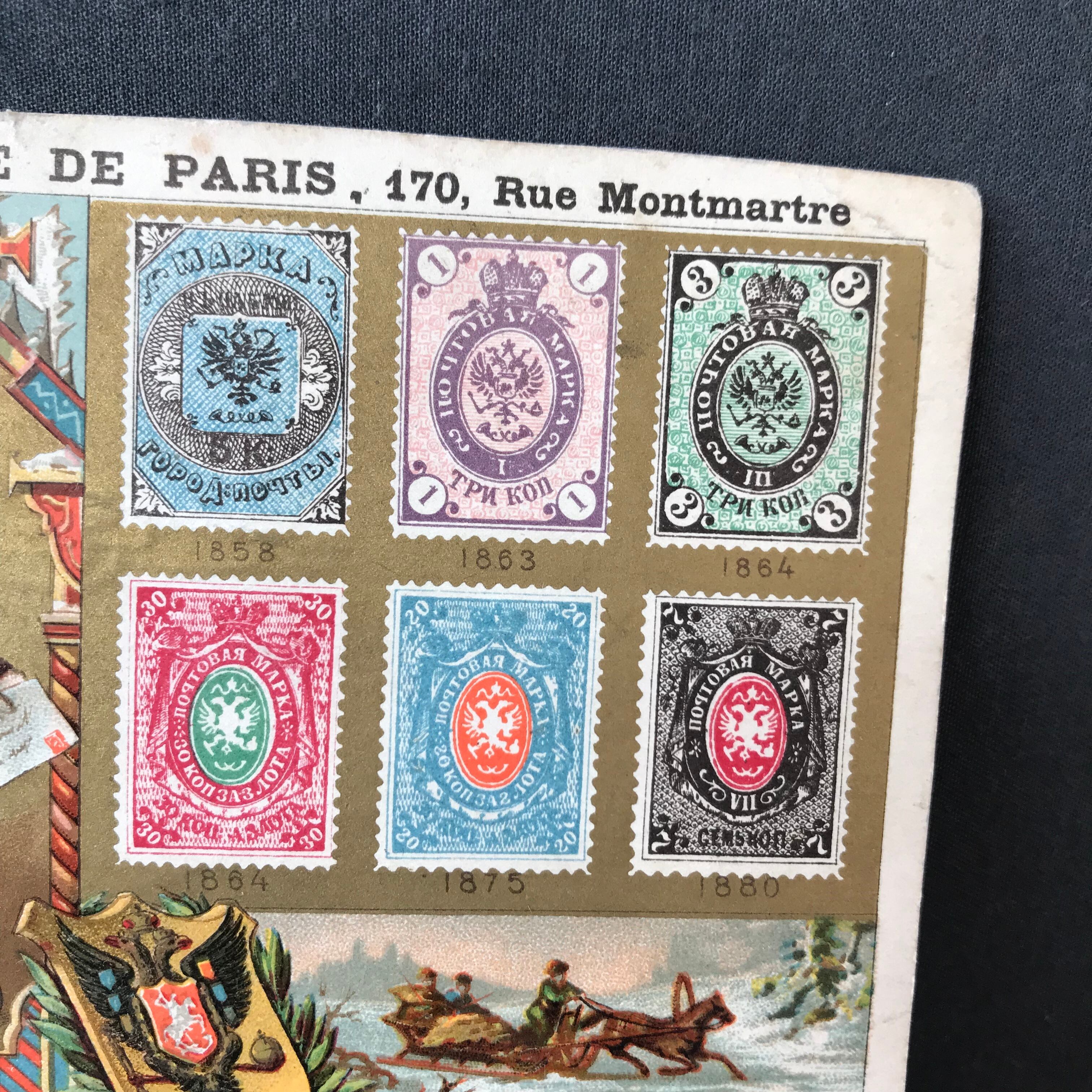 ・縦 7.5㎝ 横 11㎝ 郵便配達の少年が愛らしいカードです。切手のデザインも繊細です。フランスアンティーク。