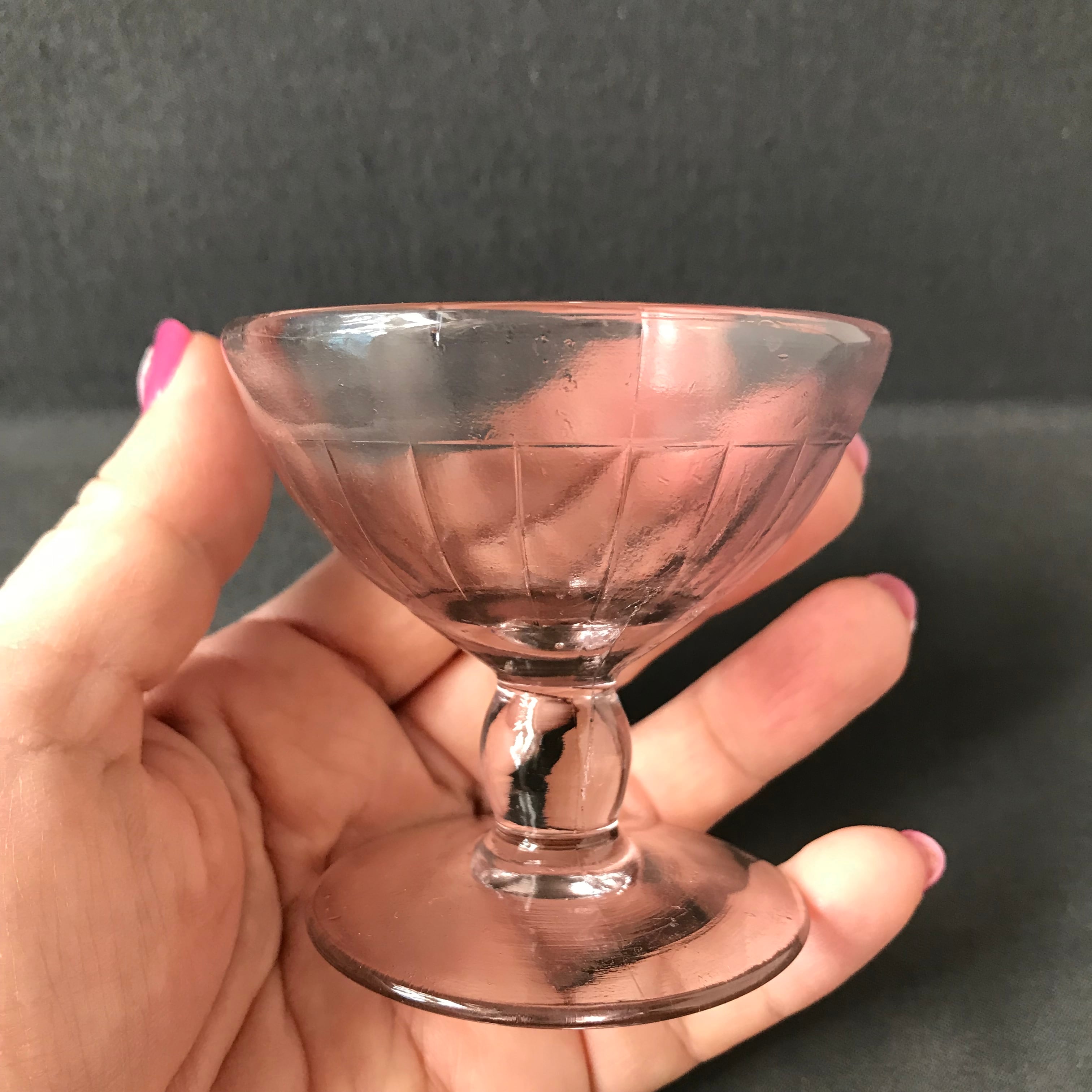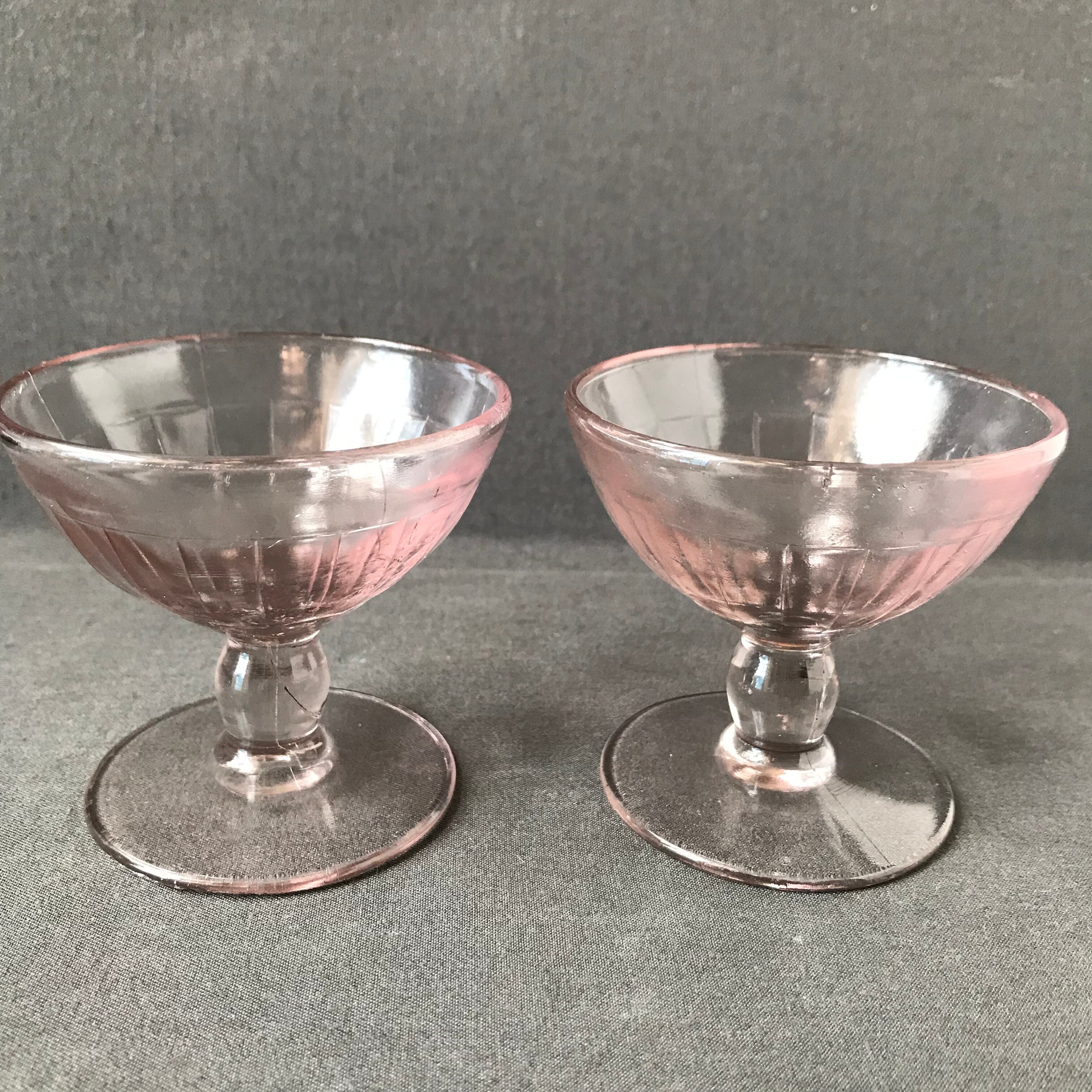 ・2個共通 直径 7㎝ 高さ 6.8㎝ 淡いパープルとピンクを混ぜたような色合いの綺麗なグラスです。ディスプレッシンガラスの製造時のクラックはございますが、ヒビカケは無くご使用には問題ありません。先のバラのラビエプレートともコーディネーションぴったりです。フランスビンテージ。2個セットのお値段です。