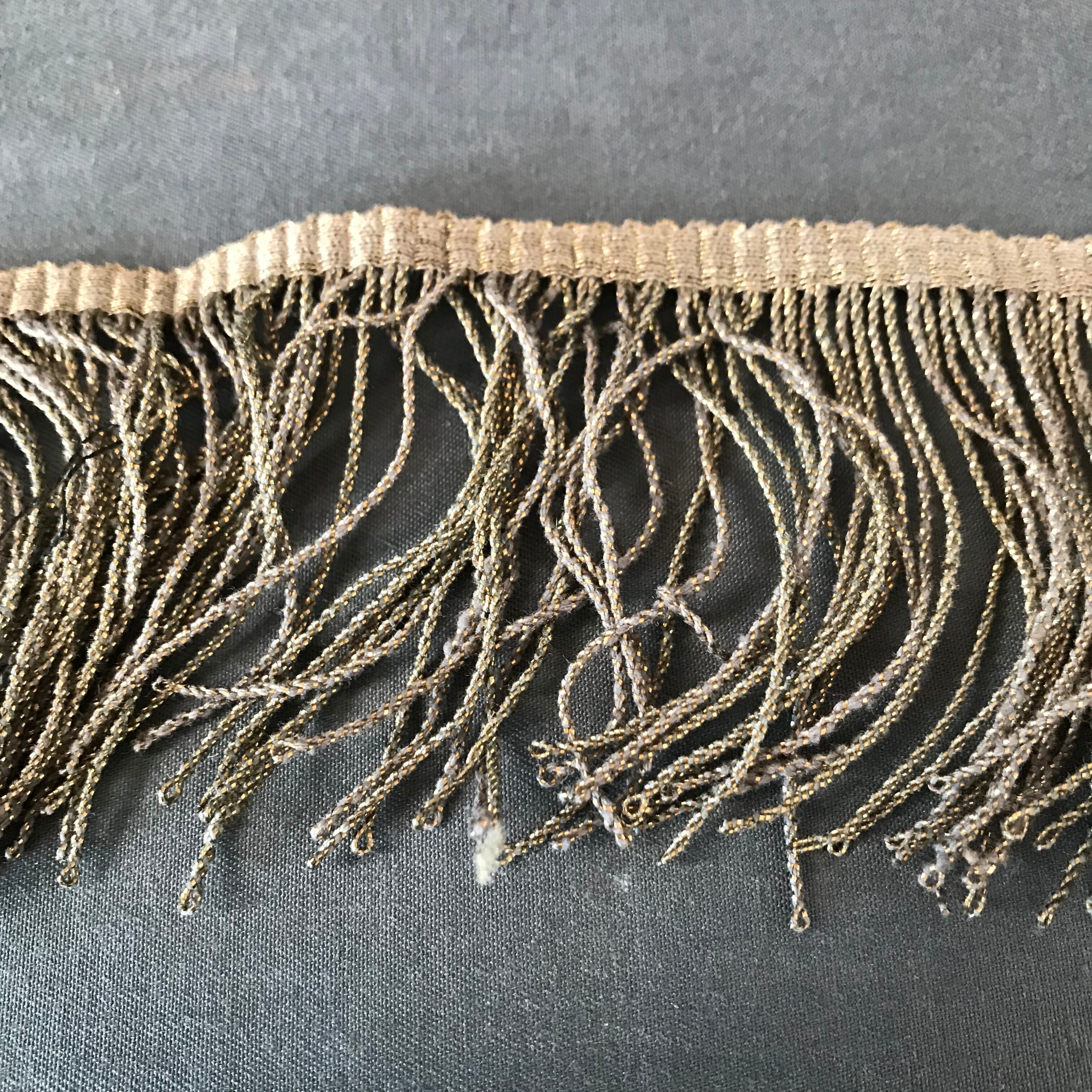 ・縦 6.5 ㎝ 横 34㎝ 珍しいイブシゴールドのフリンジタッセルです。ハンドメイドの材料にお使いください。フランスアンティーク。