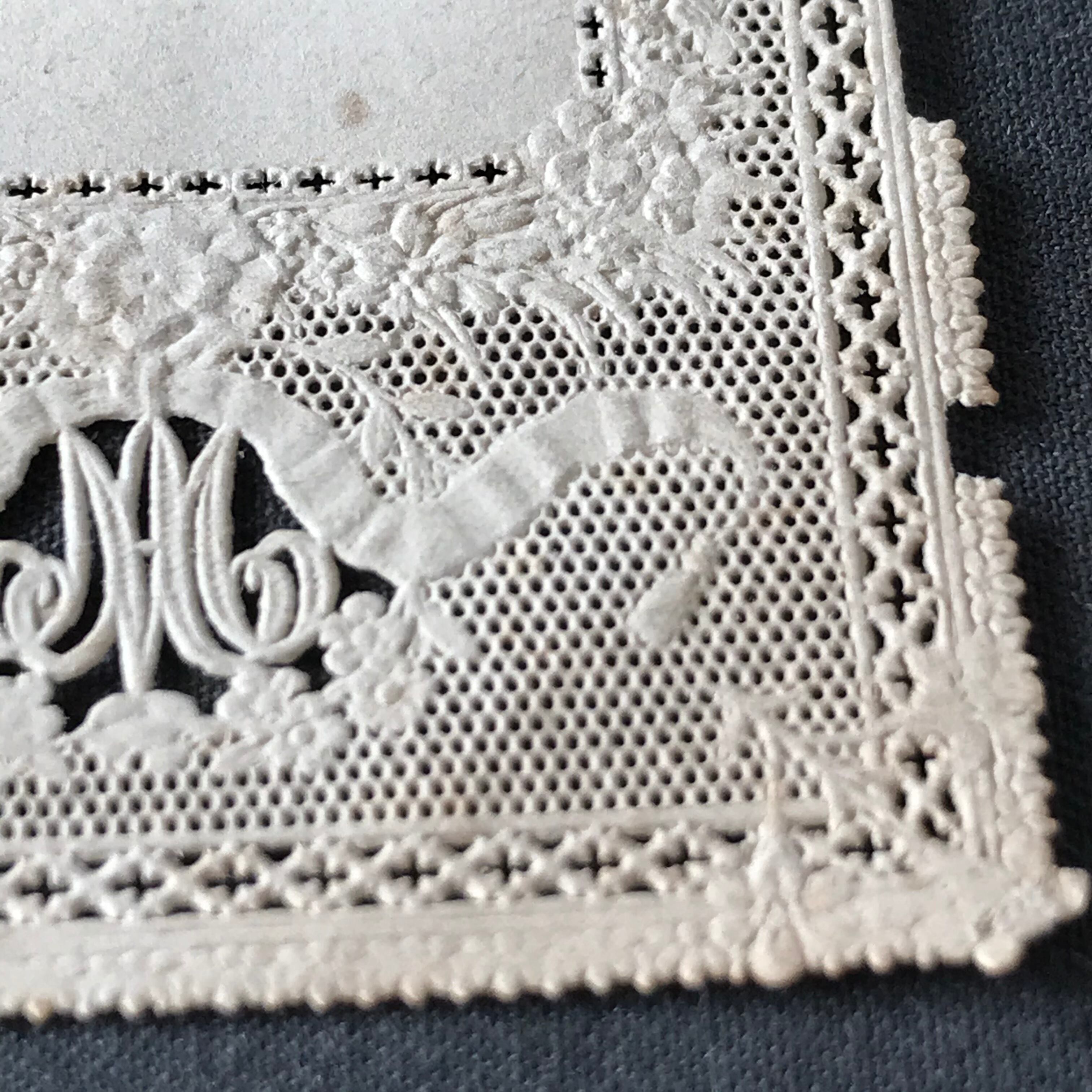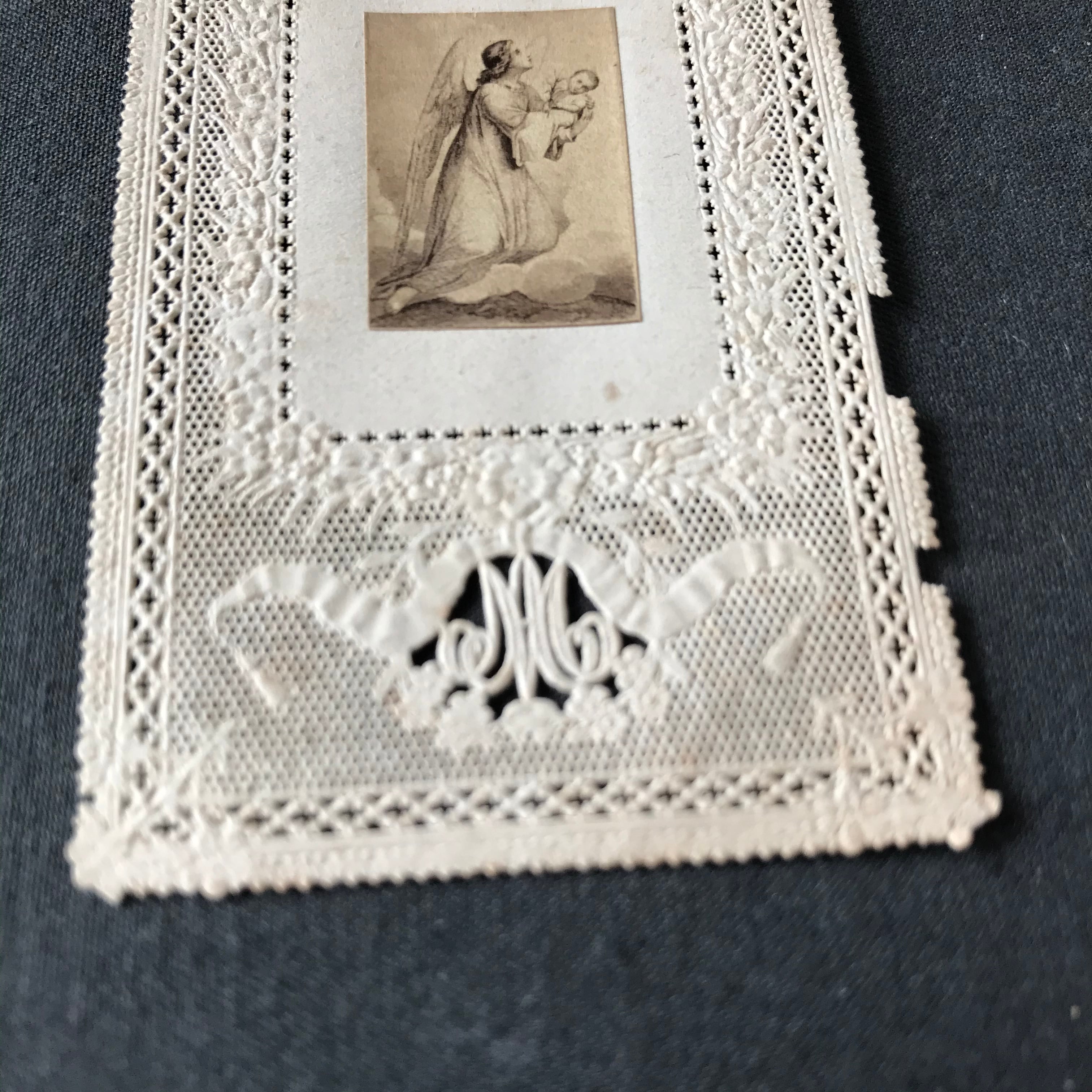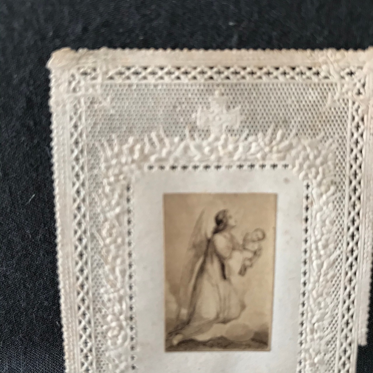 ・縦 8.3㎝ 横 5㎝ レースの細やかさが信仰の深さを表しているかのような、素晴らしいエンボス加工とレース細工のカニヴェです。透かしレースの部分はどうやって細工したのでしょうか、ぜひお手に取ってご覧くださいませ。フランスアンティーク。