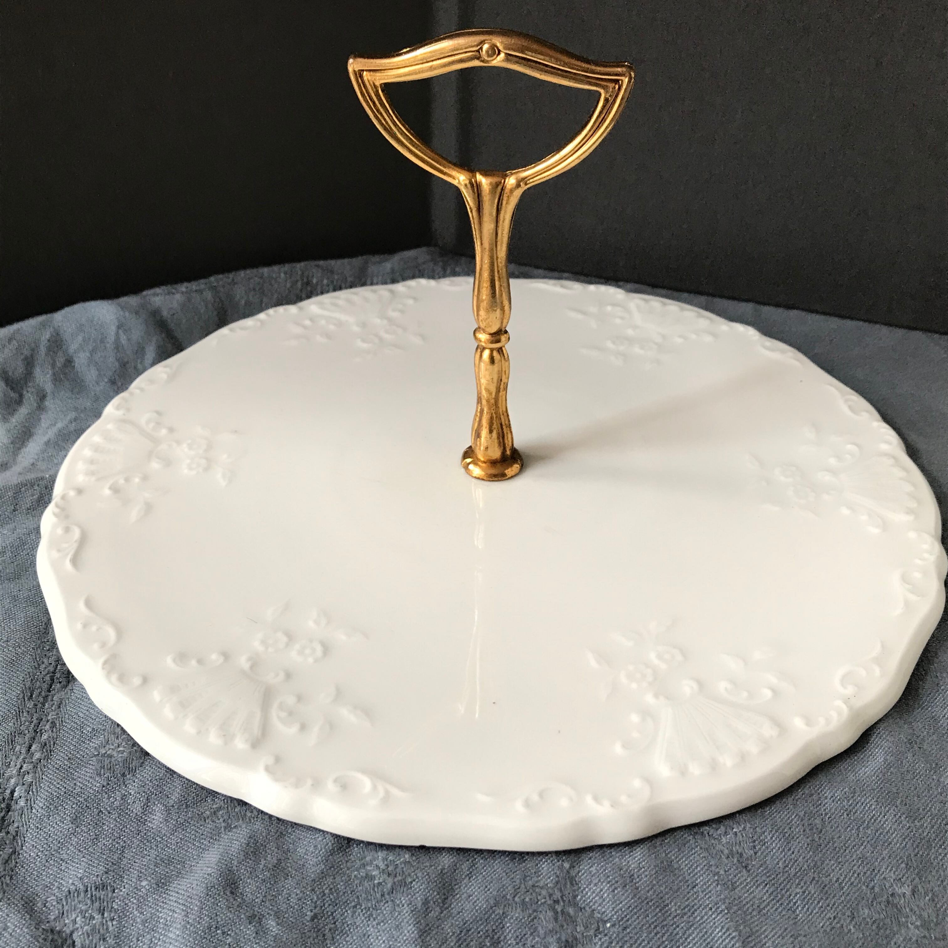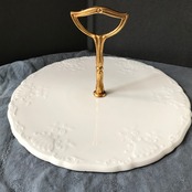 ・直径 27㎝ お花とパニエとロカイユのエンボスが綺麗なオードブルプレートです。ヒビカケ無く良い状態です。ケーキやオードプルを載せてお楽しみくださいませ。フランスビンテージ。