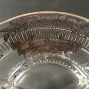 ・直径 20㎝ シルバーオーバレイのバラとデイジーのコンポティエです。ステムのボブネイルも綺麗です。2カ所軽微なシルバーの剥がれがありますがヒビカケ無く良い状態です。アメリカビンテージ。