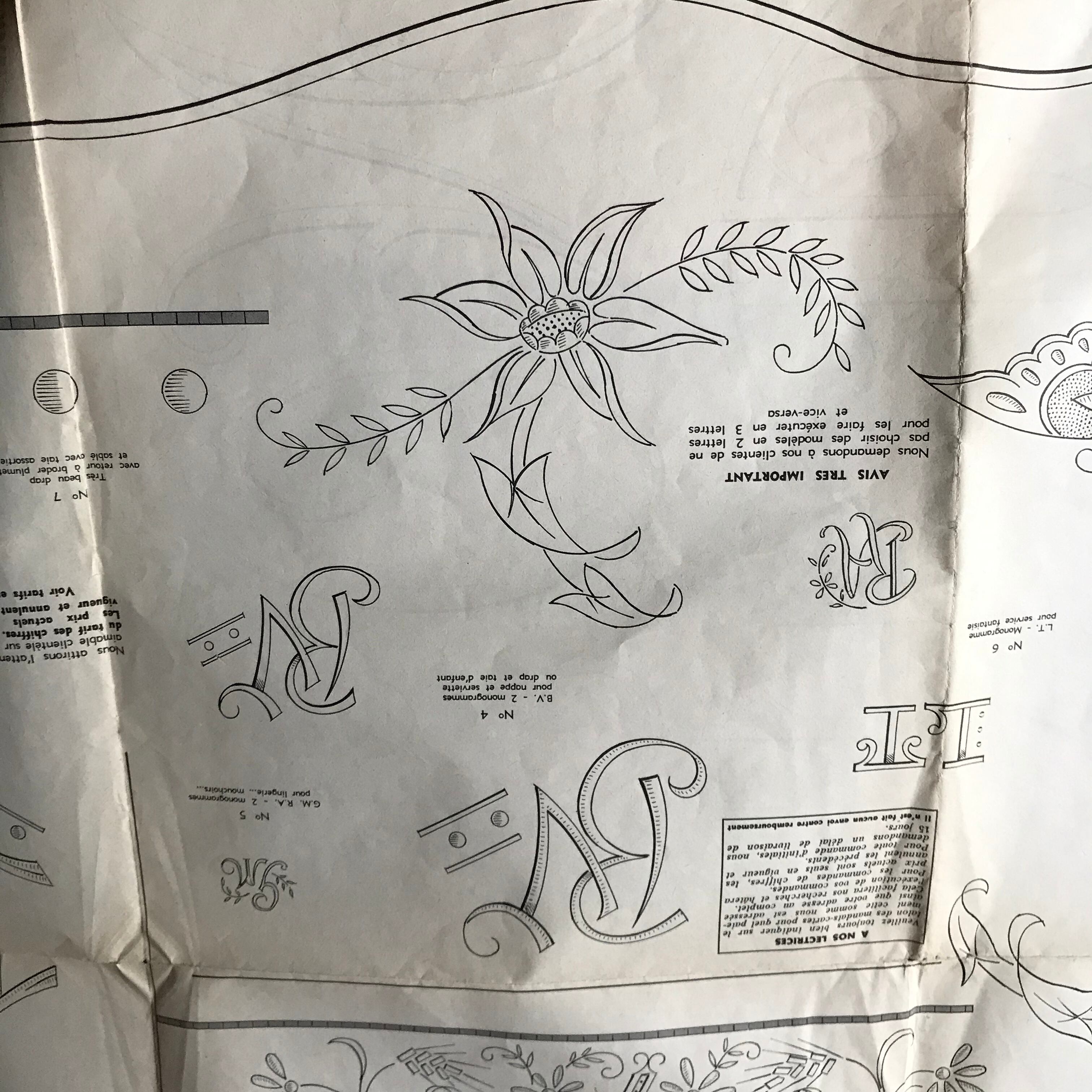 ・縦 47㎝ 横 32.5㎝ 1963年の刺繍新聞です。マーガレットが可愛らしいです。中はモノグラムの刺繍図案や蝶々、クロスの図案が入っています。表紙に焼けがあります。中は良い状態です。広げると大きな1枚になります。