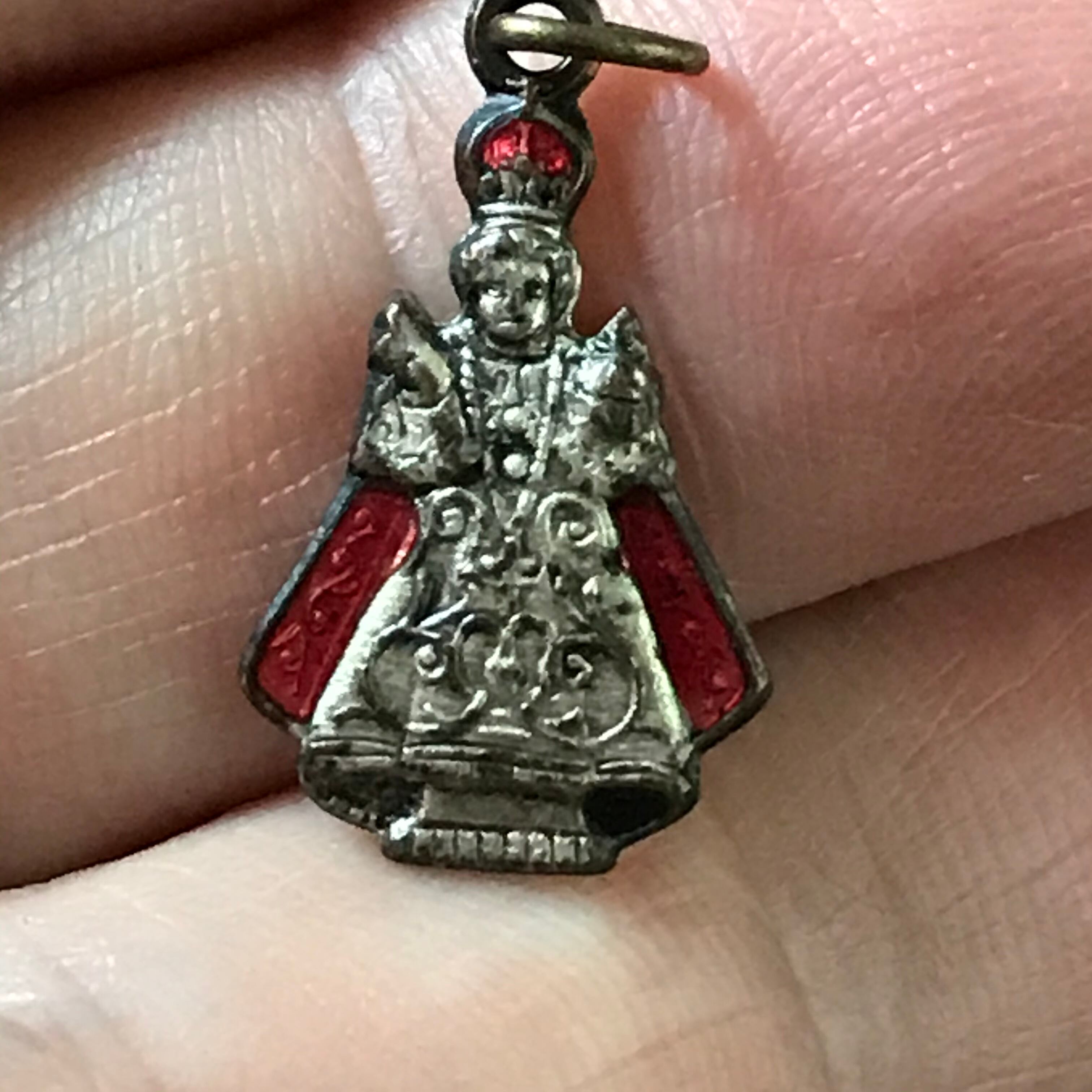 ・縦 2㎝ 横 1.3㎝ 王冠とローブが赤エナメル、エンボスも綺麗な珍しいキングのメダイユです。フランスアンティーク。