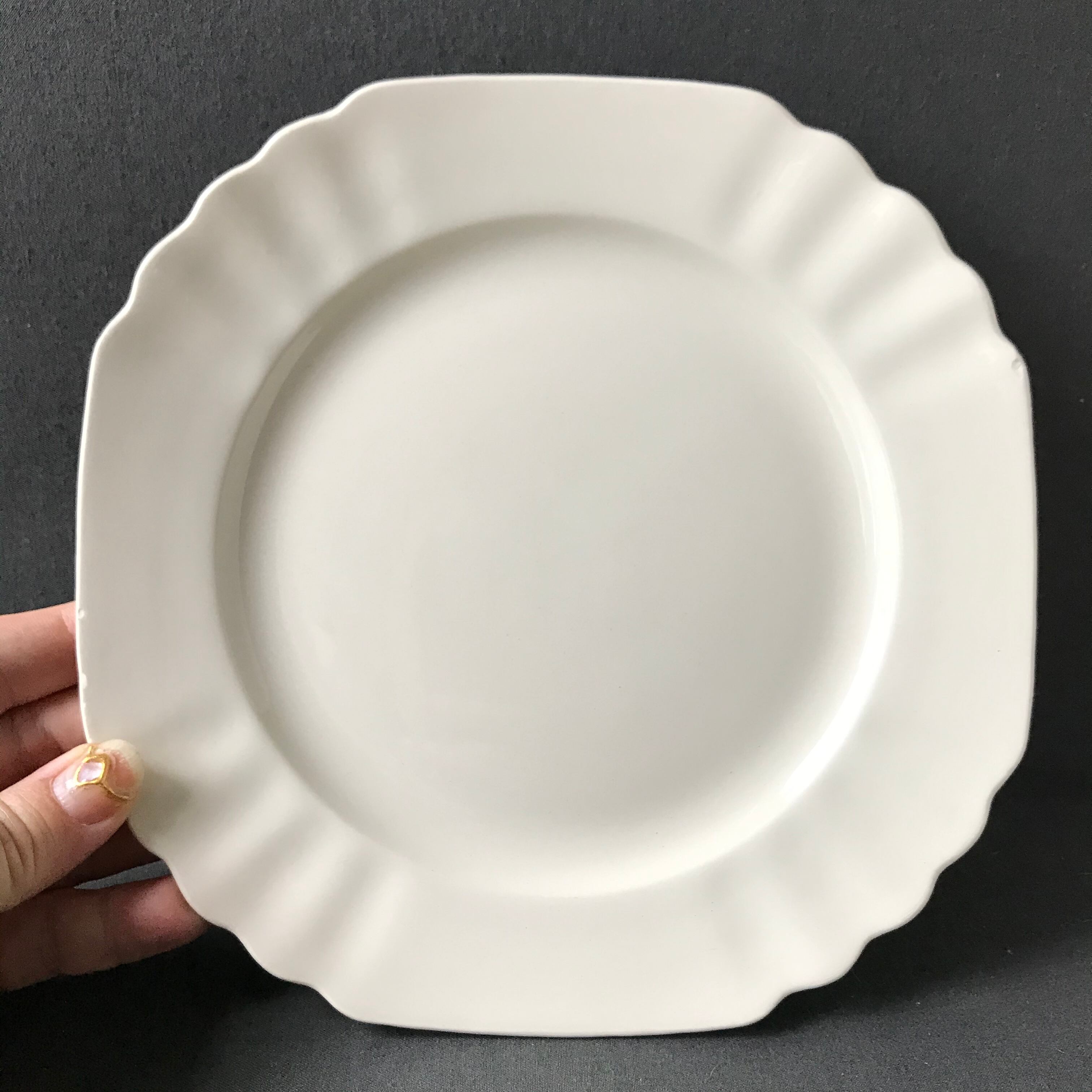 ・縦 21㎝ 横 21㎝ BOCHのクリーム色のプレートです。ぽってりとした風合いです。写真に映らない程の1㎜程のカケが2カ所、3㎜程のカケが1ヶ所ございます。フランスアンティーク。