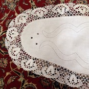 ・縦33㎝ 横67㎝ 大きめのオーバルのレースです。周りの朝顔のようなレースはバンドです。フランスアンティーク