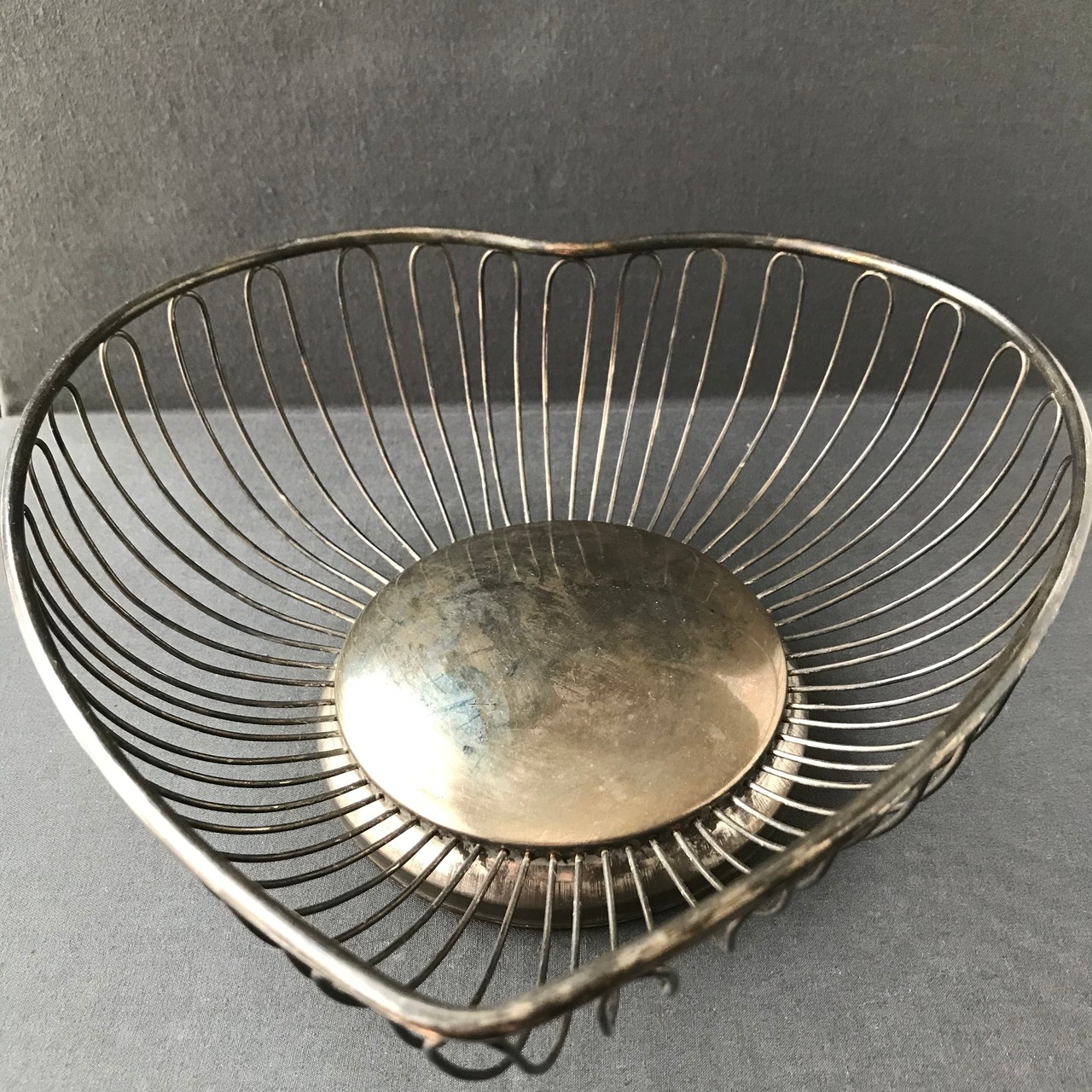 ・縦 24㎝ 横 23.5㎝ ハート型が愛らしいピアッシングパニエです。フルーツや焼き菓子を入れてお楽しみくださいませ。フランスアンティーク。
