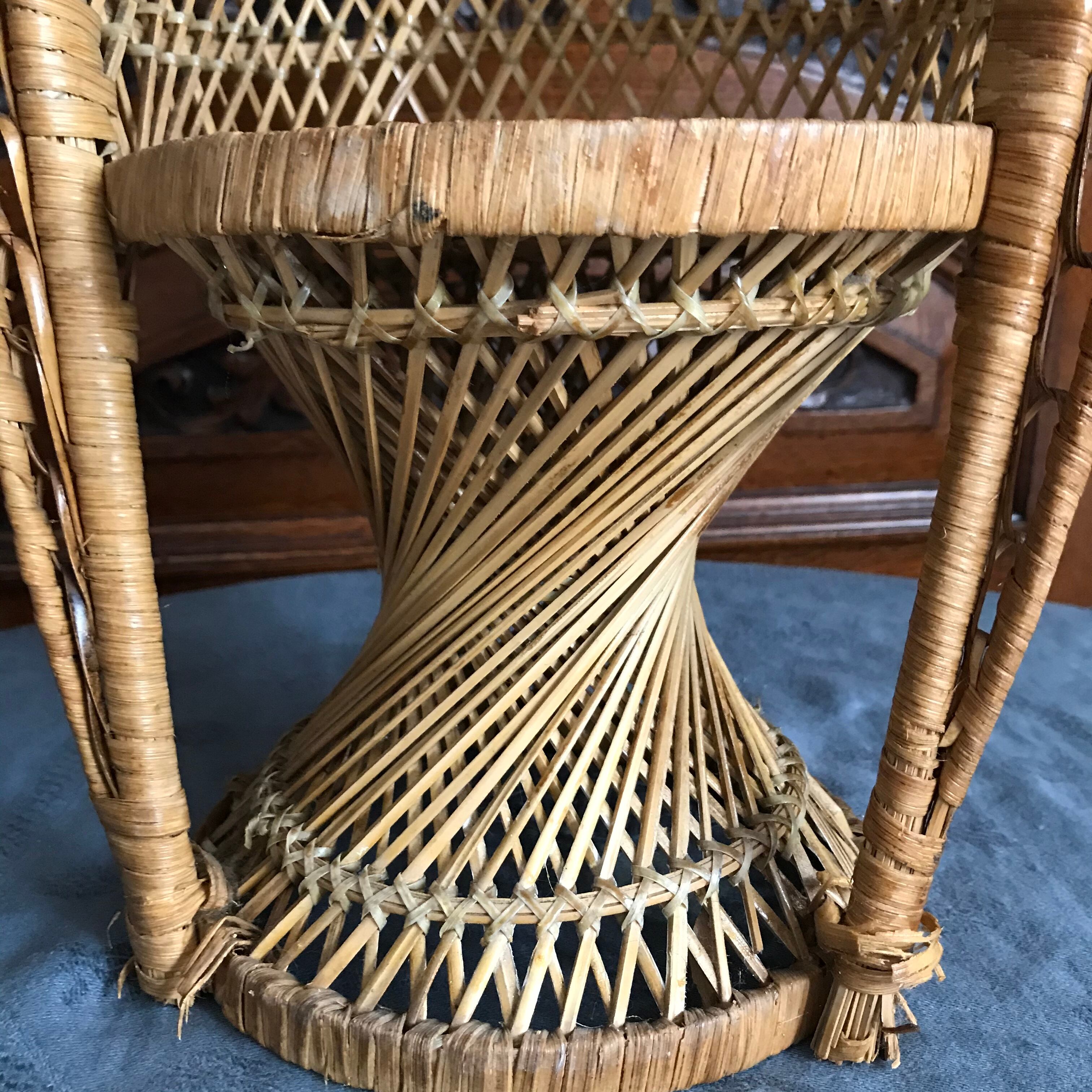 ラタンのドールチェアです。ドールちゃんやベアちゃんのチェアにしてあげて下さいませ。若干ののほつれや切れている所があります。大きく穴などは開いていません。経年の割に良い状態です。フランスアンティーク。