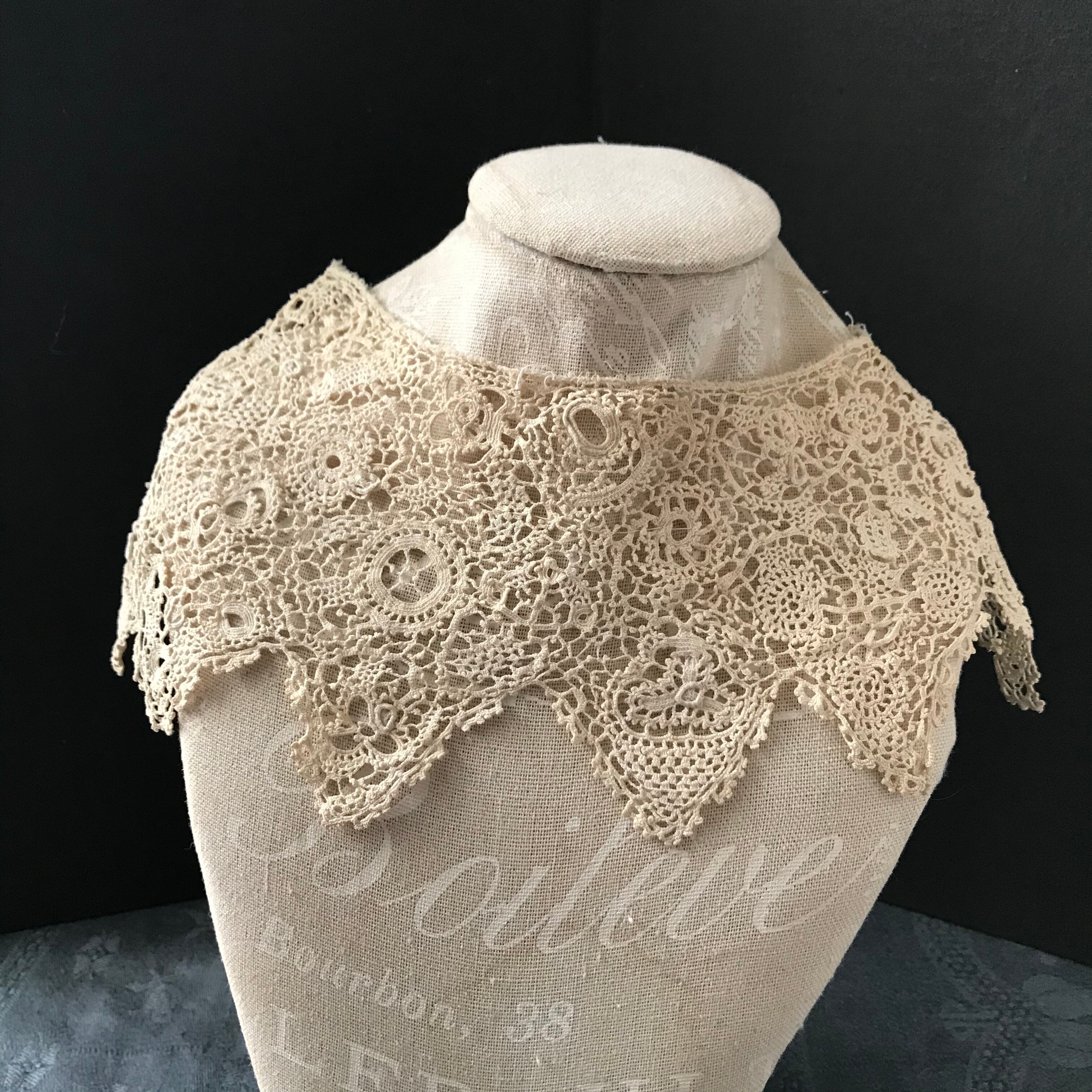・縦 9.5㎝ 横 42㎝ 素晴らしいハンドのアプリカシオンの筒レースです。繊細なレース編みは素晴らしいです。筒状になっておりますので、ベアちゃんやドールちゃんに襟のようにかけてあげたり、ランプシェードのように使って頂いても綺麗です。フランスアンティーク。