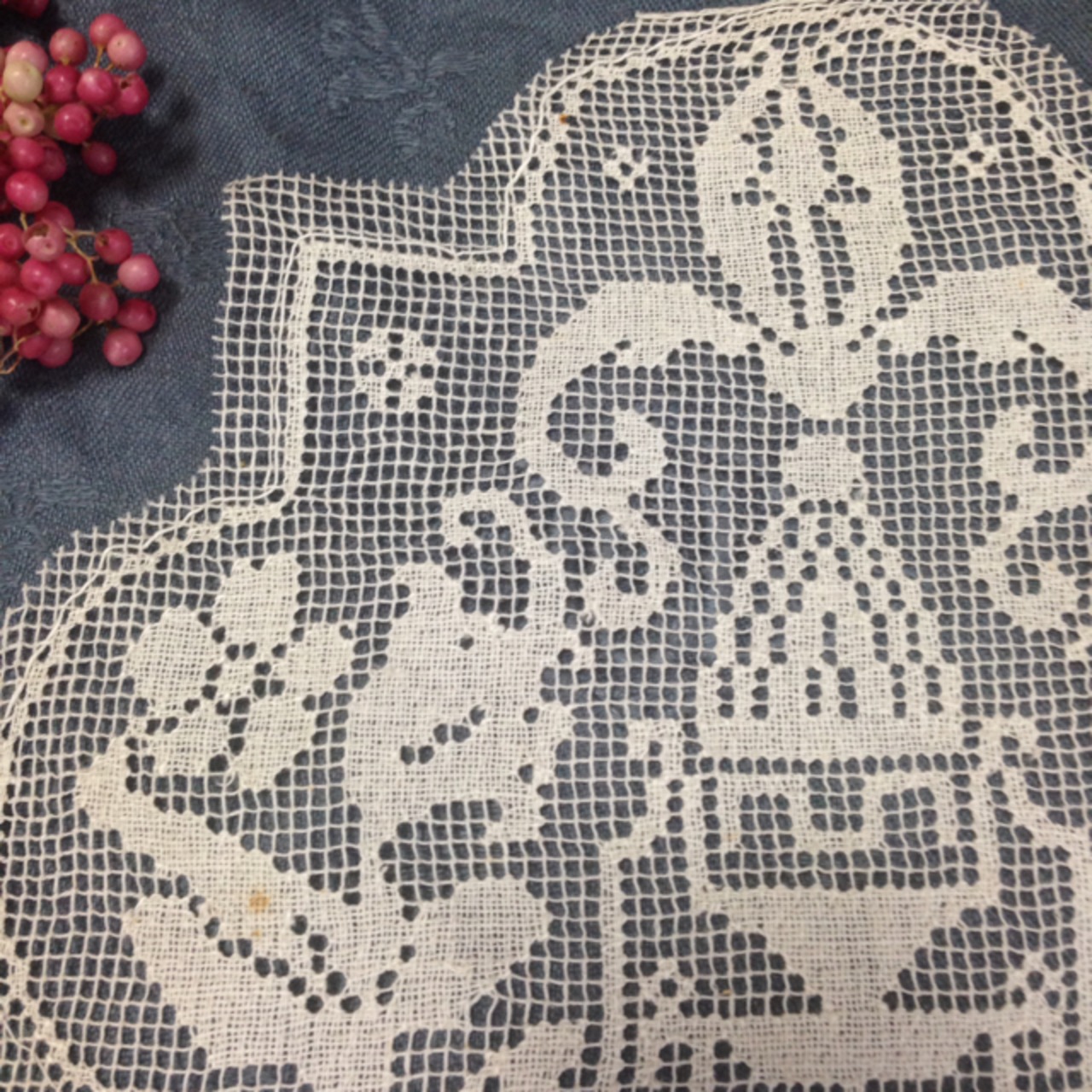 ・縦21.5㎝ 横22.5㎝ お城と花のモチーフレースです。額に入れて飾っても綺麗です。フランスアンティーク。送料140円。