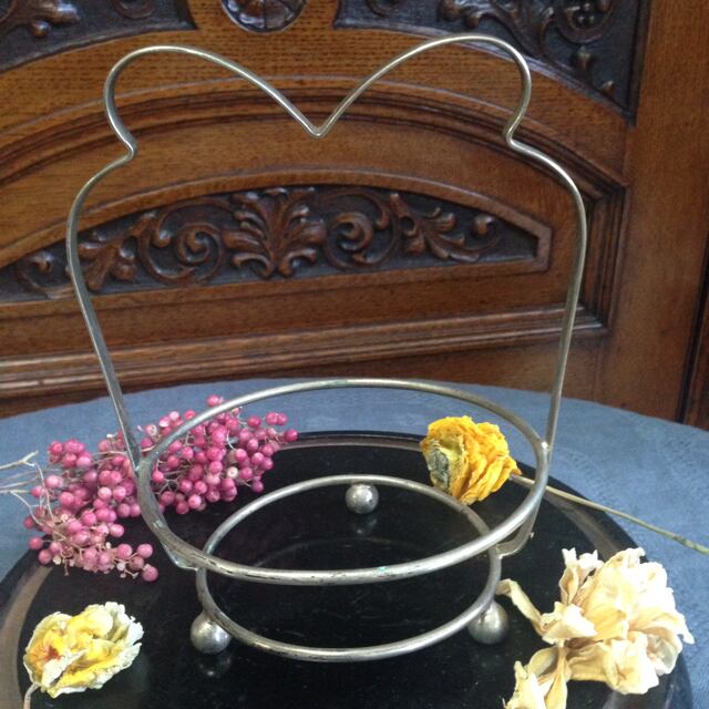 ・ガラス直径10㎝ 高さ2.5㎝ 全長 17.5㎝ 蓋直径10.5㎝ 優雅な枠はシルバープレート 蓋にはお花がついていてガラスのお皿がついた可愛らしいジャムディッシュです。フランスアンティーク。商品合計10000円以上で宅配送料無料です。