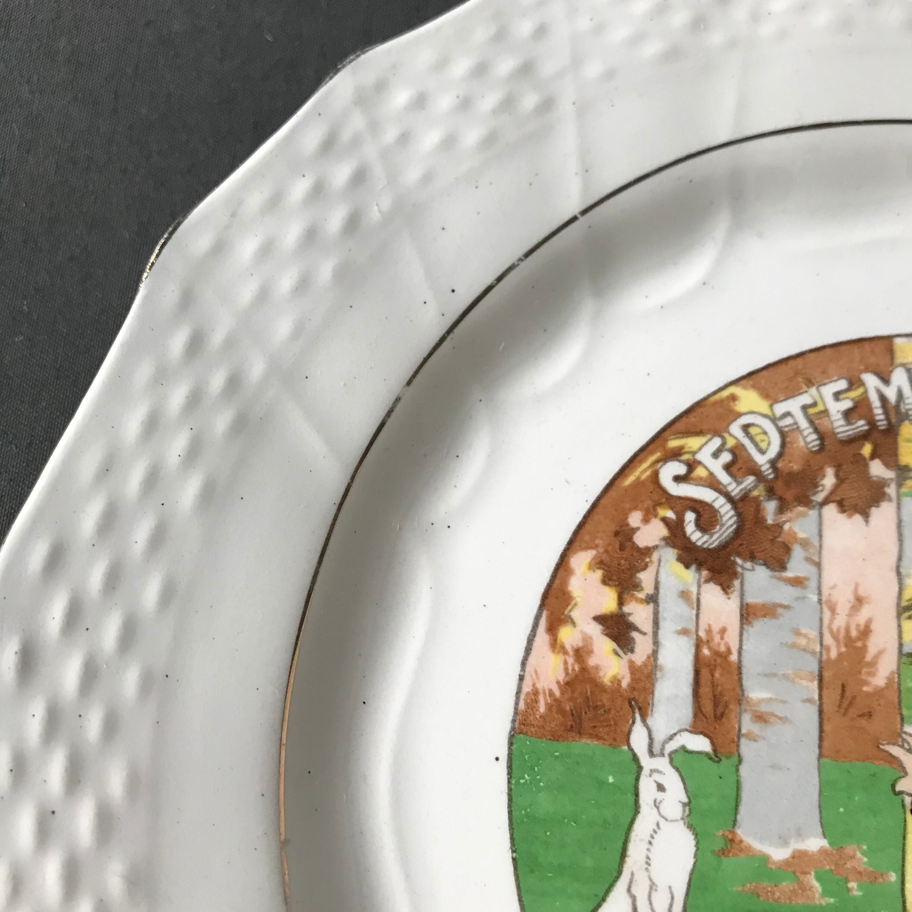 ・直径 20㎝ ORCHIES 狩人の少年とウサギが可愛らしいマンスリープレートです。SEPTEMBRE 9月です。ヒビカケ無く良い状態です。フランスアンティーク。